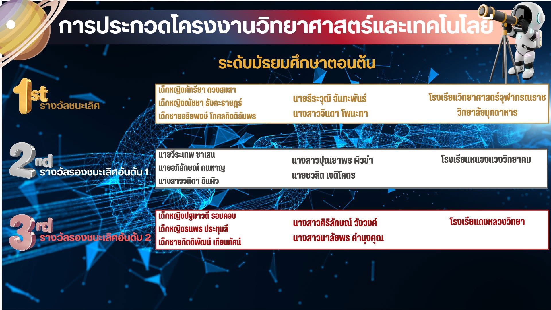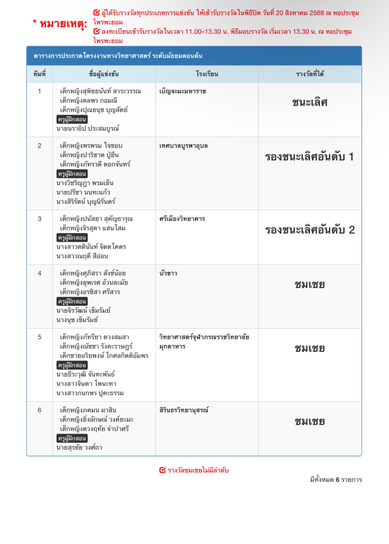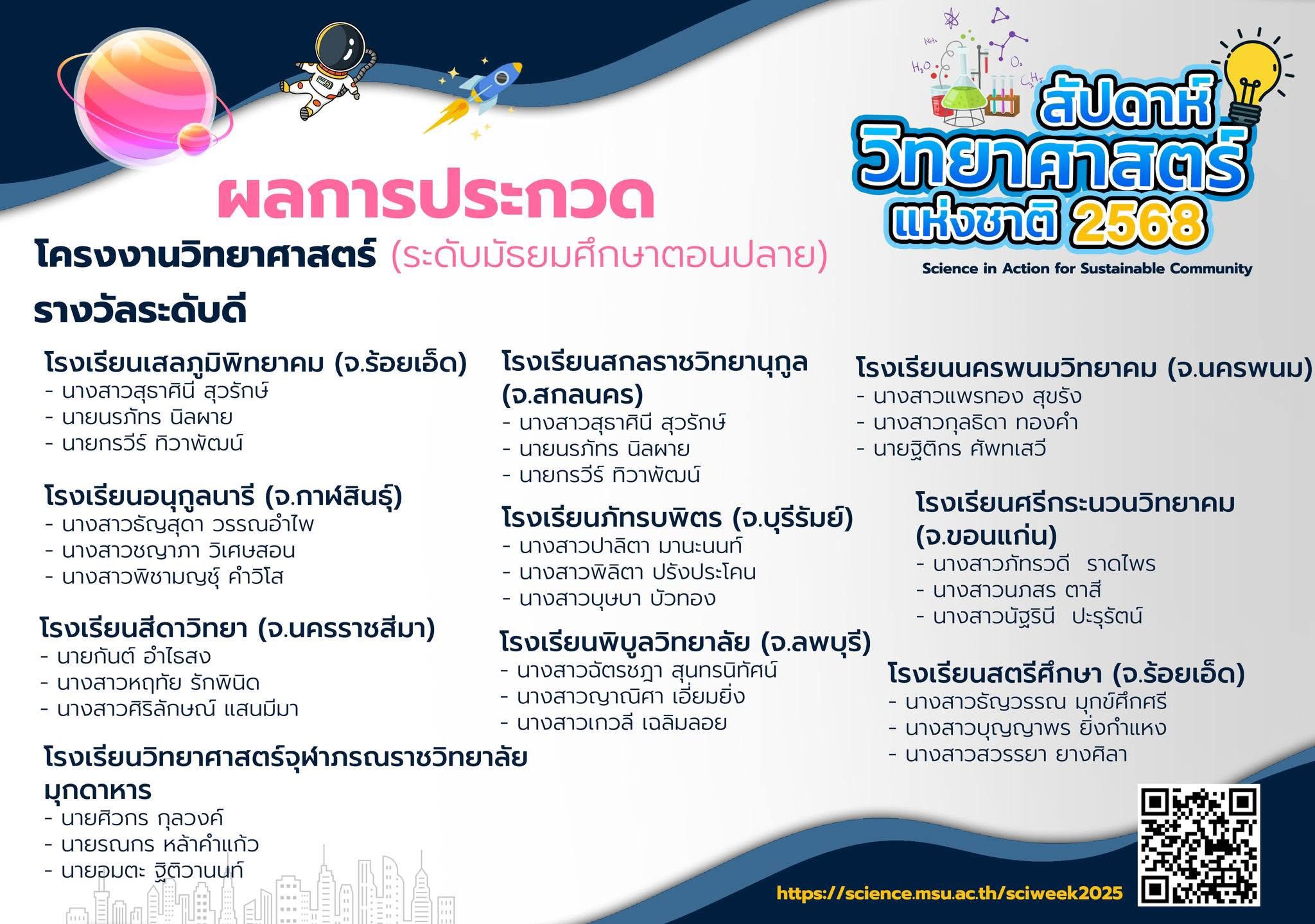แสดงความยินดีกับนักเรียนที่ได้รับรางวัลการแข่งขันสัปดาห์วันวิทยาศาสตร์ ปีการศึกษา 2568 ซึ่งได้รับรางวัลดังต่อไปนี้