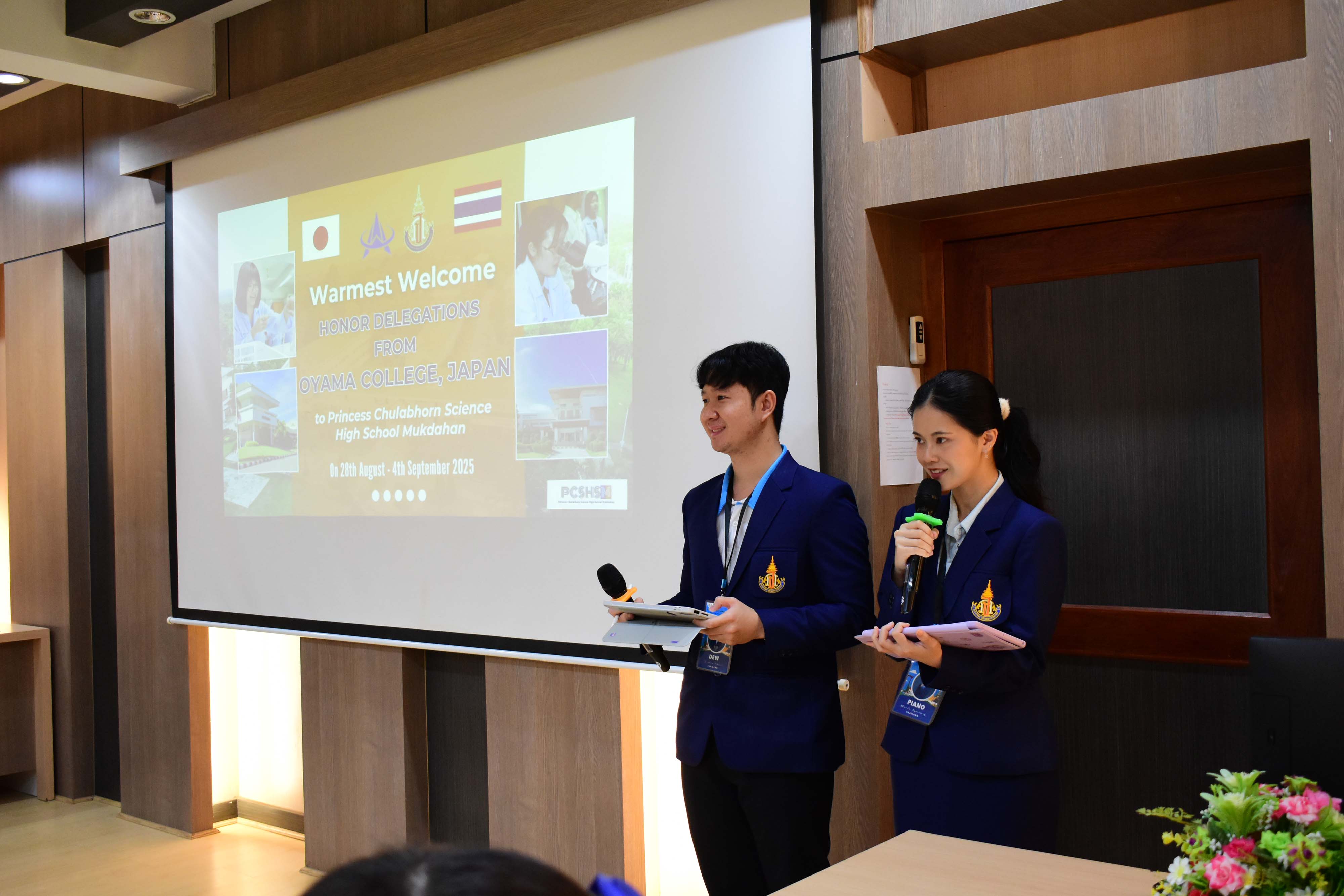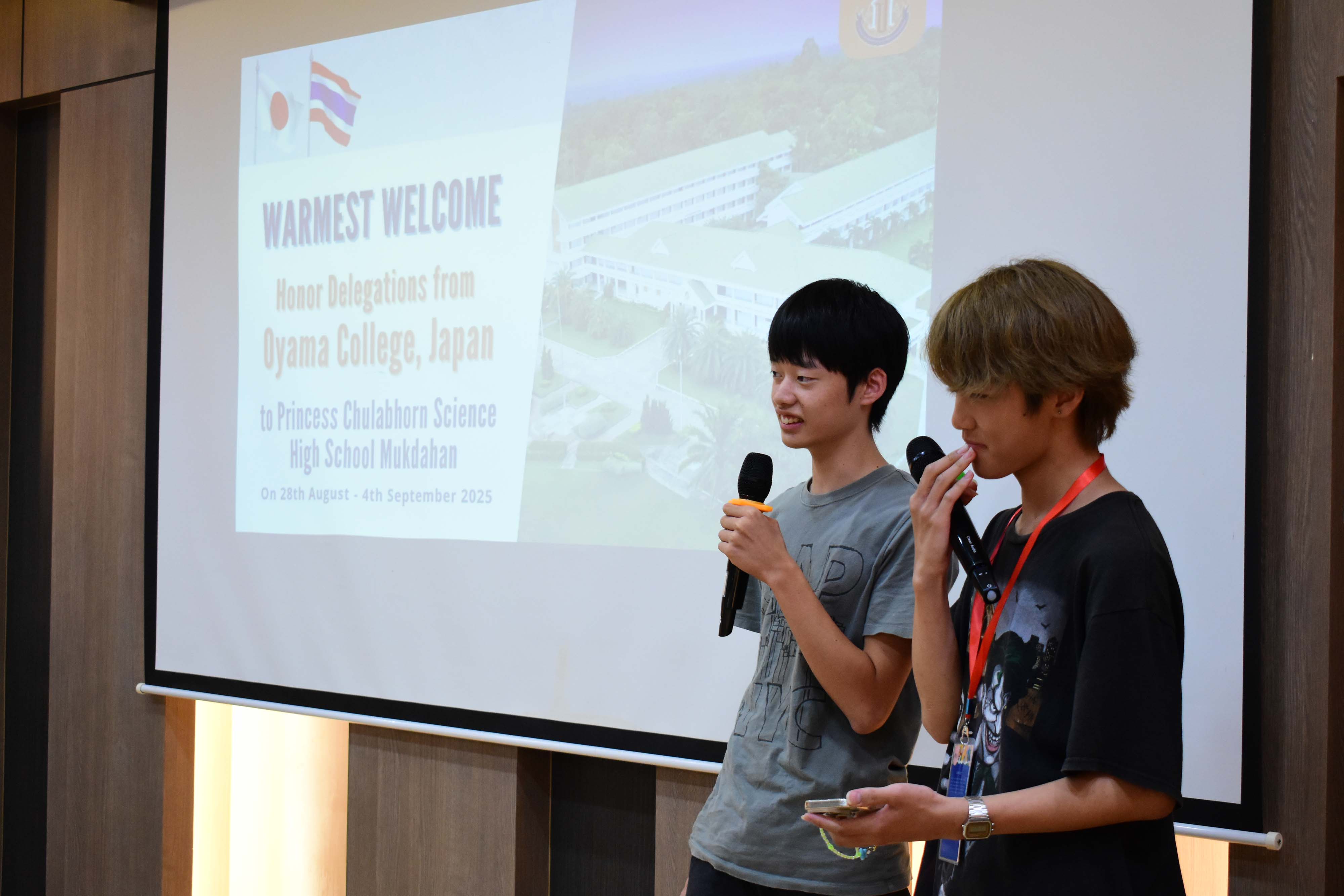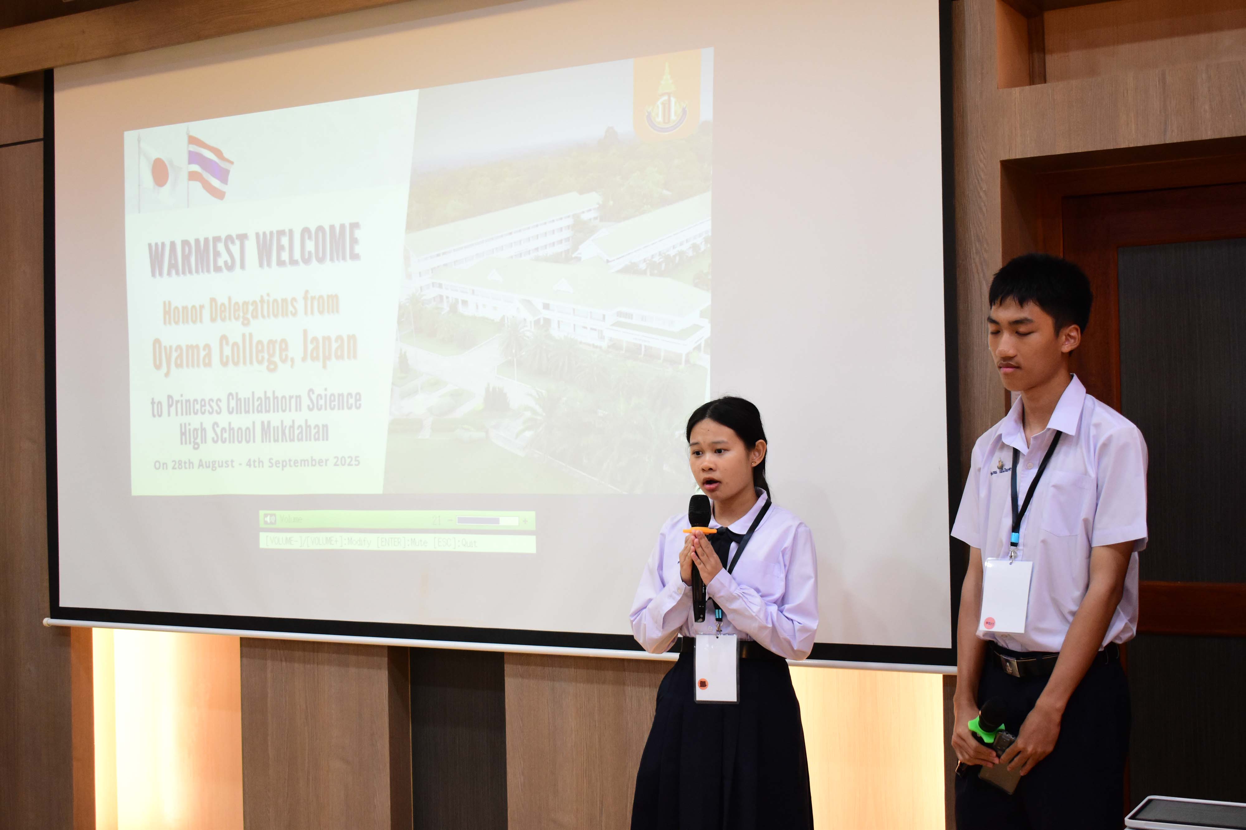 โรงเรียนวิทยาศาสตร์จุฬาภรณราชวิทยาลัย มุกดาหาร จัดกิจกรรมแลกเปลี่ยนทางวิชาการกับสถาบัน Oyama College (KOSEN) ประเทศญี่ปุ่น ประจำปีการศึกษา 2568 โดยนายศักดิ์ รุ่งแสง ผู้อำนวยการโรงเรียนวิทยาศาสตร์จุฬาภรณราชวิทยาลัย มุกดาหาร นำคณะผู้บริหาร ครู และนักเรียน ร่วมต้อนรับคณะผู้บริหารและนักเรียนจากสถาบัน Oyama College ประเทศญี่ปุ่น ในวันศุกร์ที่ 29 สิงหาคม พ.ศ. 2568 เวลา 08.15 น. ณ หอประชุมโรงเรียน ซึ่งกิจกรรมในครั้งนี้จัดขึ้นในระหว่างวันที่ 28 สิงหาคม - 4 กันยายน พ.ศ. 2568 เพื่อให้นักเรียนมีทักษะการใช้ภาษาต่างประเทศและเทคโนโลยีสารสนเทศได้อย่างมีประสิทธิภาพในระดับเดียวกันกับนักเรียนของโรงเรียนวิทยาศาสตร์ชั้นนำของนานาชาติ