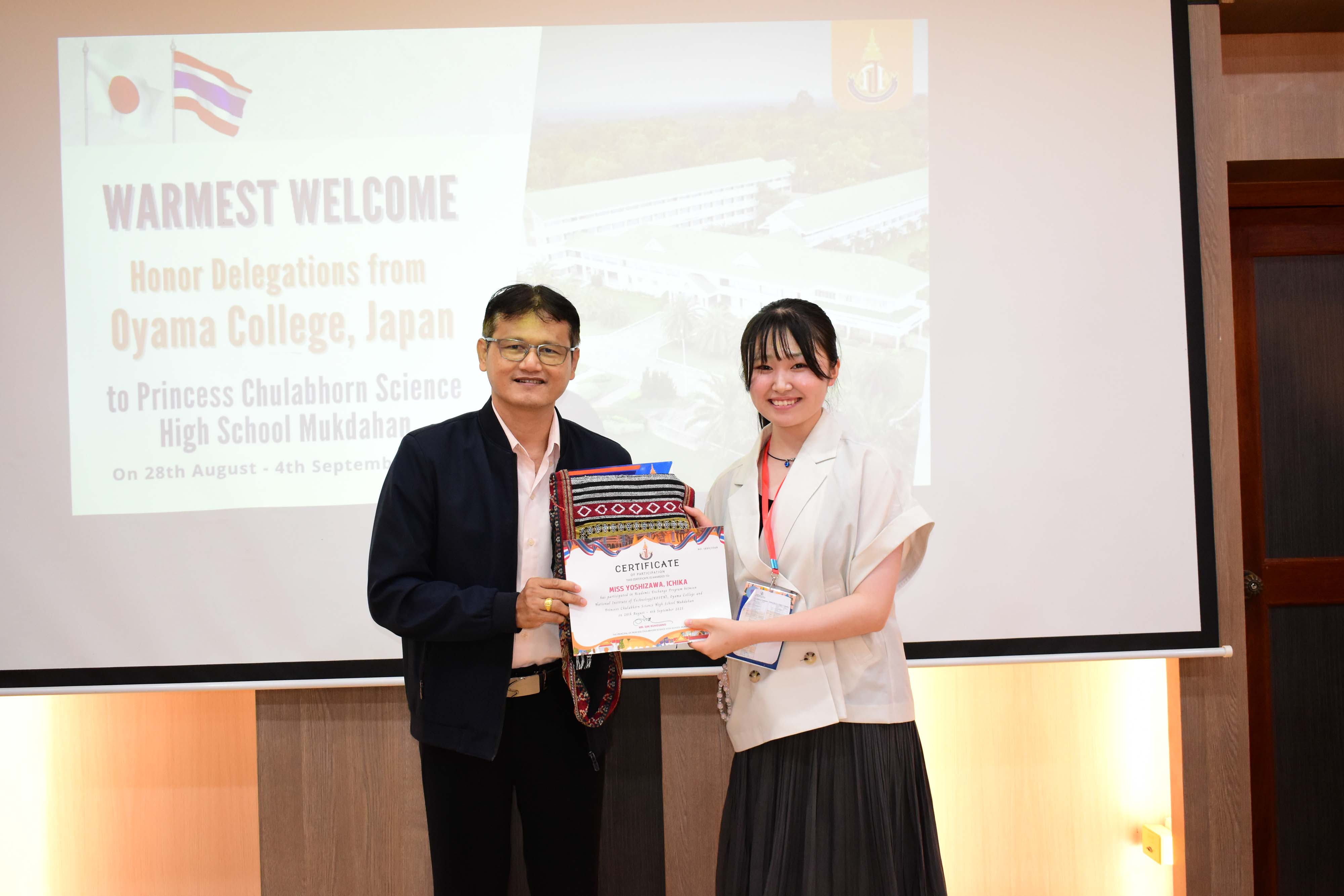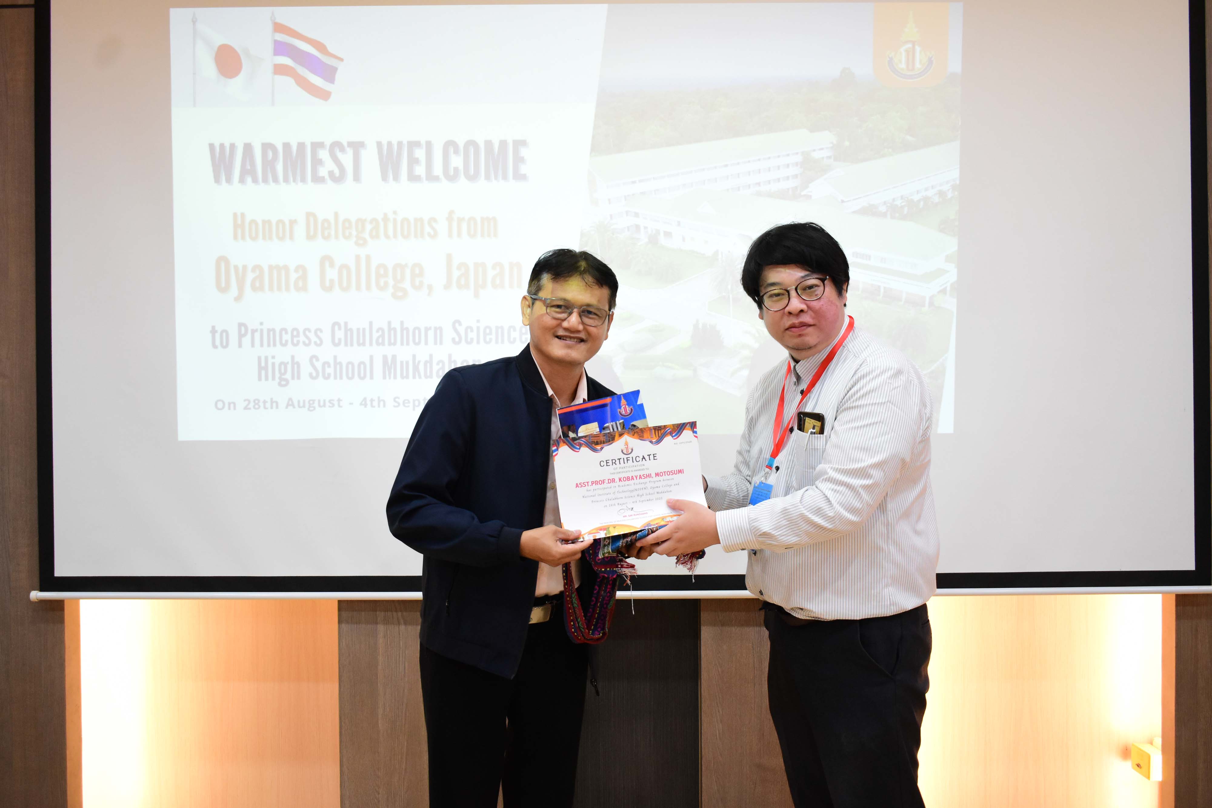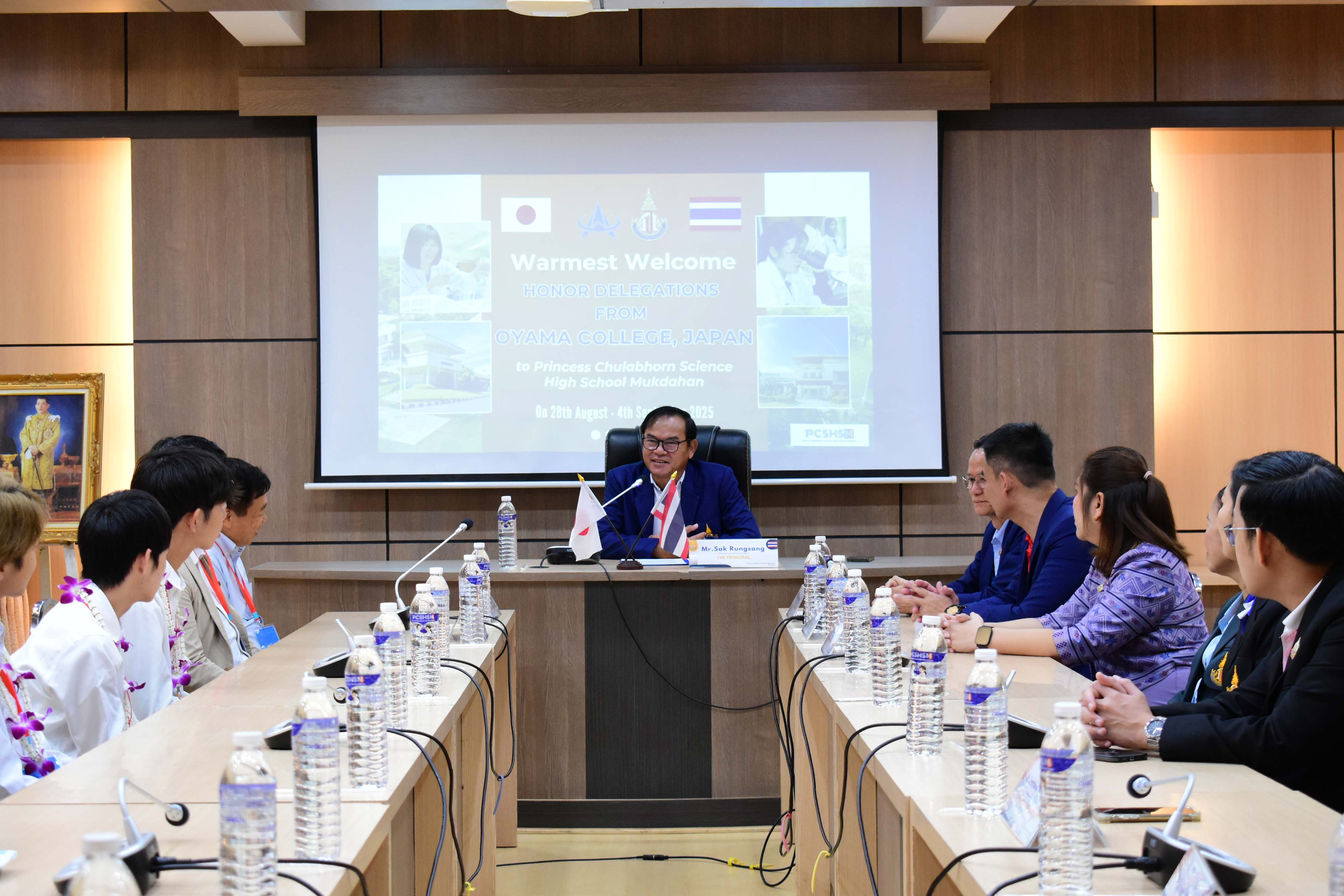 โรงเรียนวิทยาศาสตร์จุฬาภรณราชวิทยาลัย มุกดาหาร จัดกิจกรรมแลกเปลี่ยนทางวิชาการกับสถาบัน Oyama College (KOSEN) ประเทศญี่ปุ่น ประจำปีการศึกษา 2568 โดยนายศักดิ์ รุ่งแสง ผู้อำนวยการโรงเรียนวิทยาศาสตร์จุฬาภรณราชวิทยาลัย มุกดาหาร นำคณะผู้บริหาร ครู และนักเรียน ร่วมต้อนรับคณะผู้บริหารและนักเรียนจากสถาบัน Oyama College ประเทศญี่ปุ่น ในวันศุกร์ที่ 29 สิงหาคม พ.ศ. 2568 เวลา 08.15 น. ณ หอประชุมโรงเรียน ซึ่งกิจกรรมในครั้งนี้จัดขึ้นในระหว่างวันที่ 28 สิงหาคม - 4 กันยายน พ.ศ. 2568 เพื่อให้นักเรียนมีทักษะการใช้ภาษาต่างประเทศและเทคโนโลยีสารสนเทศได้อย่างมีประสิทธิภาพในระดับเดียวกันกับนักเรียนของโรงเรียนวิทยาศาสตร์ชั้นนำของนานาชาติ