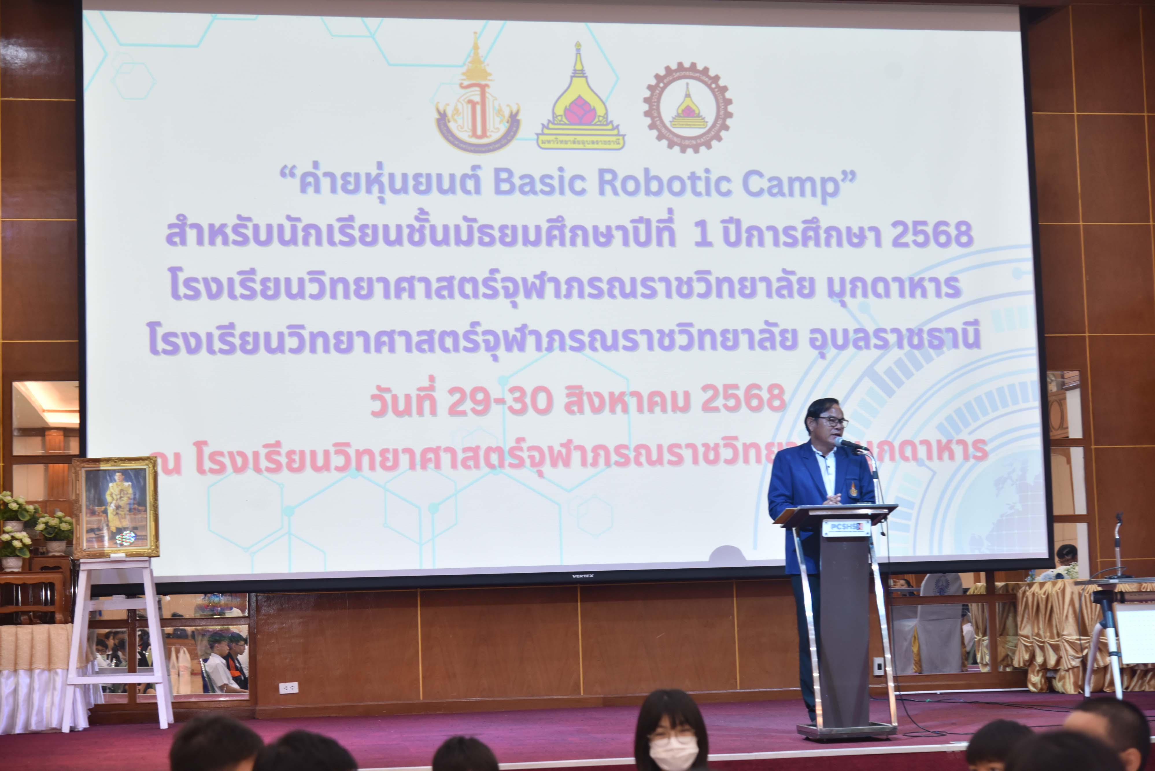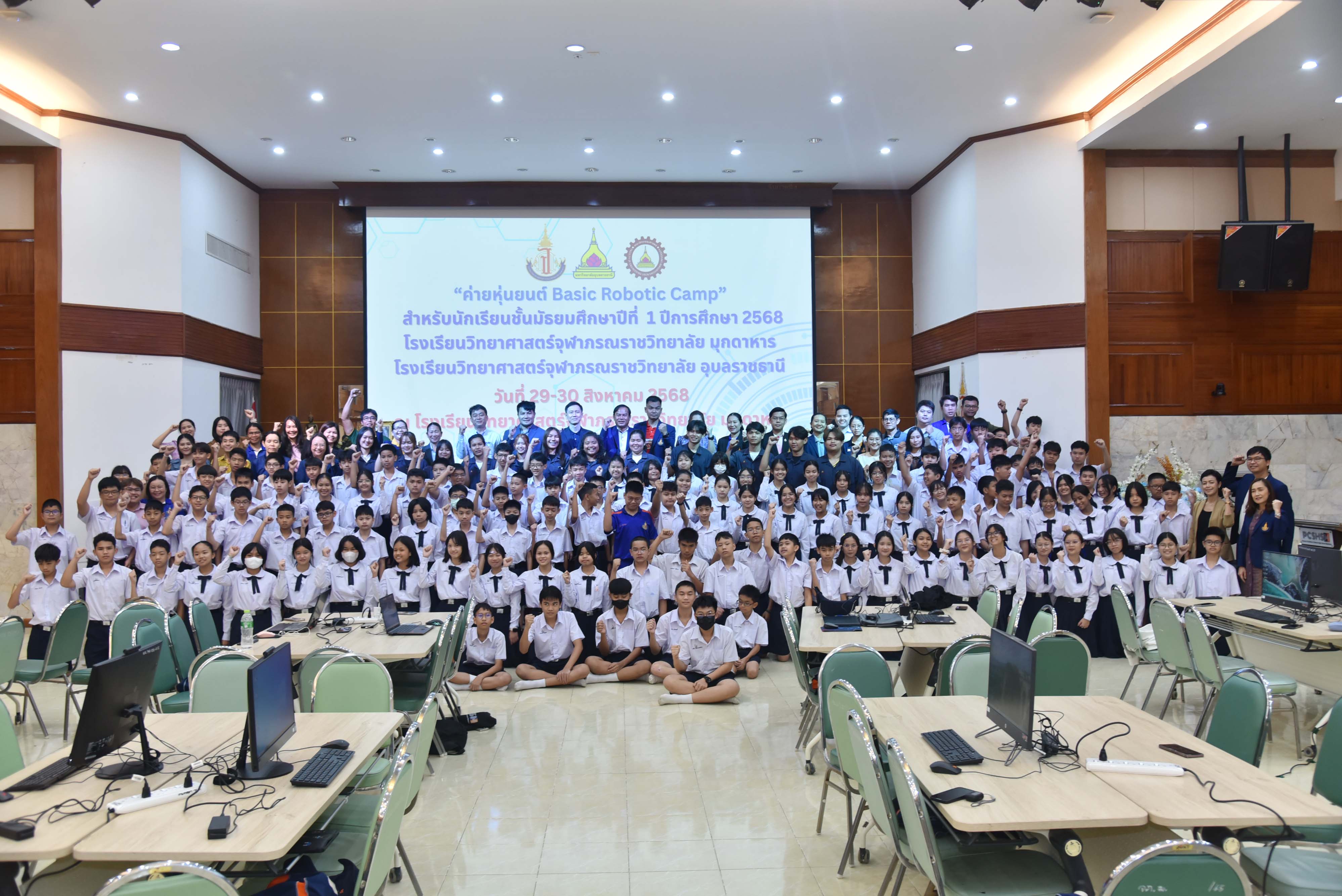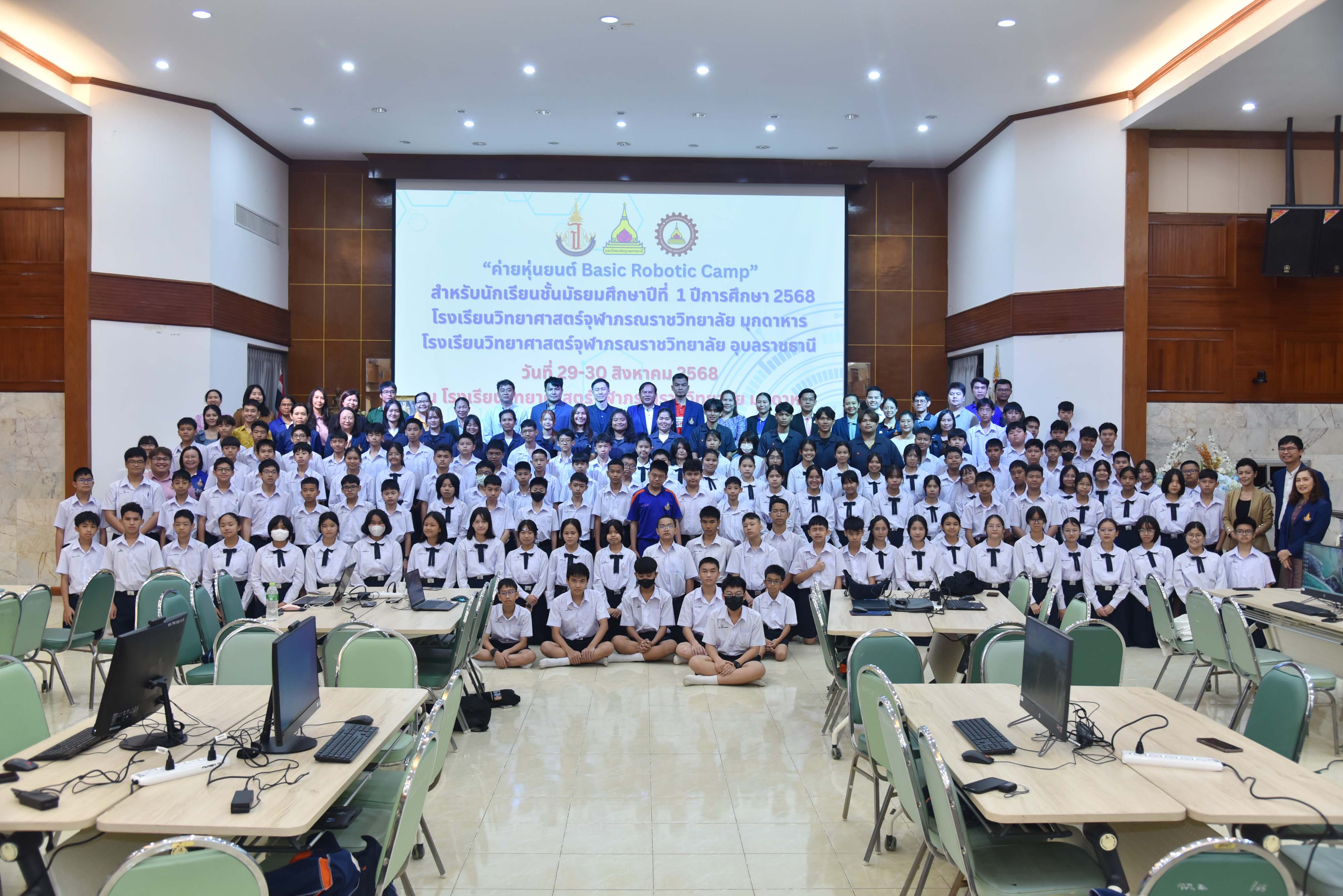กลุ่มสารการการเรียนรู้คณิตศาสตร์โรงเรียนวิทยาศาสตร์จุฬาภรณราชวิทยาลัย มุกดาหารจัดกิจกรรมการอบรมเชิงปฏิบัติการค่ายหุ่นยนต์ Basic Robotic Camp ปีการศึกษา 2568 ในระหว่างวันที่ 29-30 สิงหาคม พ.ศ. 2568 ณ หอประชุมโรงเรียนวิทยาศาสตร์จุฬาภรณราชวิทยาลัย มุกดาหารโดยจัดอบรมให้กับนักเรียนชั้นมัธยมศึกษาปีที่ 1 เพื่อส่งเสริมให้นักเรียนมีความรู้และทักษะด้านวิทยาศาสตร์และเทคโนโลยีในระดับเดียวกับนักเรียนของโรงเรียนวิทยาศาสตร์ชั้นนำของนานาชาติ ผ่านการเรียนรู้พื้นฐานด้านหุ่นยนต์และการเขียนโปรแกรมเบื้องต้น นักเรียนได้เรียนรู้ทักษะการออกแบบและประกอบหุ่นยนต์ การเขียนโปรแกรมควบคุมการทำงานของหุ่นยนต์ ตลอดจนกิจกรรมฝึกแก้ปัญหา (Problem Solving) และการทำงานเป็นทีม โดยวิทยากรผู้เชี่ยวชาญและนักศึกษาผู้ช่วยวิทยากรจากคณะวิศวกรรมศาสตร์ มหาวิทยาลัยอุบลราชธานี