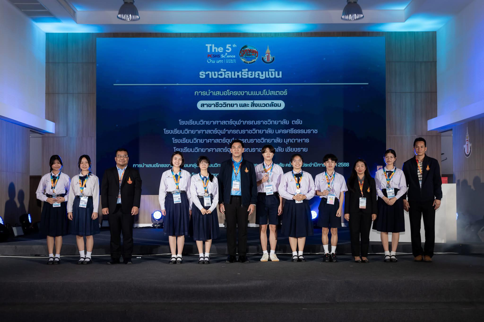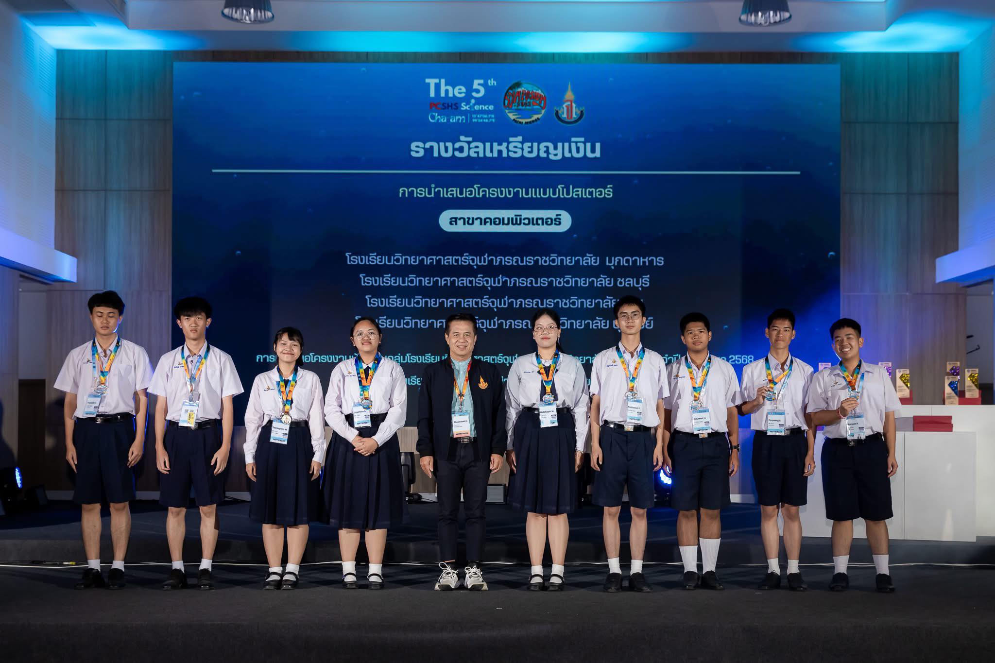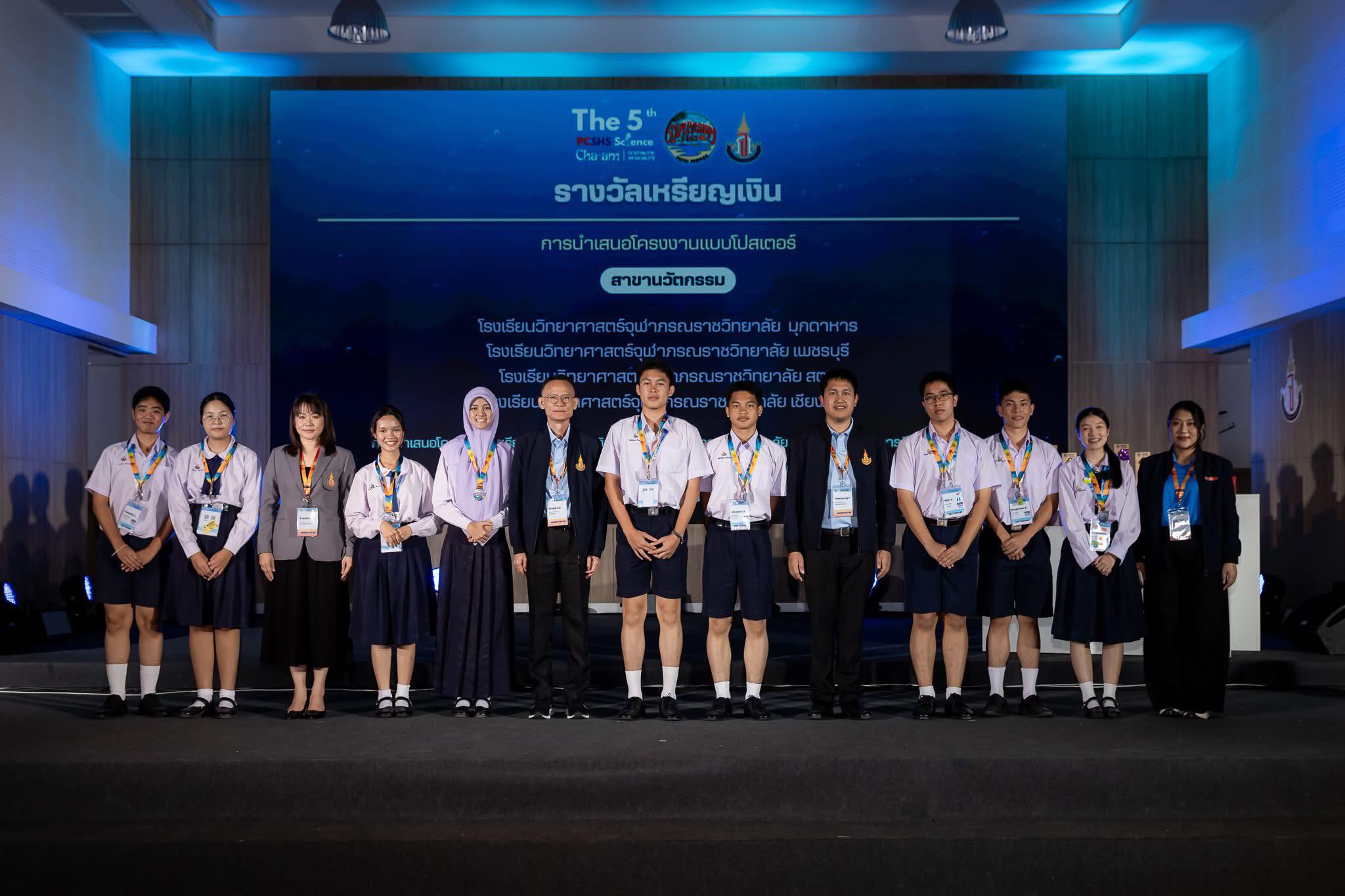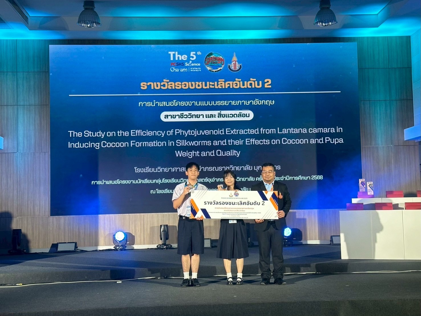 แสดงความยินดีกับนักเรียนในการเข้าร่วมการนำเสนอโครงงานนักเรียนกลุ่มโรงเรียนวิทยาศาสตร์จุฬาภรณราชวิทยาลัย ของโรงเรียนวิทยาศาสตร์จุฬาภรณราชวิทยาลัย มุกดาหาร ในงาน Science Symposium 2025 ครั้งที่ 5 ระหว่างวันที่ 1-4 กันยายน พ.ศ. 2568 ณ โรงเรียนวิทยาศาสตร์จุฬาภรณราชวิทยาลัย เพชรบุรี ผลการแข่งขัน