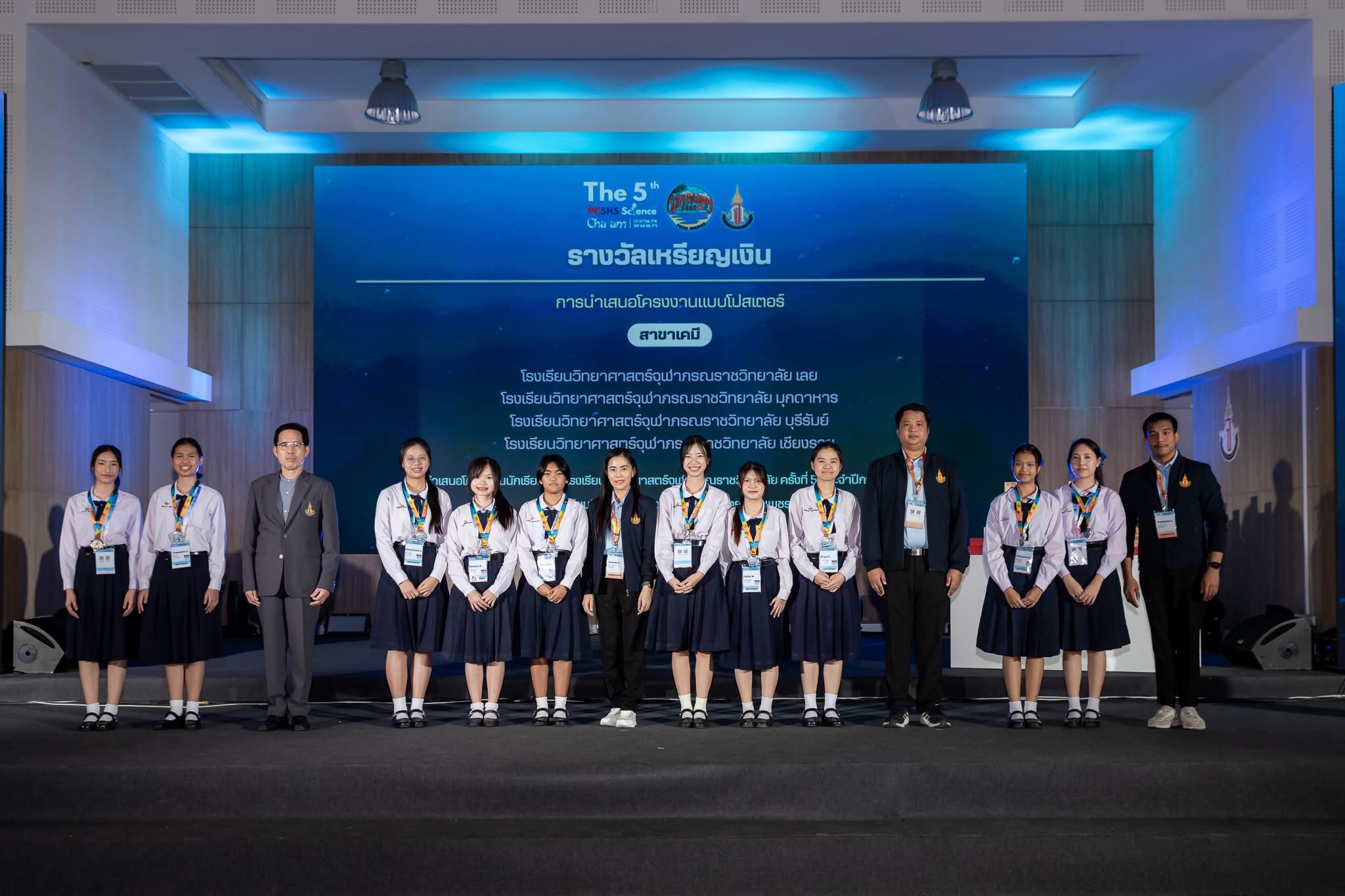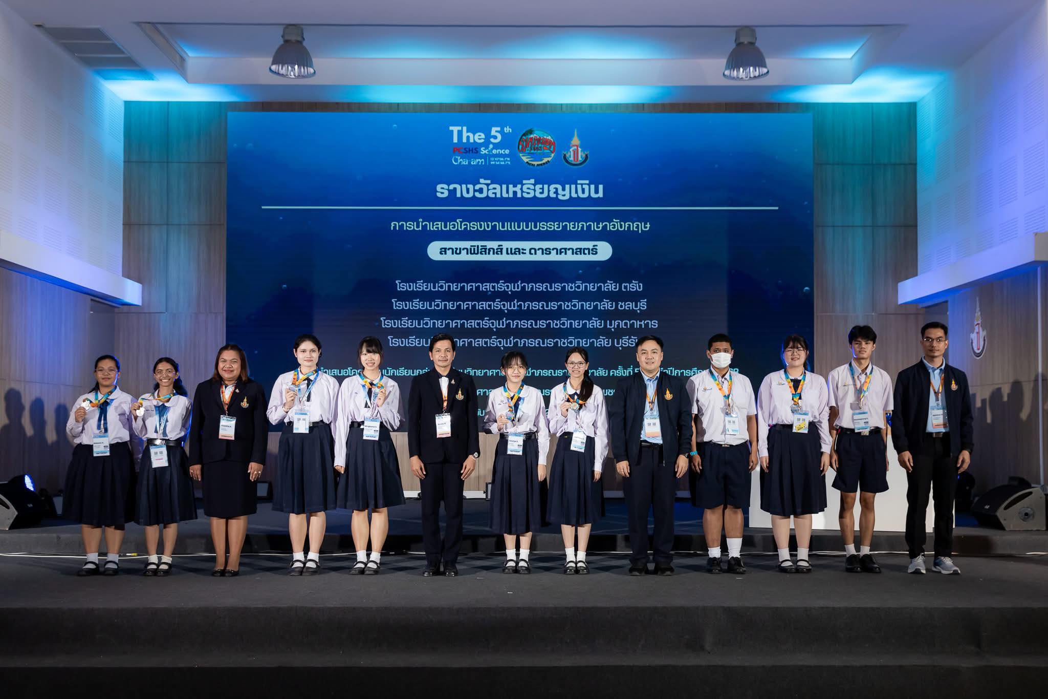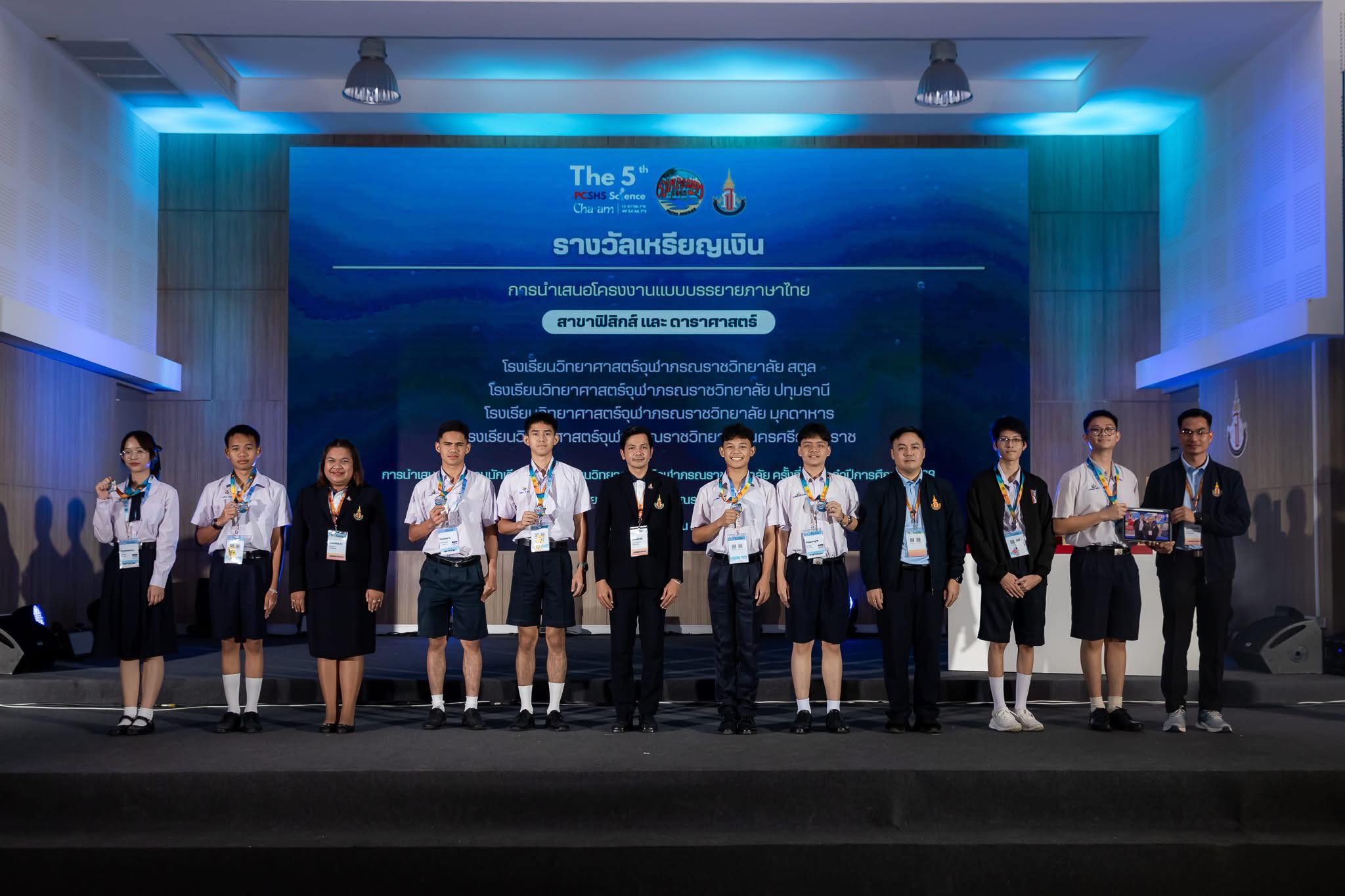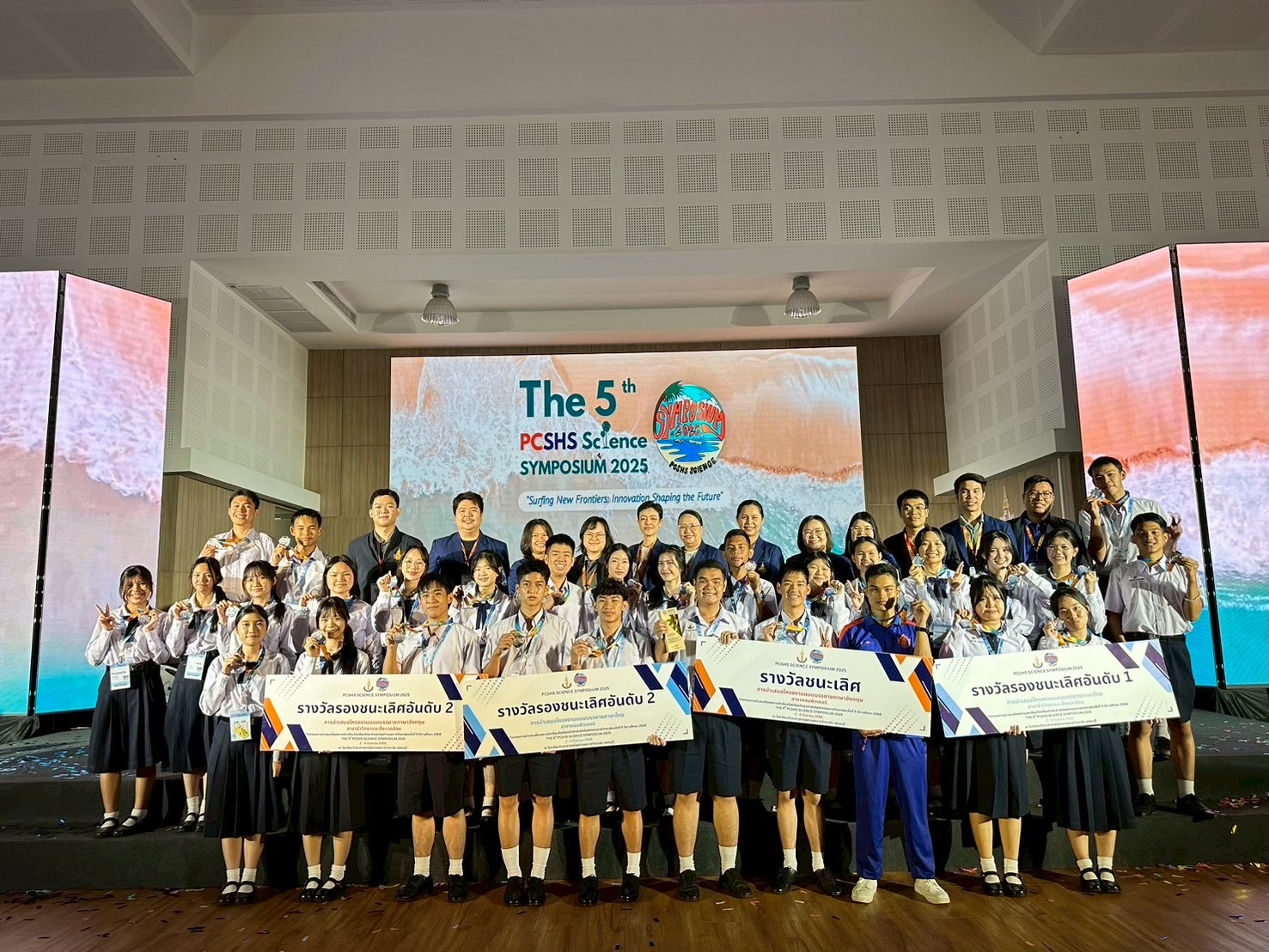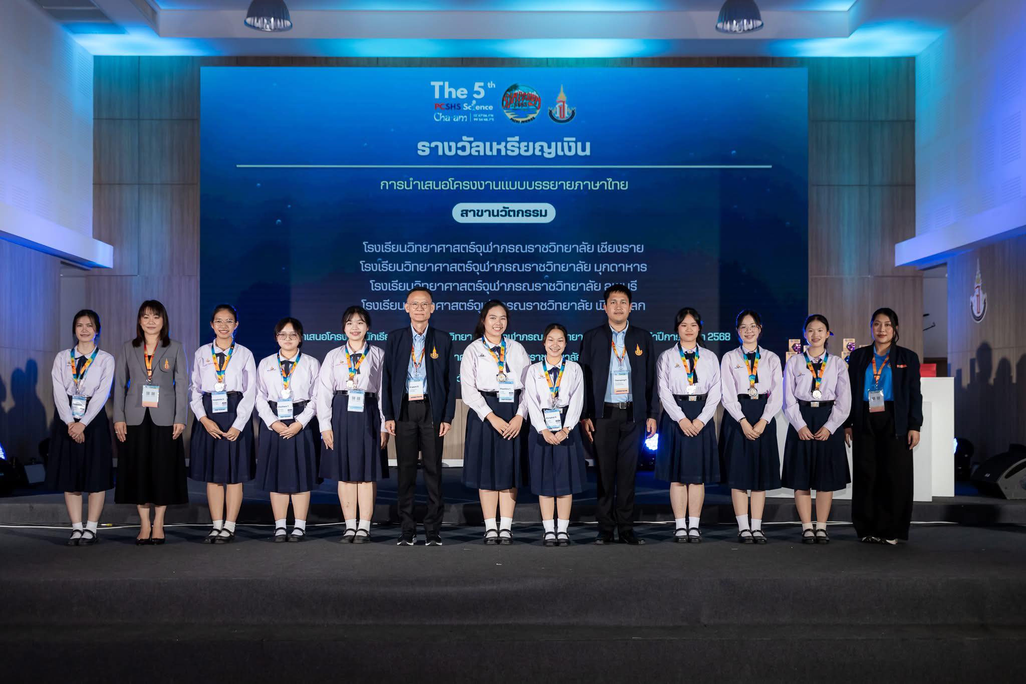 แสดงความยินดีกับนักเรียนในการเข้าร่วมการนำเสนอโครงงานนักเรียนกลุ่มโรงเรียนวิทยาศาสตร์จุฬาภรณราชวิทยาลัย ของโรงเรียนวิทยาศาสตร์จุฬาภรณราชวิทยาลัย มุกดาหาร ในงาน Science Symposium 2025 ครั้งที่ 5 ระหว่างวันที่ 1-4 กันยายน พ.ศ. 2568 ณ โรงเรียนวิทยาศาสตร์จุฬาภรณราชวิทยาลัย เพชรบุรี ผลการแข่งขัน