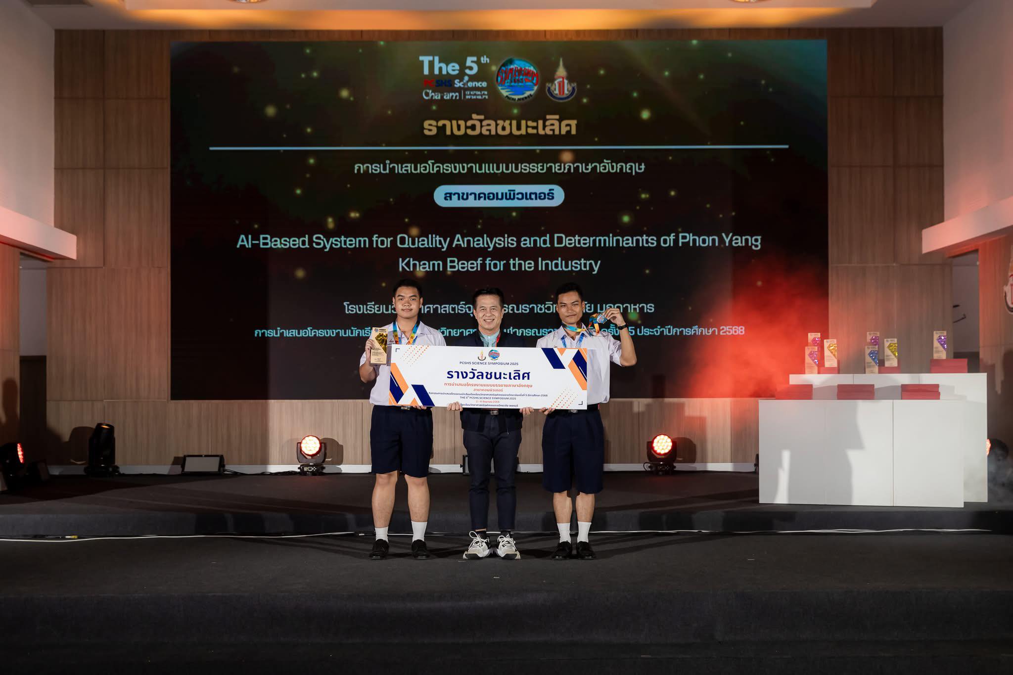 - รางวัลชนะเลิศ เหรียญทอง English Oral Presentation สาขาคอมพิวเตอร์ โครงงานเรื่อง ระบบวิเคราะห์คุณภาพและบ่งบอกเหตุผลของระดับคุณภาพเนื้อโคขุนโพนยางคำสำหรับอุตสาหกรรมด้วยเทคโนโลยีปัญญาประดิษฐ์ ผู้พัฒนางาน นายปฏิพล เจริญผล นายพีรพัฒน์ พรมจันทร์ ครูที่ปรึกษา นางสาวทิพย์อนันต์ โพธะกัน นายอรรจน์ คงทอง