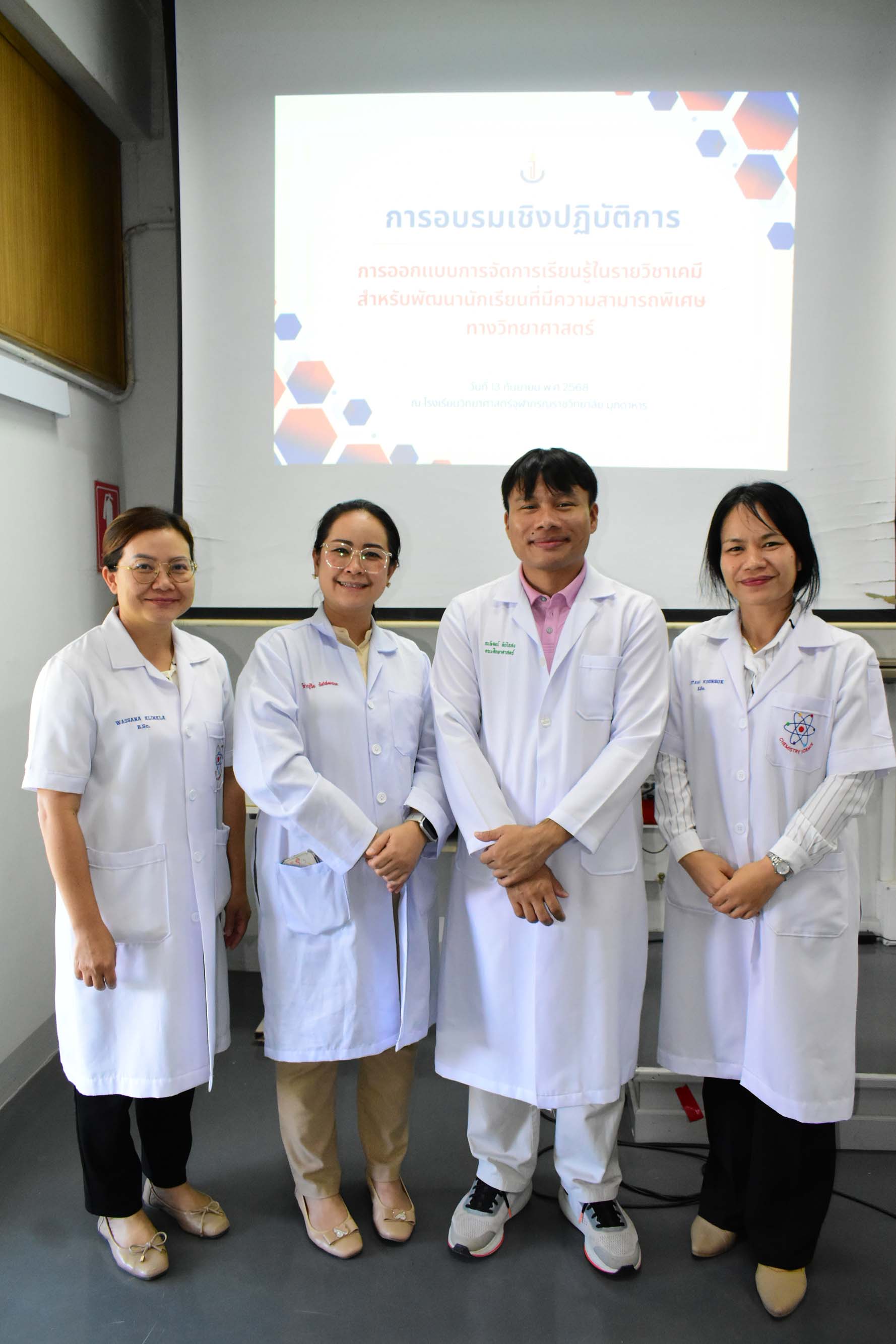การอบรมเชิงปฏิบัติการการออกแบบการจัดการเรียนรู้รายวิชาเคมีสำหรับการพัฒนานักเรียนที่มีความสามารถพิเศษทางวิทยาศาสตร์ จัดขึ้นในวันเสาร์ที่ 13 กันยายน พ.ศ. 2568 เวลา 08.30-16.30 น. ณ ห้องปฏิบัติการเคมี โรงเรียนวิทยาศาสตร์จุฬาภรณราชวิทยาลัย มุกดาหาร