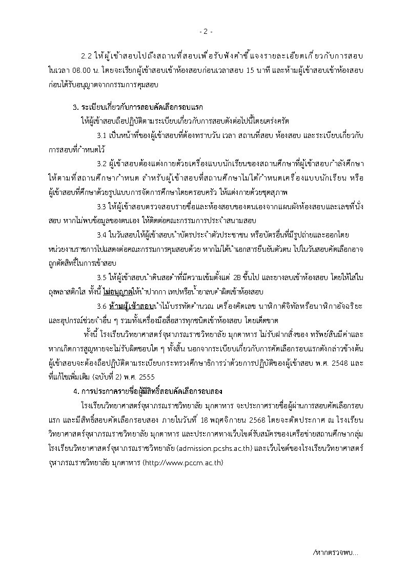 - กำหนดสอบ วันอาทิตย์ที่ 9 พฤศจิกายน พ.ศ. 2568 เวลา 09.00-14.30 น. ให้ผู้เข้าสอบไปถึงสถานที่สอบในเวลา 08.00 น. เพื่อฟังคำชี้แจง สนามสอบตามที่กำหนดในเอกสารแนบ