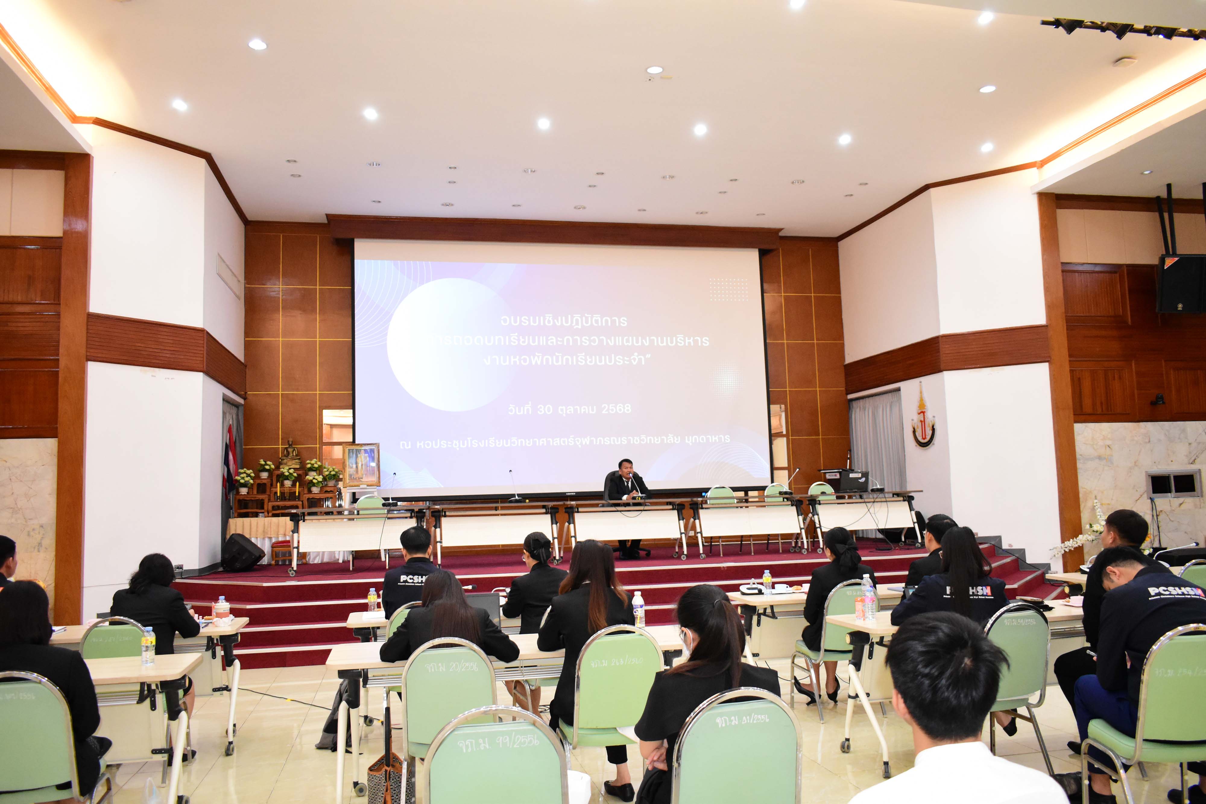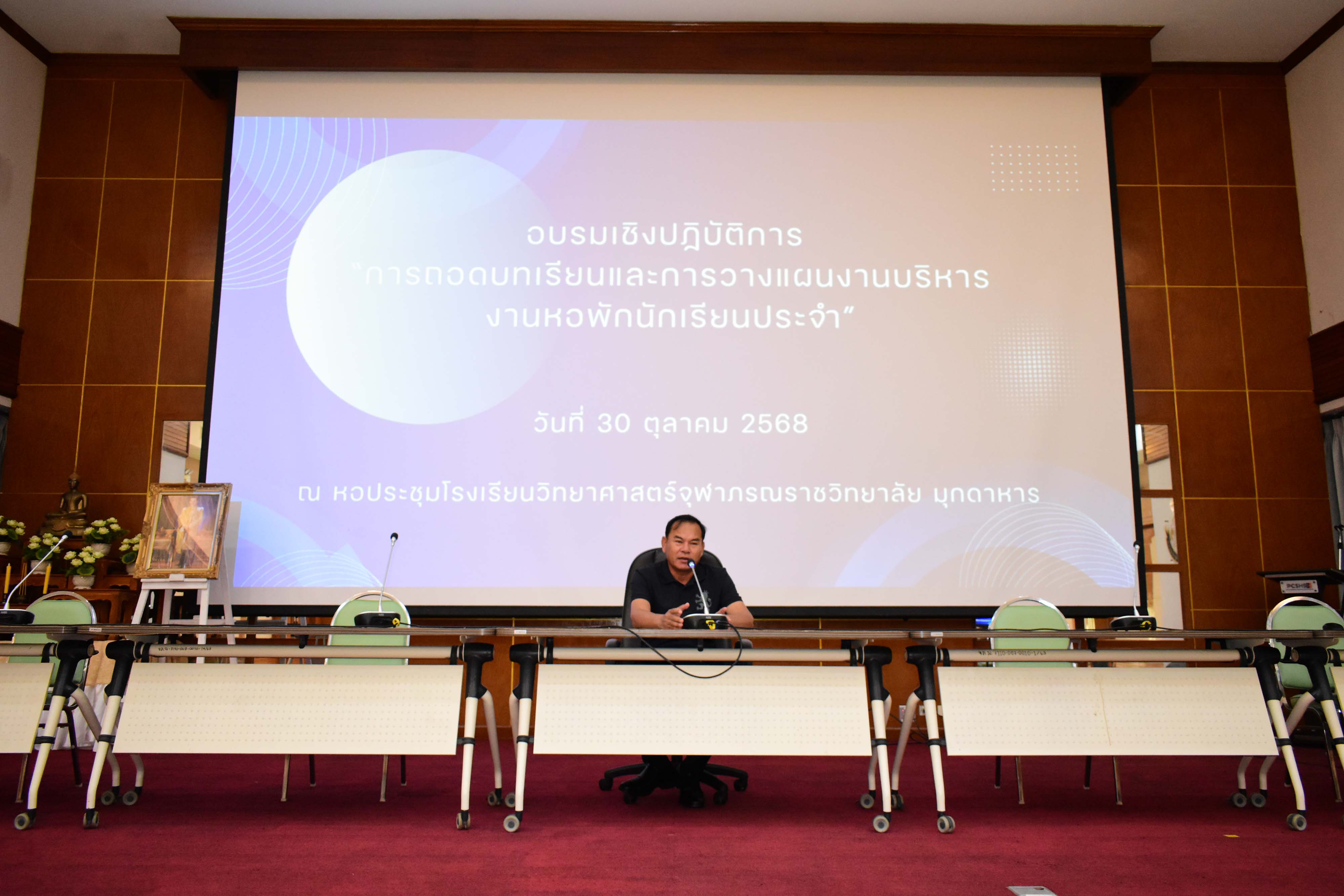 กลุ่มงานบริหารงานกิจการนักเรียนและหอพัก โรงเรียนวิทยาศาสตร์จุฬาภรณราชวิทยาลัย มุกดาหาร และโรงเรียนวิทยาศาสตร์จุฬาภรณราชวิทยาลัย อุบลราชธานี ได้จัดกิจกรรม “ถอดบทเรียนและการวางแผนงานการบริหารหอพักนักเรียนประจำ” ในวันที่ 30 ตุลาคม 2568 เวลา 09.00-12.00 น. ณ หอประชุมโรงเรียนวิทยาศาสตร์จุฬาภรณราชวิทยาลัย มุกดาหาร เป้าหมายผู้เข้าร่วม ดังนี้ 1.ผู้อำนวยการโรงเรียน/รองผู้อำนวยการโรงเรียน 2.ครูหอพักทุกคน 3.ครูผู้นิเทศหอพักทุกคน