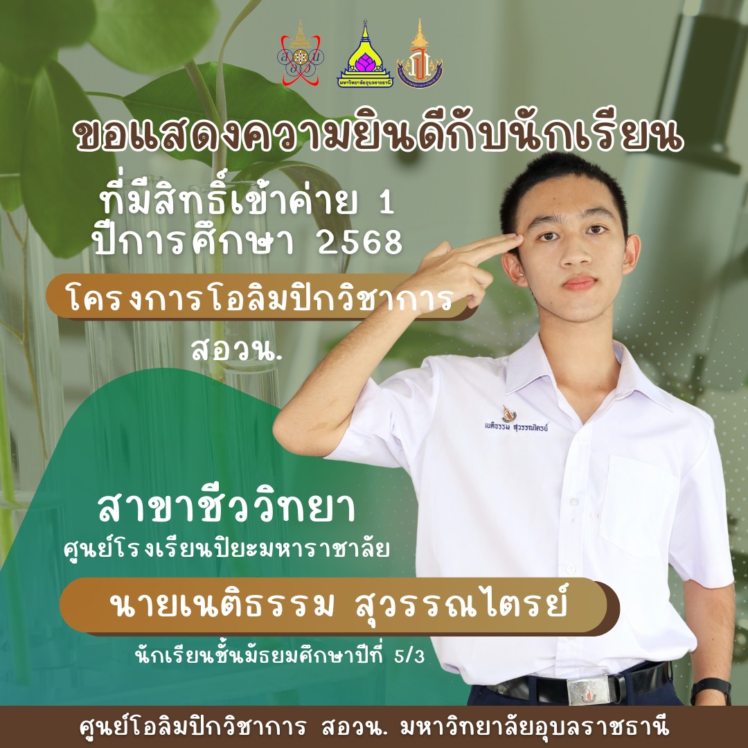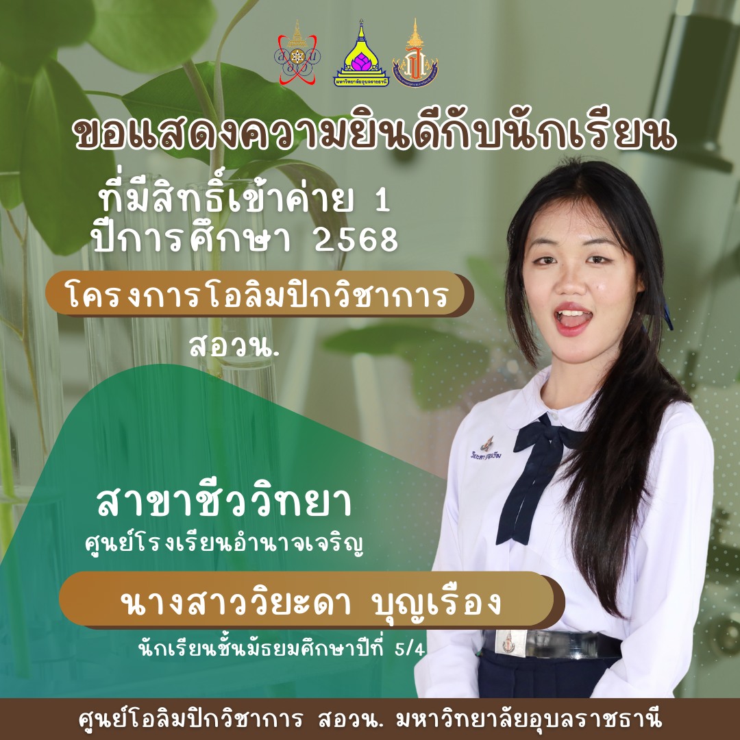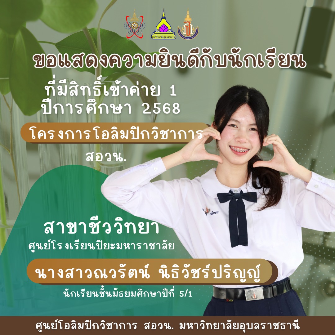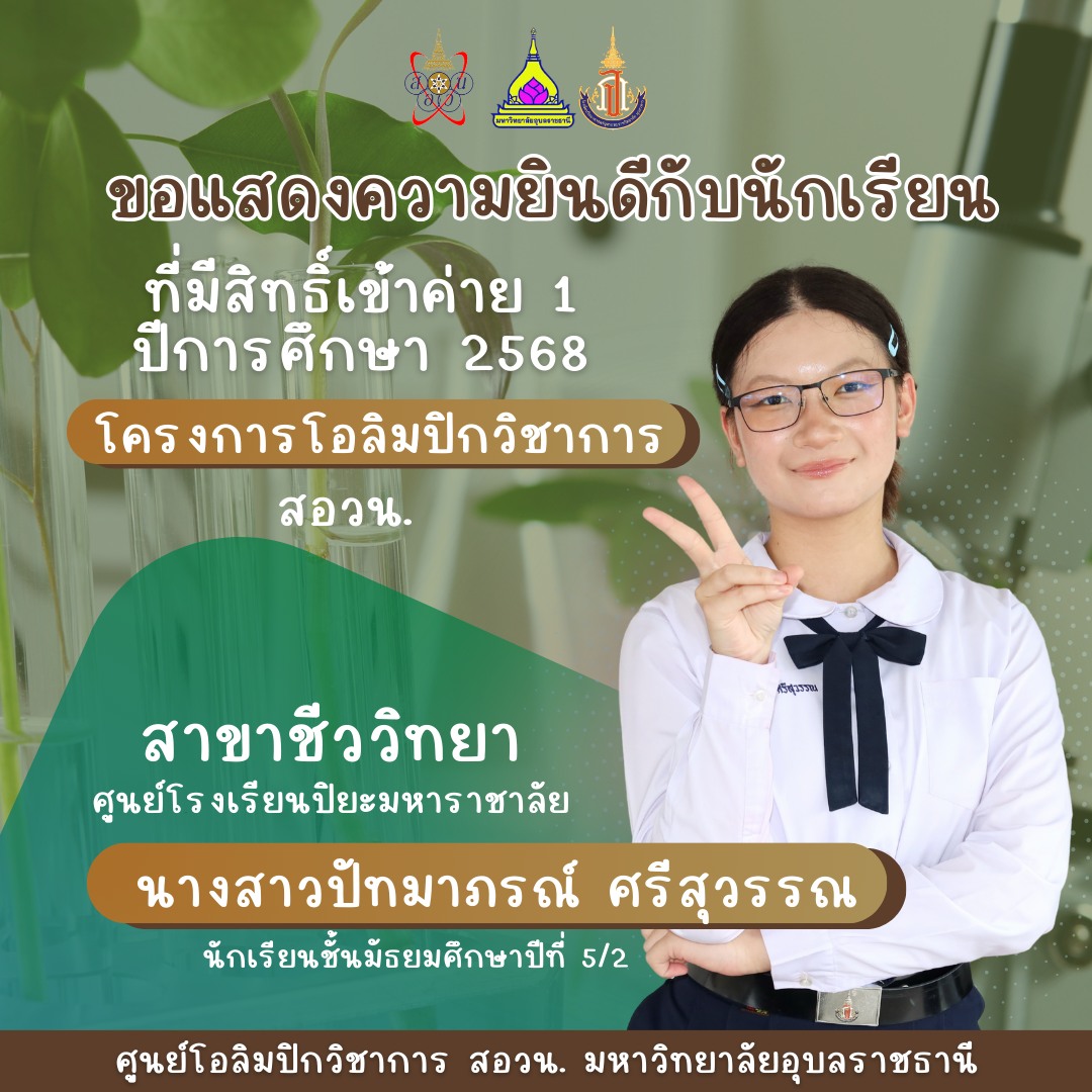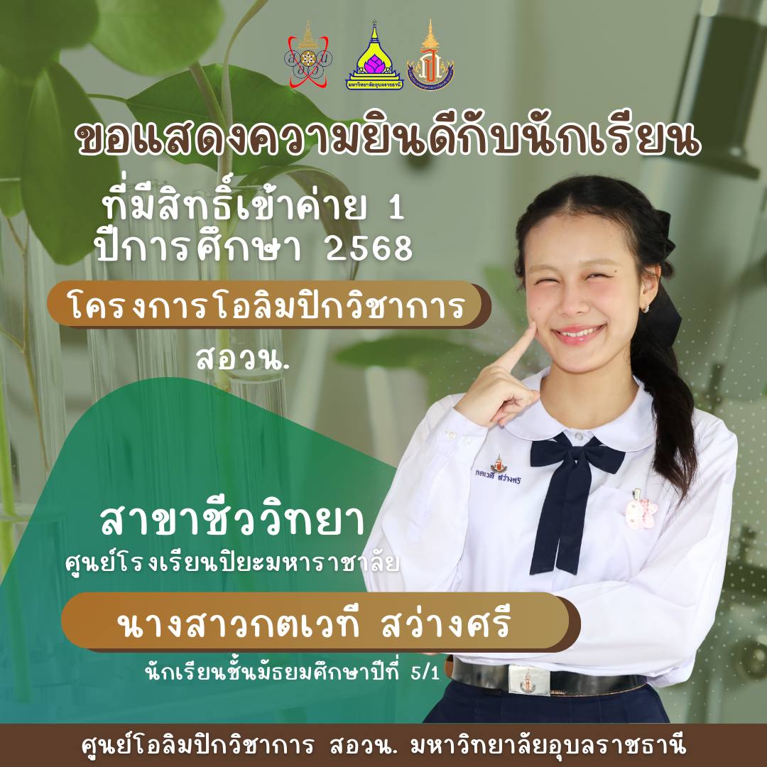 ยินดีกับนักเรียนที่สอบผ่านได้เข้าค่าย 1 โอลิมปิกวิชาการ สอวน.
