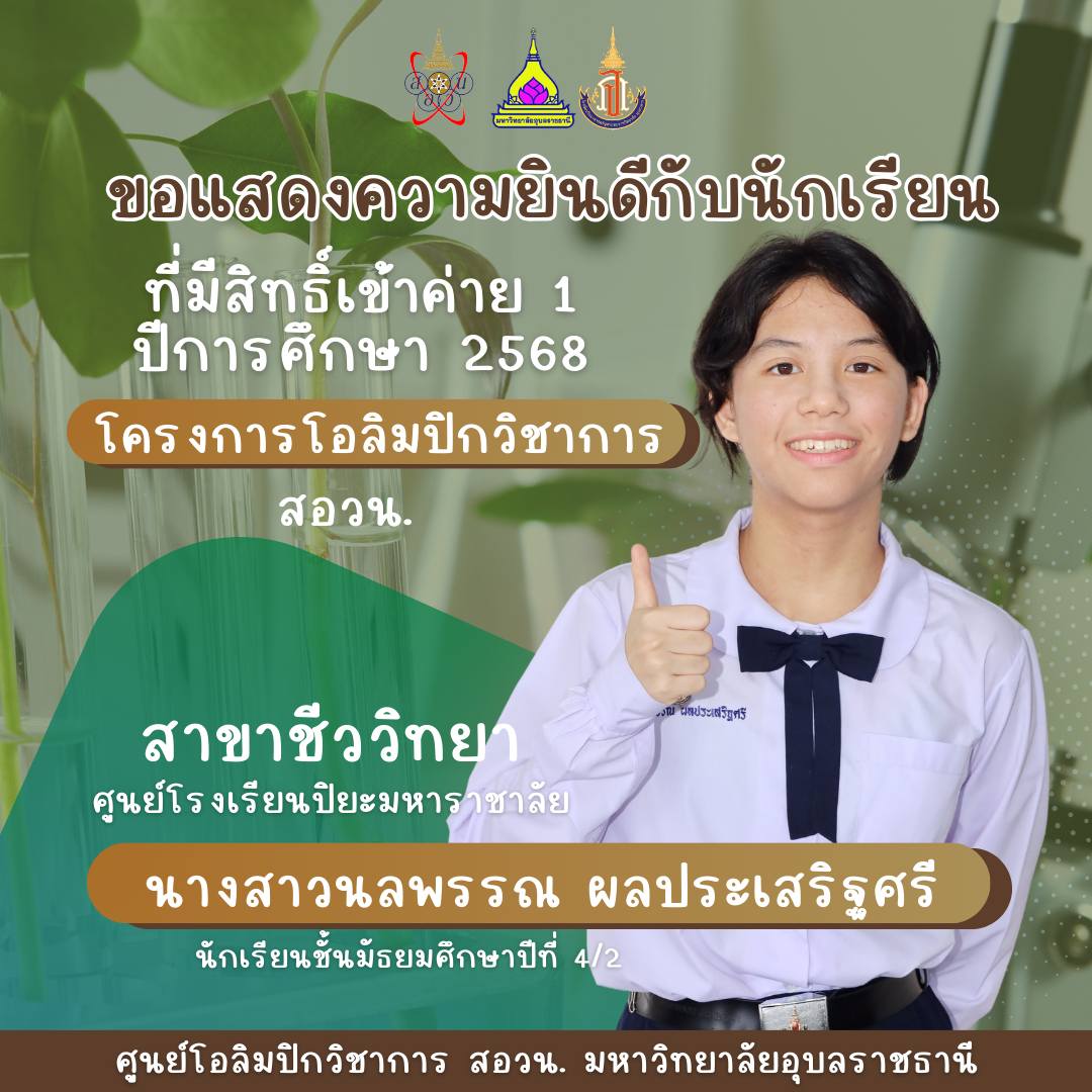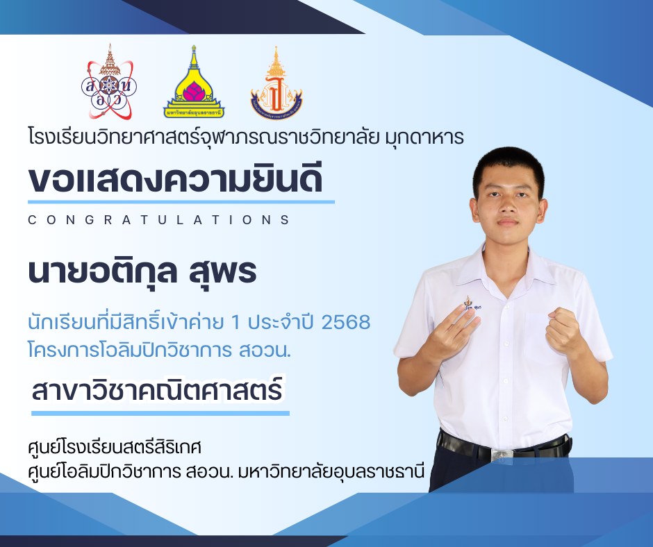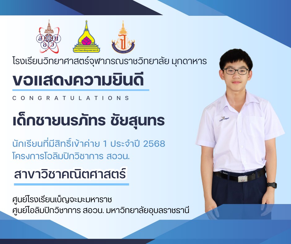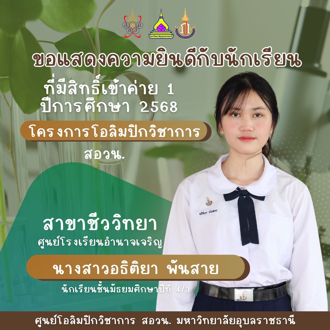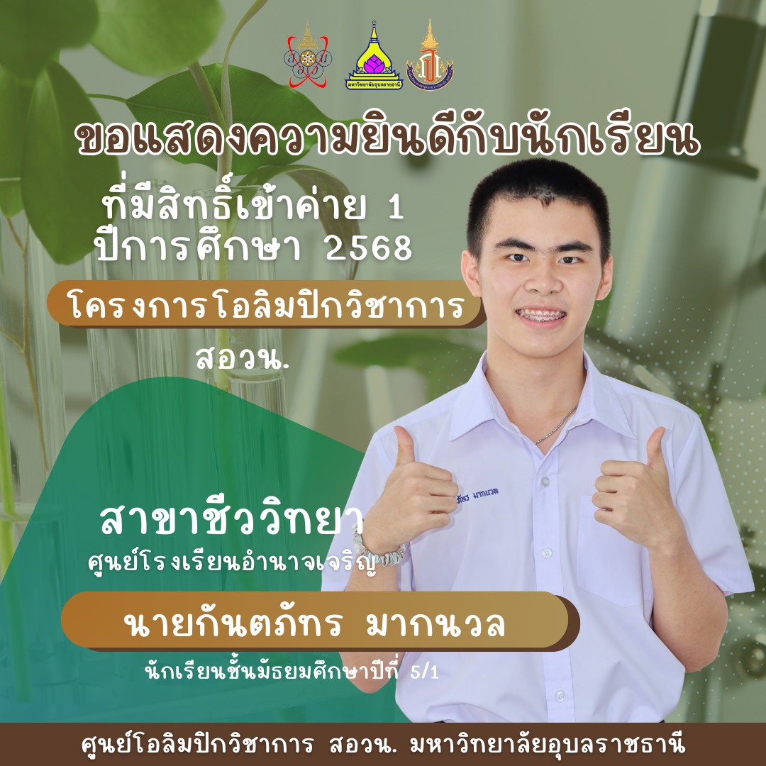 ยินดีกับนักเรียนที่สอบผ่านได้เข้าค่าย 1 โอลิมปิกวิชาการ สอวน.