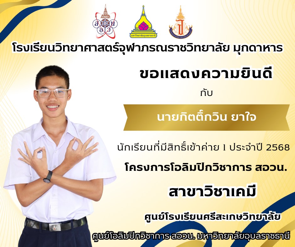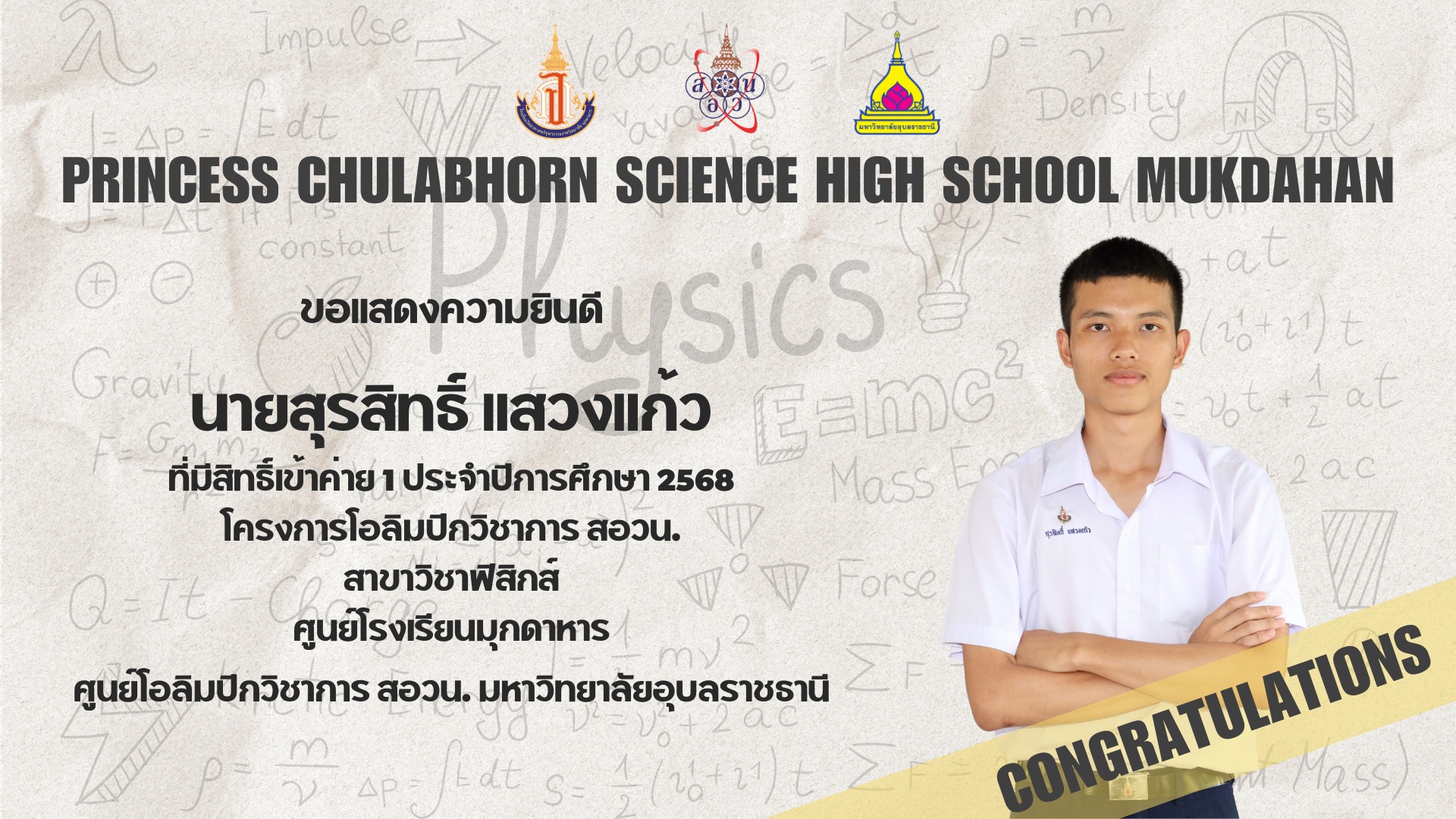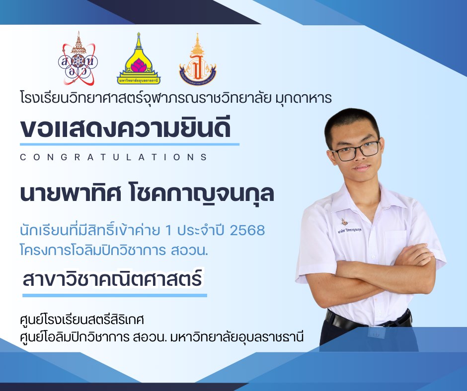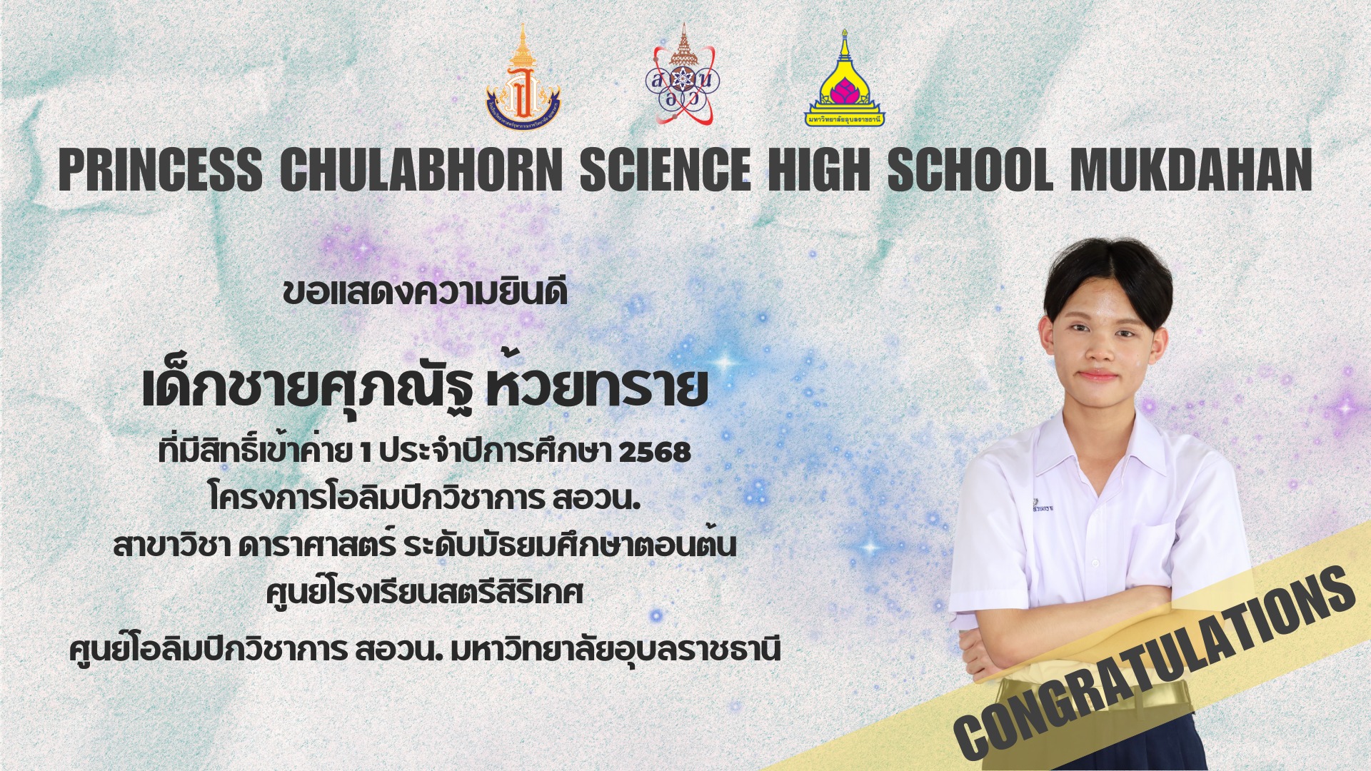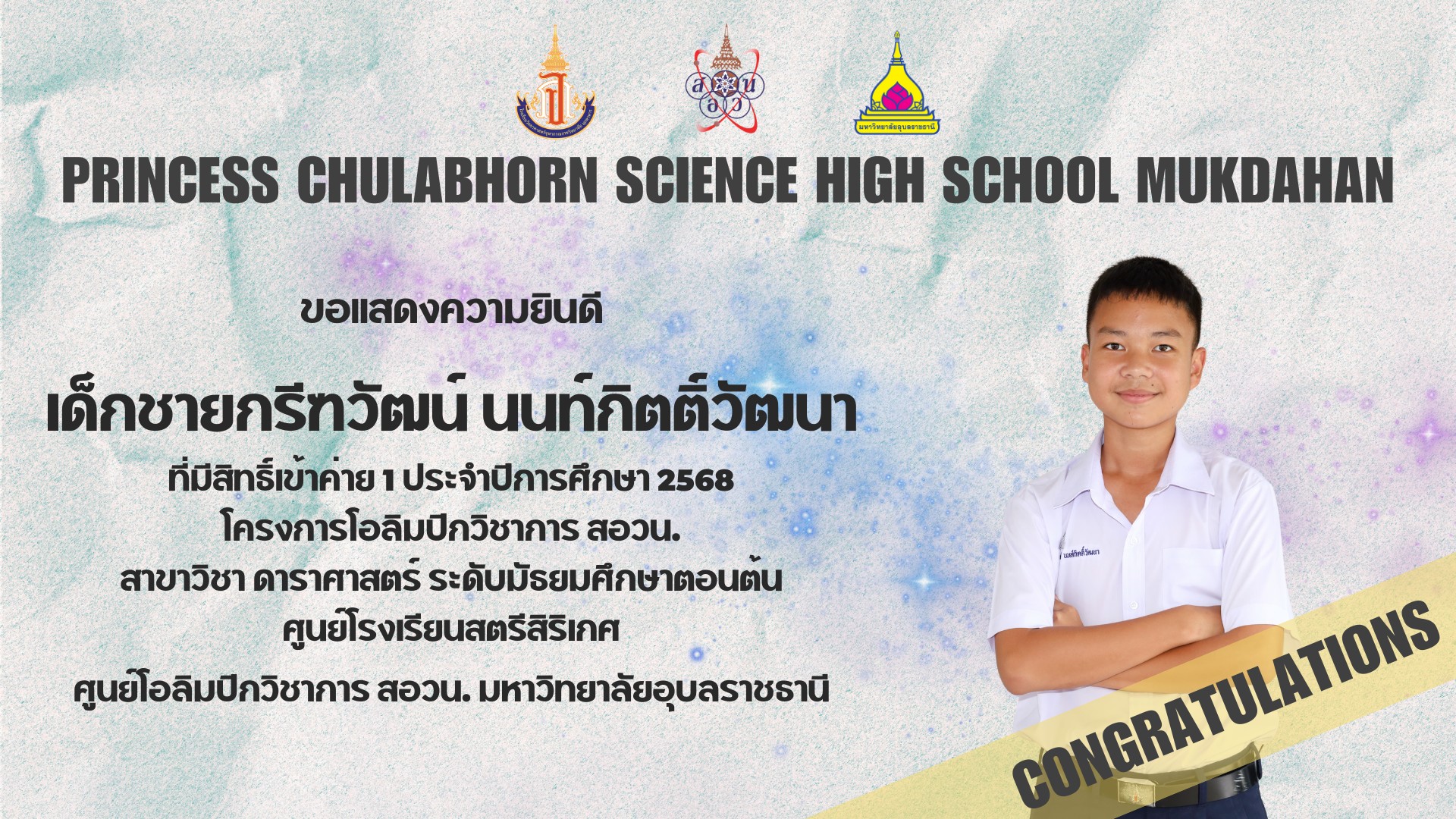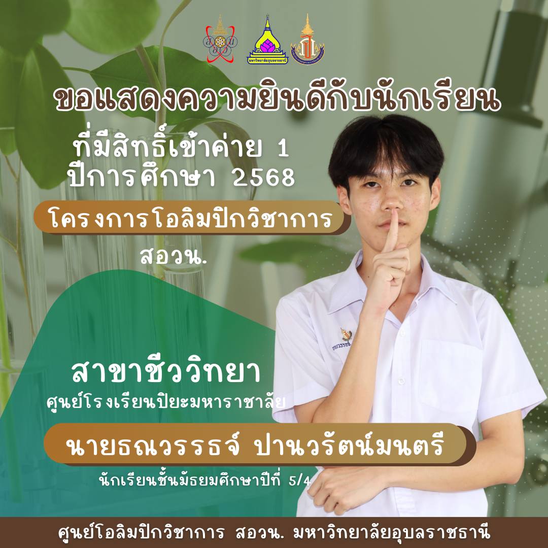 ยินดีกับนักเรียนที่สอบผ่านได้เข้าค่าย 1 โอลิมปิกวิชาการ สอวน.
