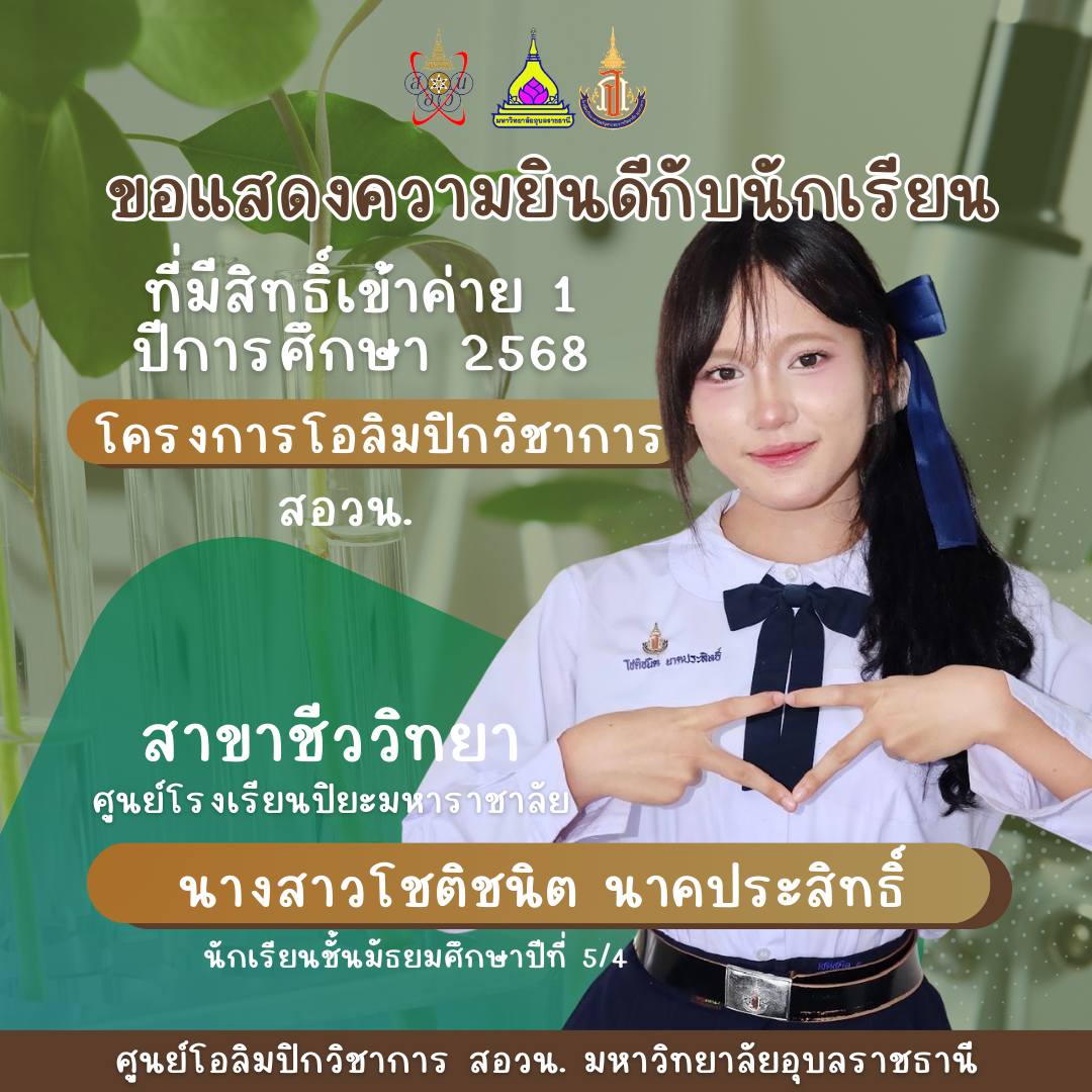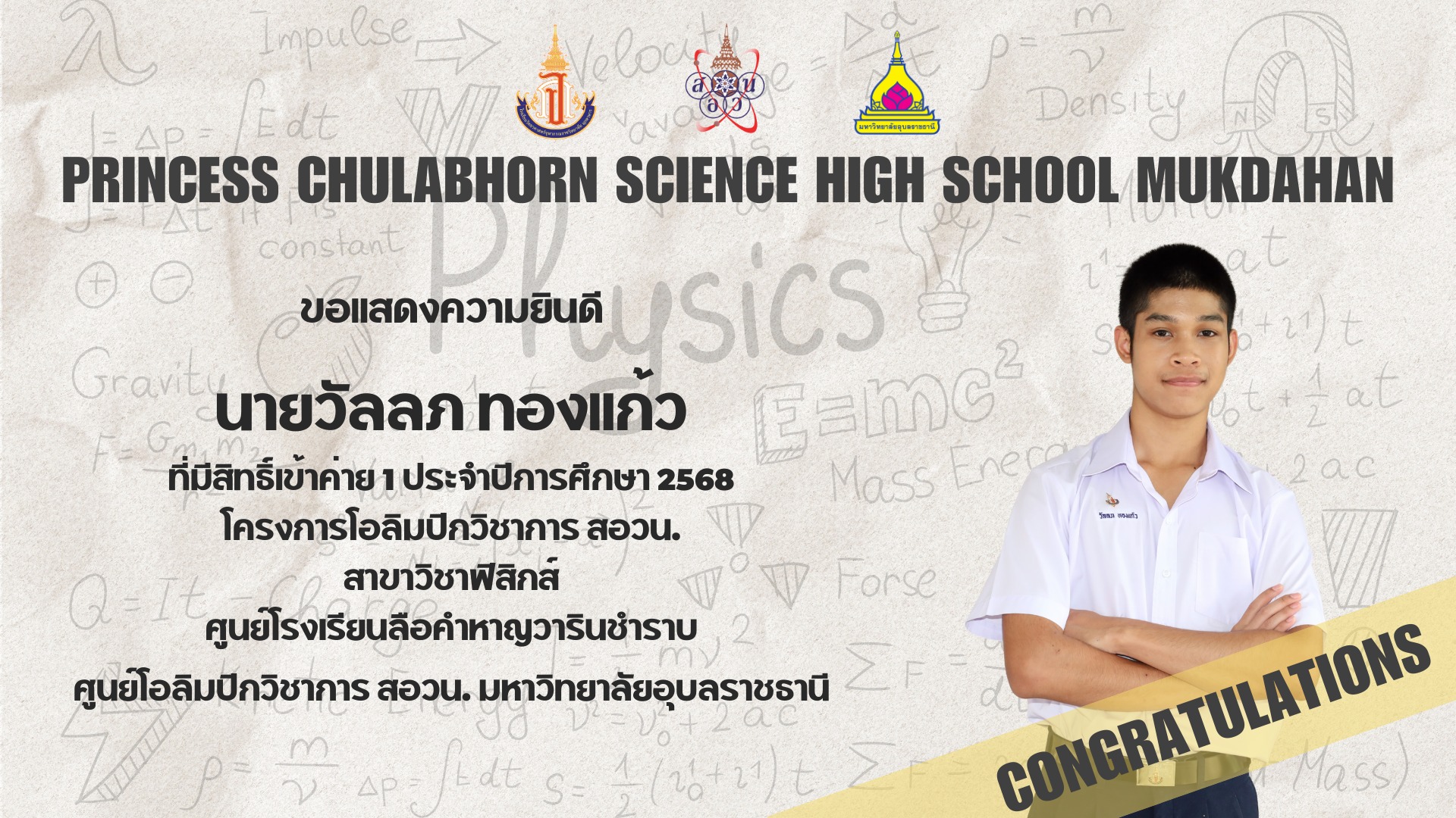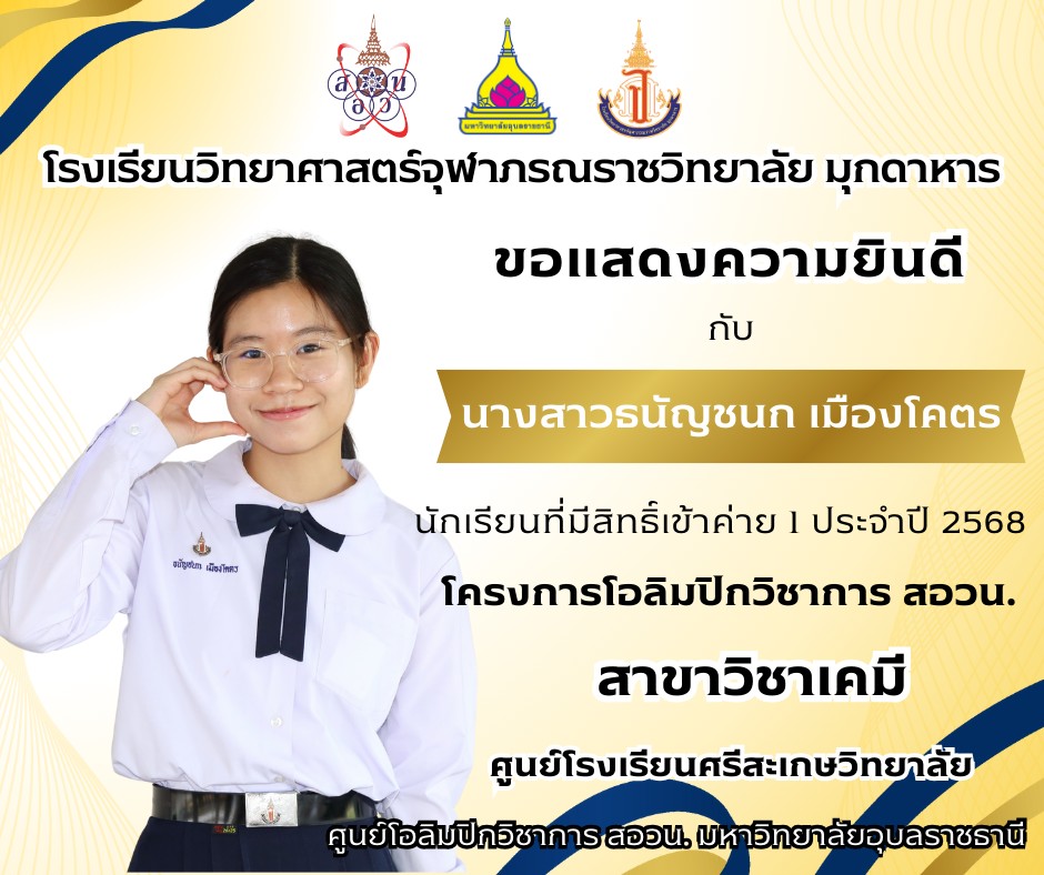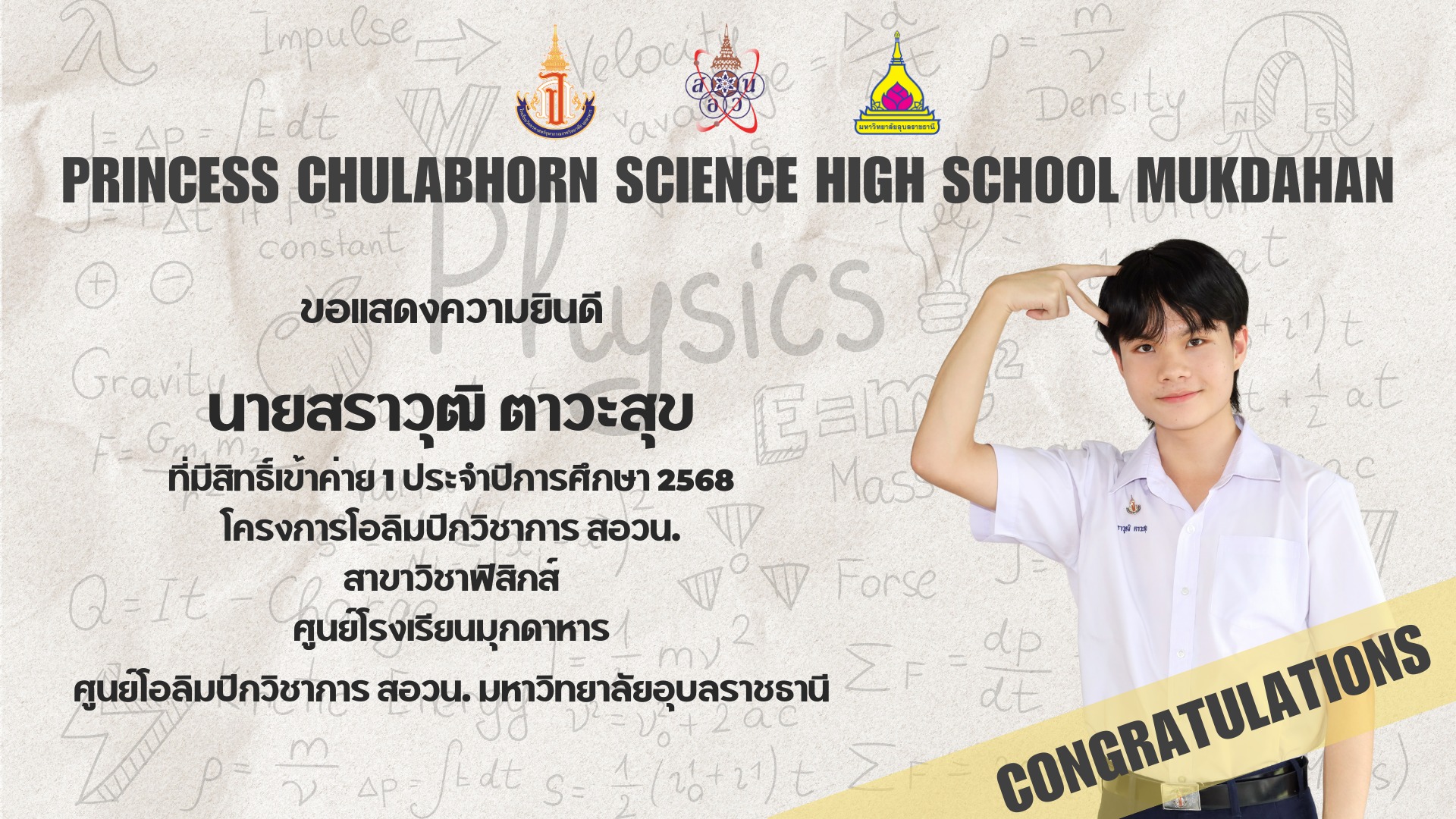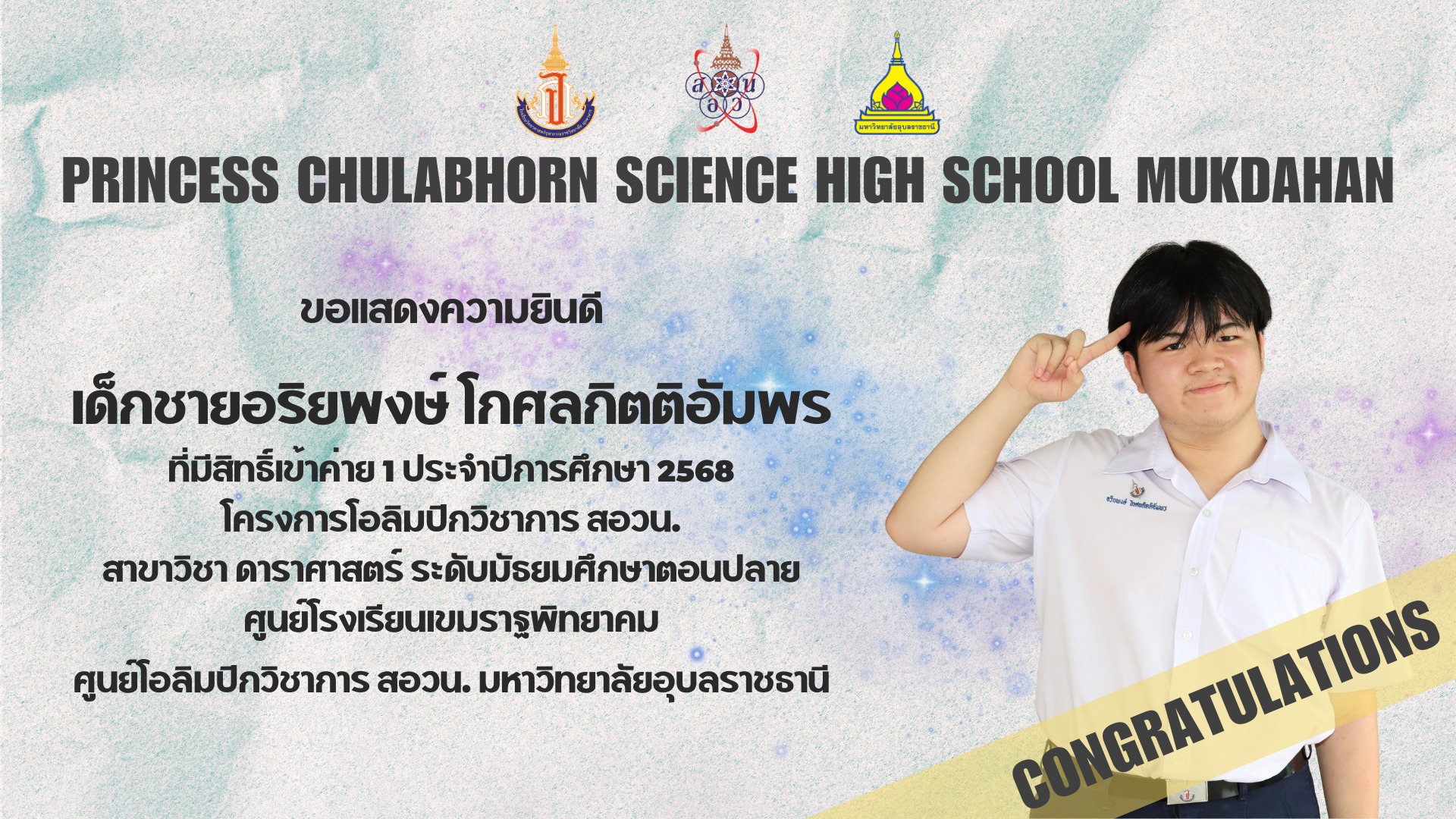 ยินดีกับนักเรียนที่สอบผ่านได้เข้าค่าย 1 โอลิมปิกวิชาการ สอวน.