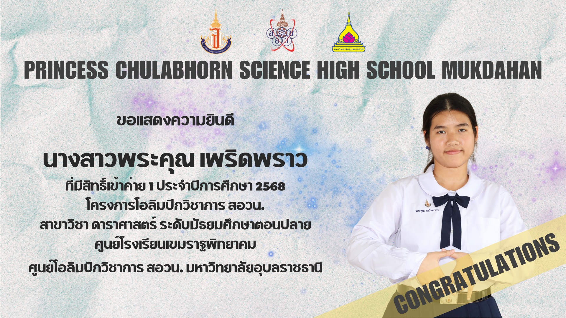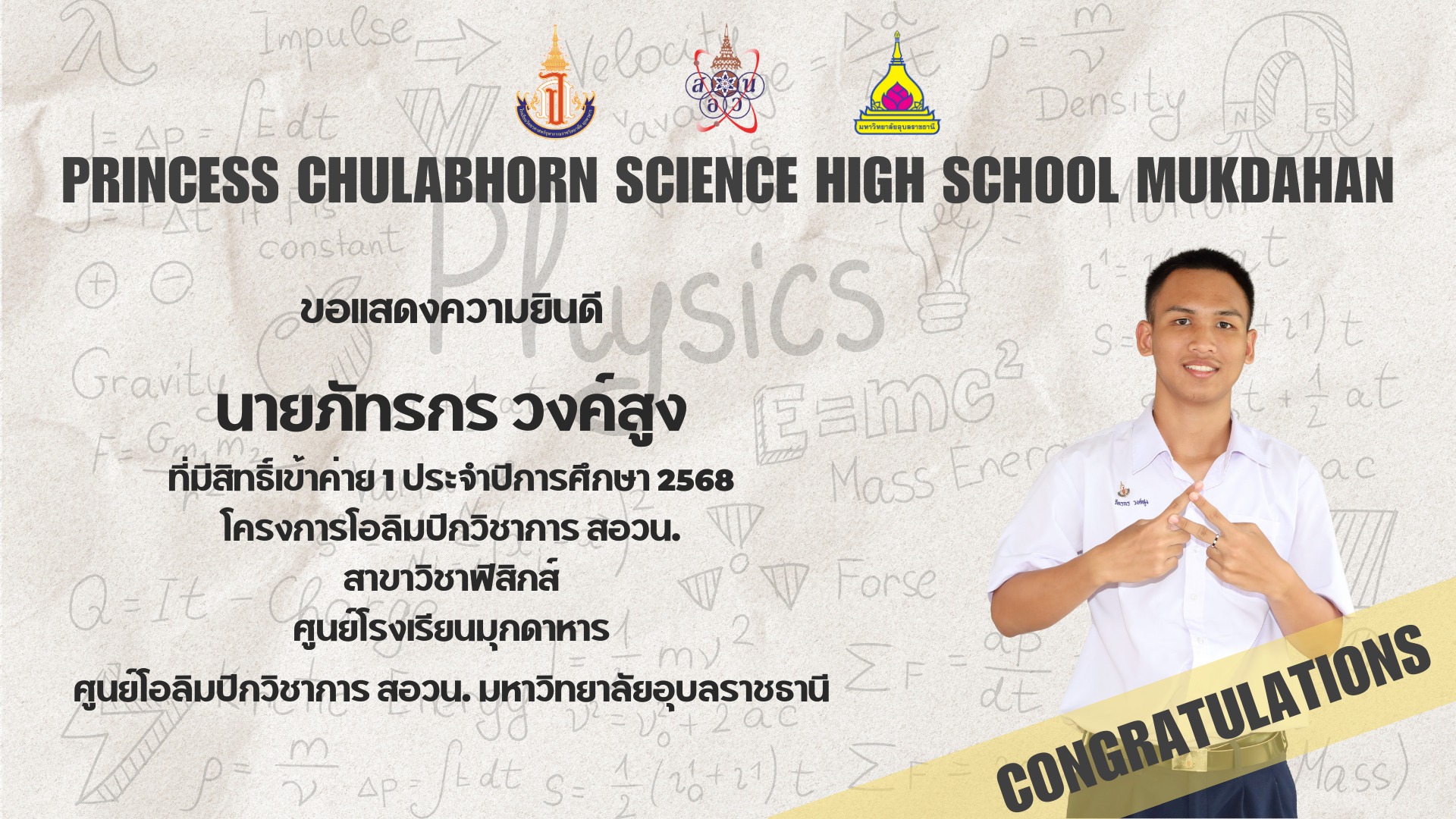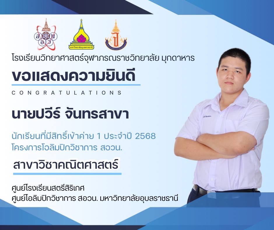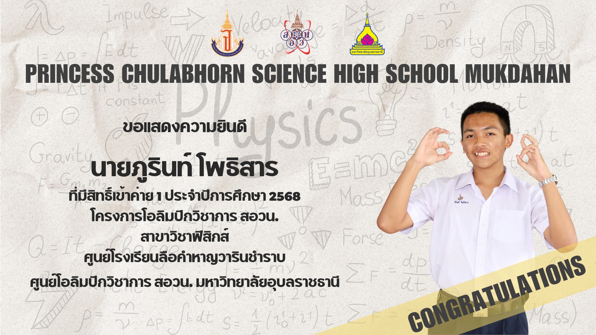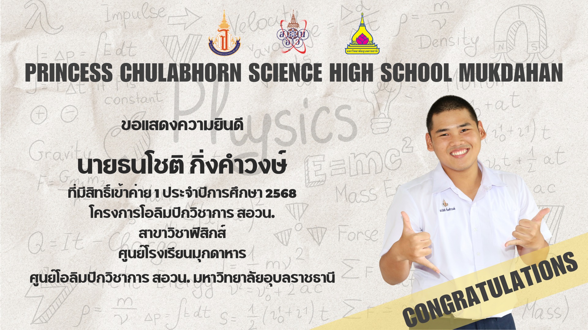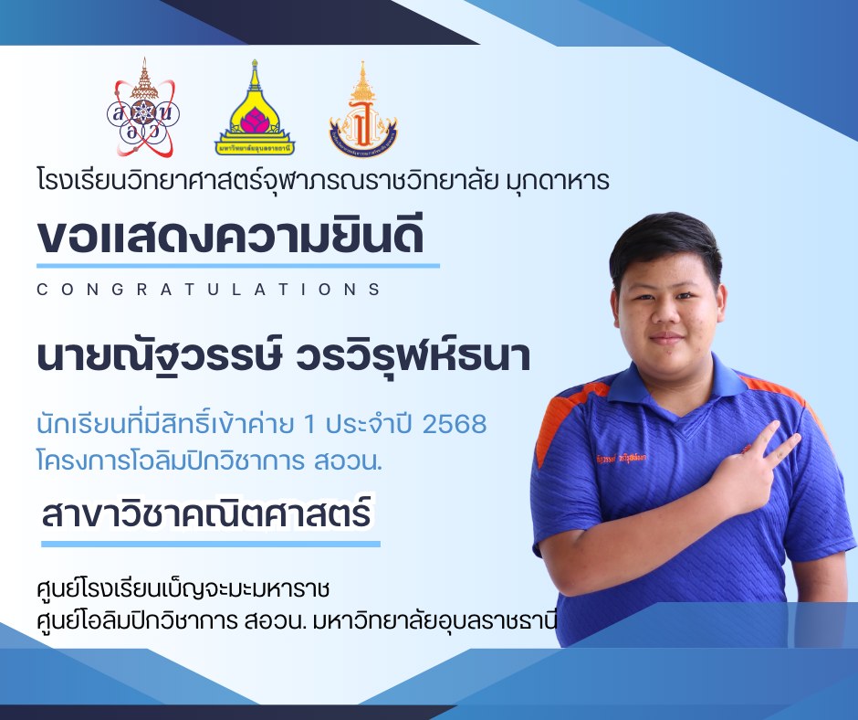ยินดีกับนักเรียนที่สอบผ่านได้เข้าค่าย 1 โอลิมปิกวิชาการ สอวน.