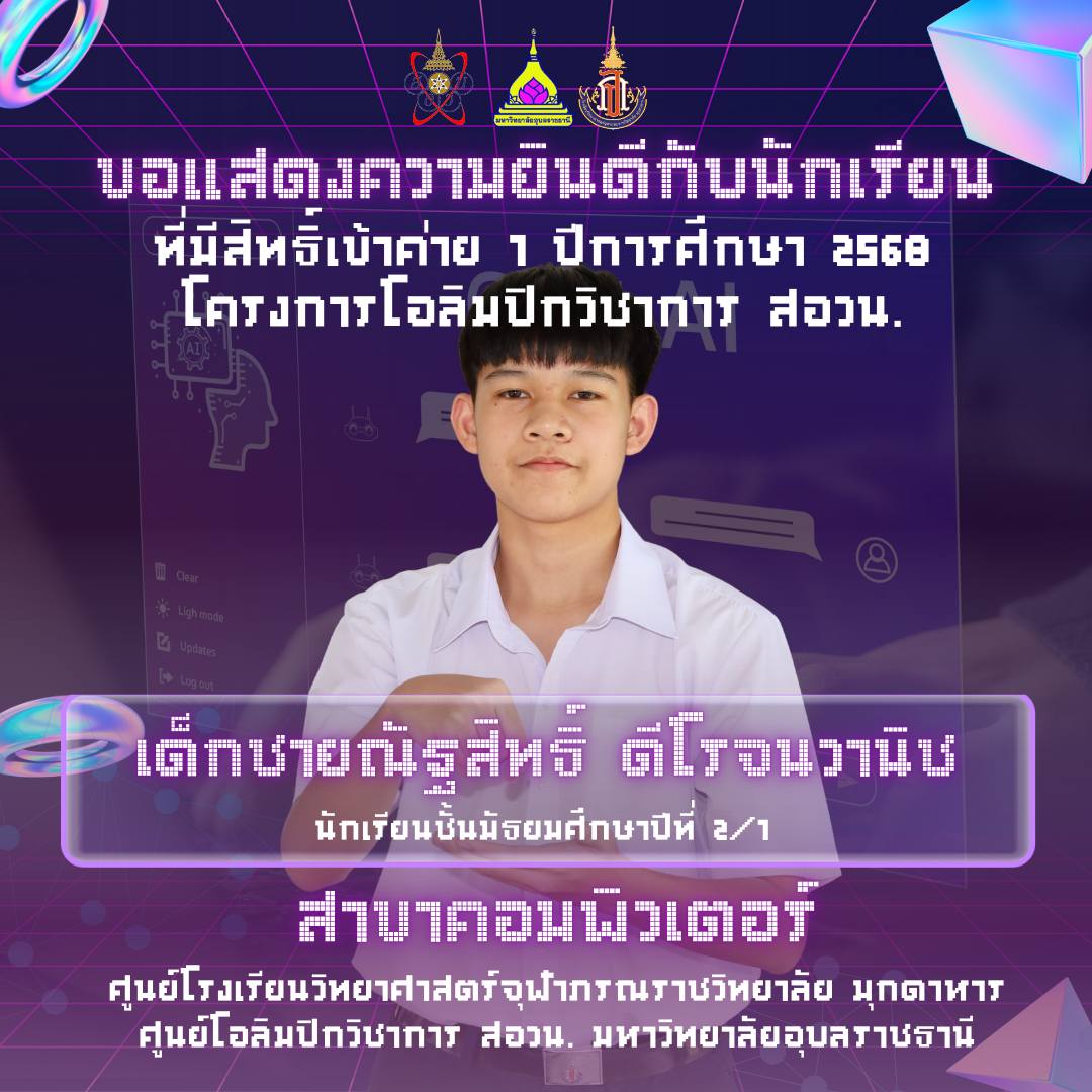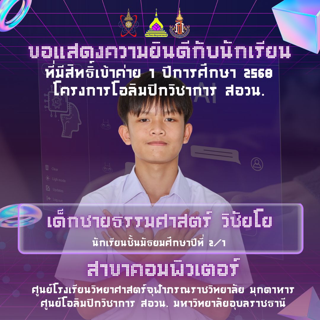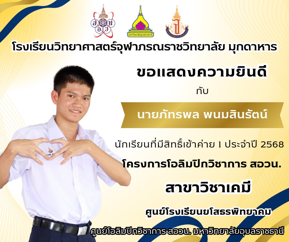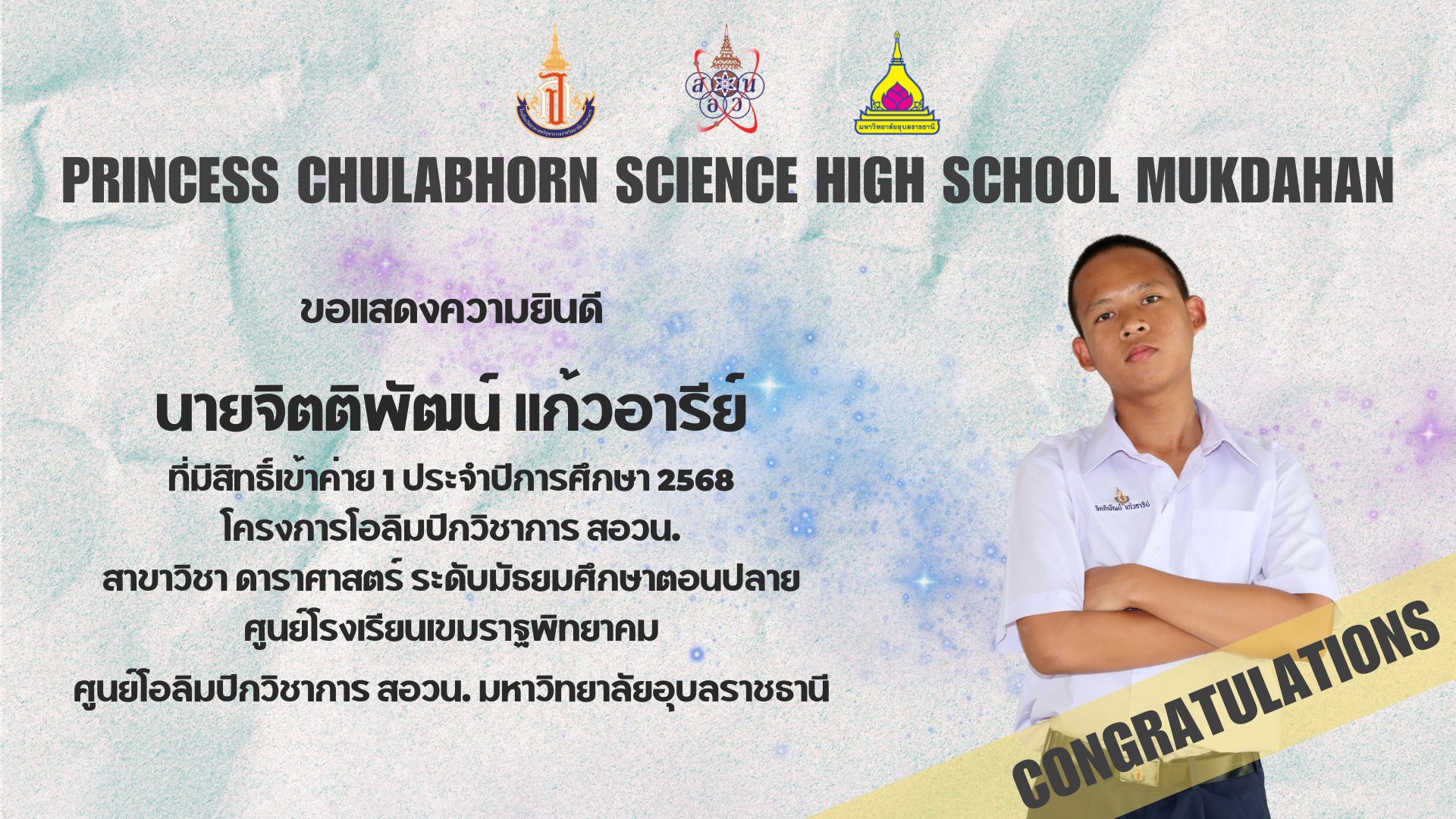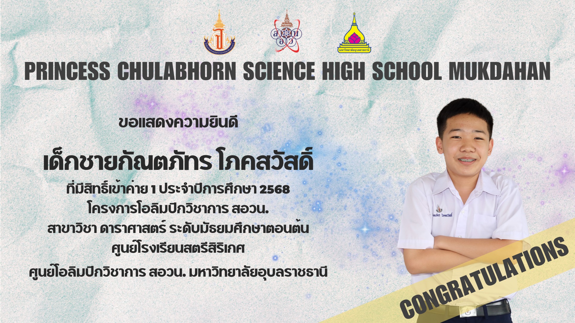 ยินดีกับนักเรียนที่สอบผ่านได้เข้าค่าย 1 โอลิมปิกวิชาการ สอวน.