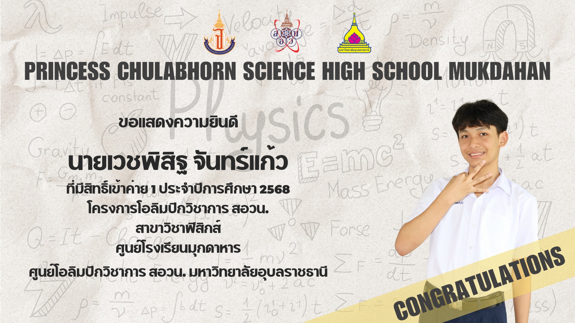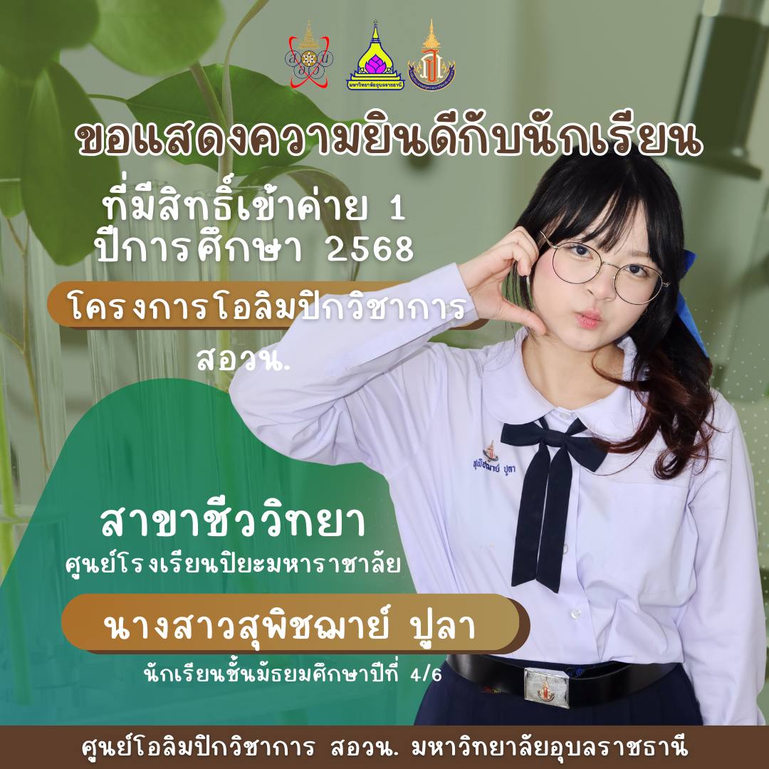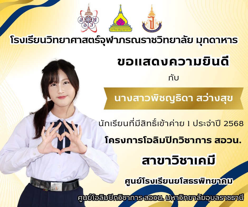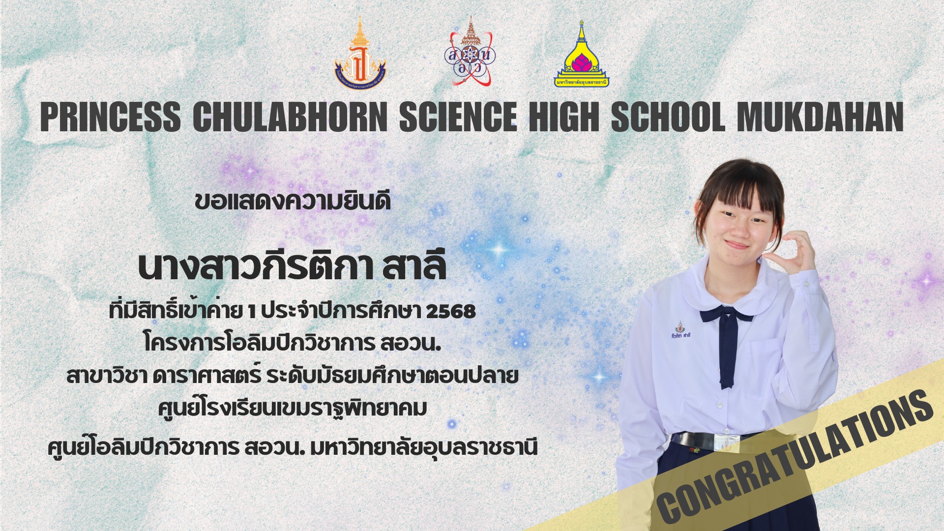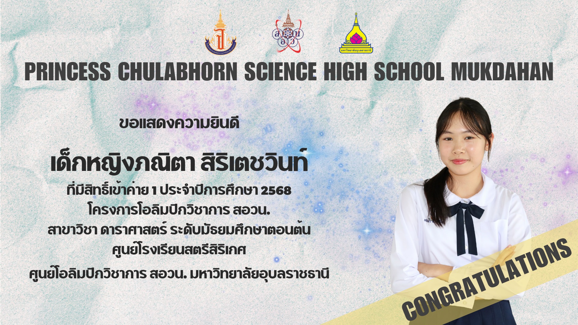 ยินดีกับนักเรียนที่สอบผ่านได้เข้าค่าย 1 โอลิมปิกวิชาการ สอวน.