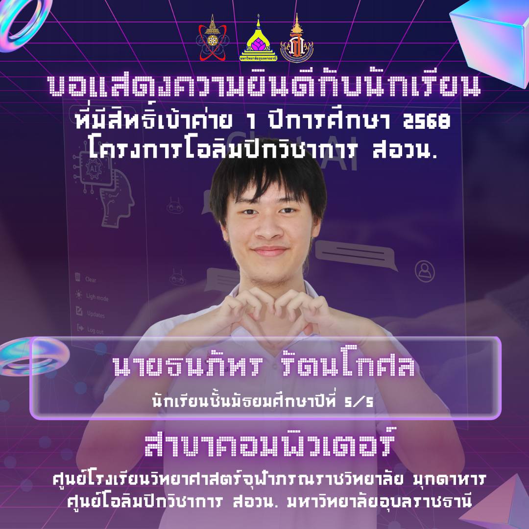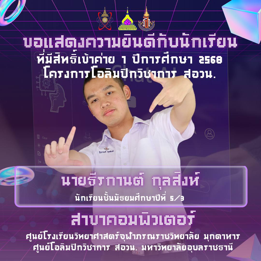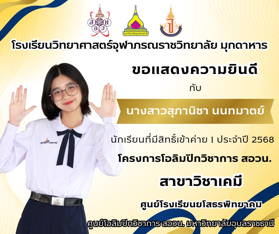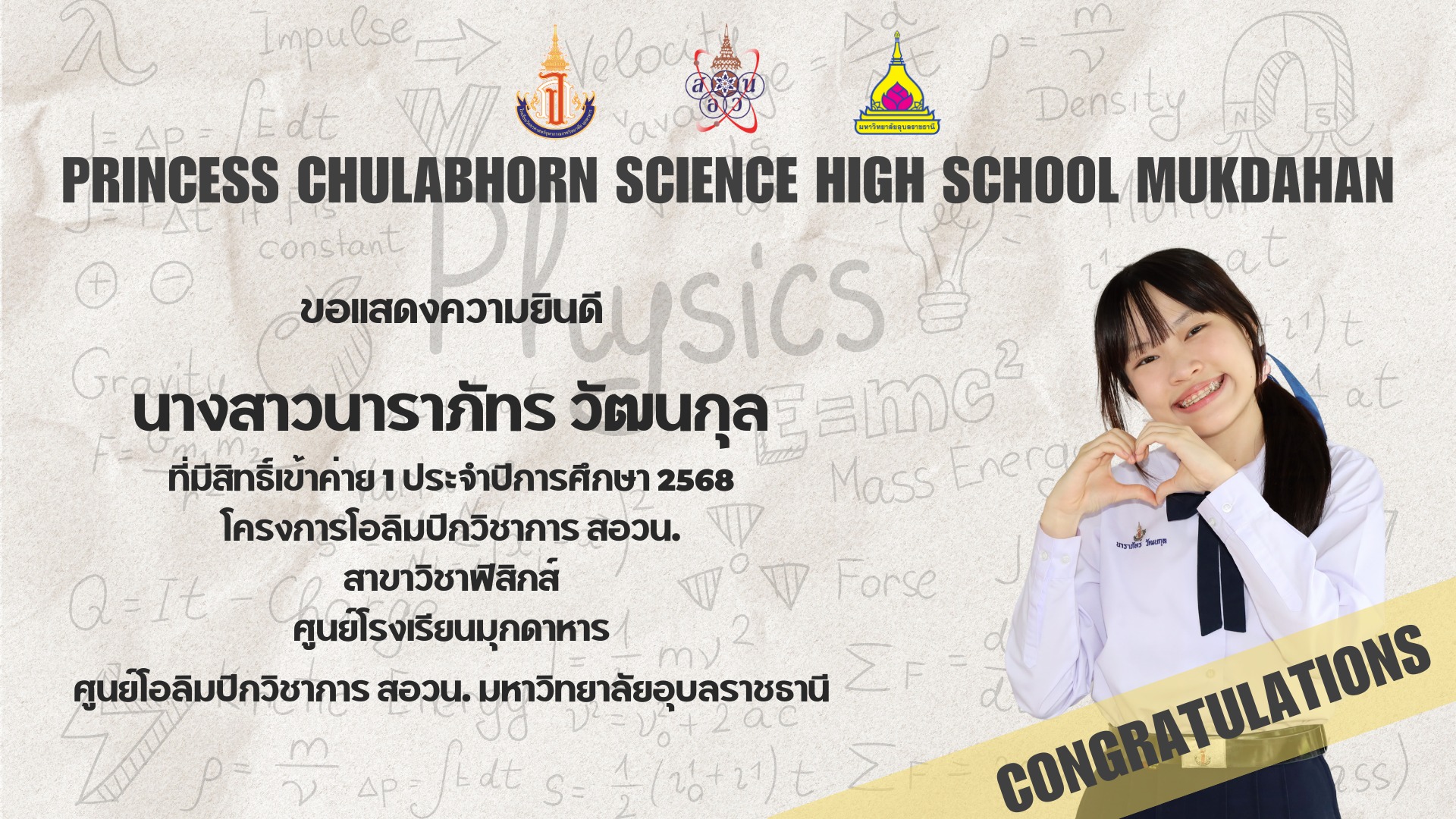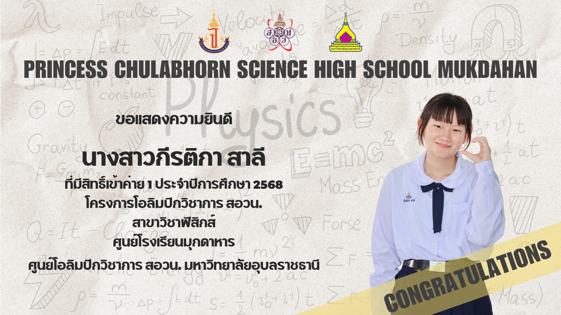 ยินดีกับนักเรียนที่สอบผ่านได้เข้าค่าย 1 โอลิมปิกวิชาการ สอวน.