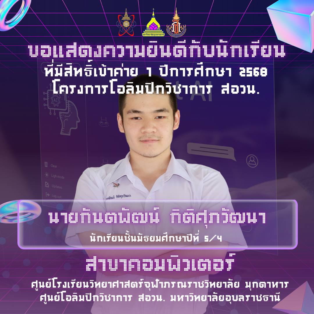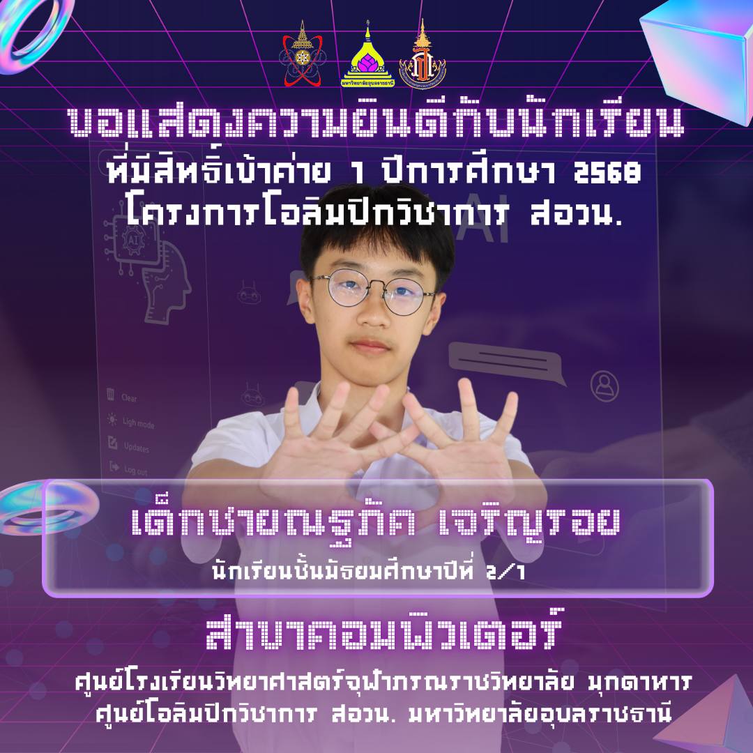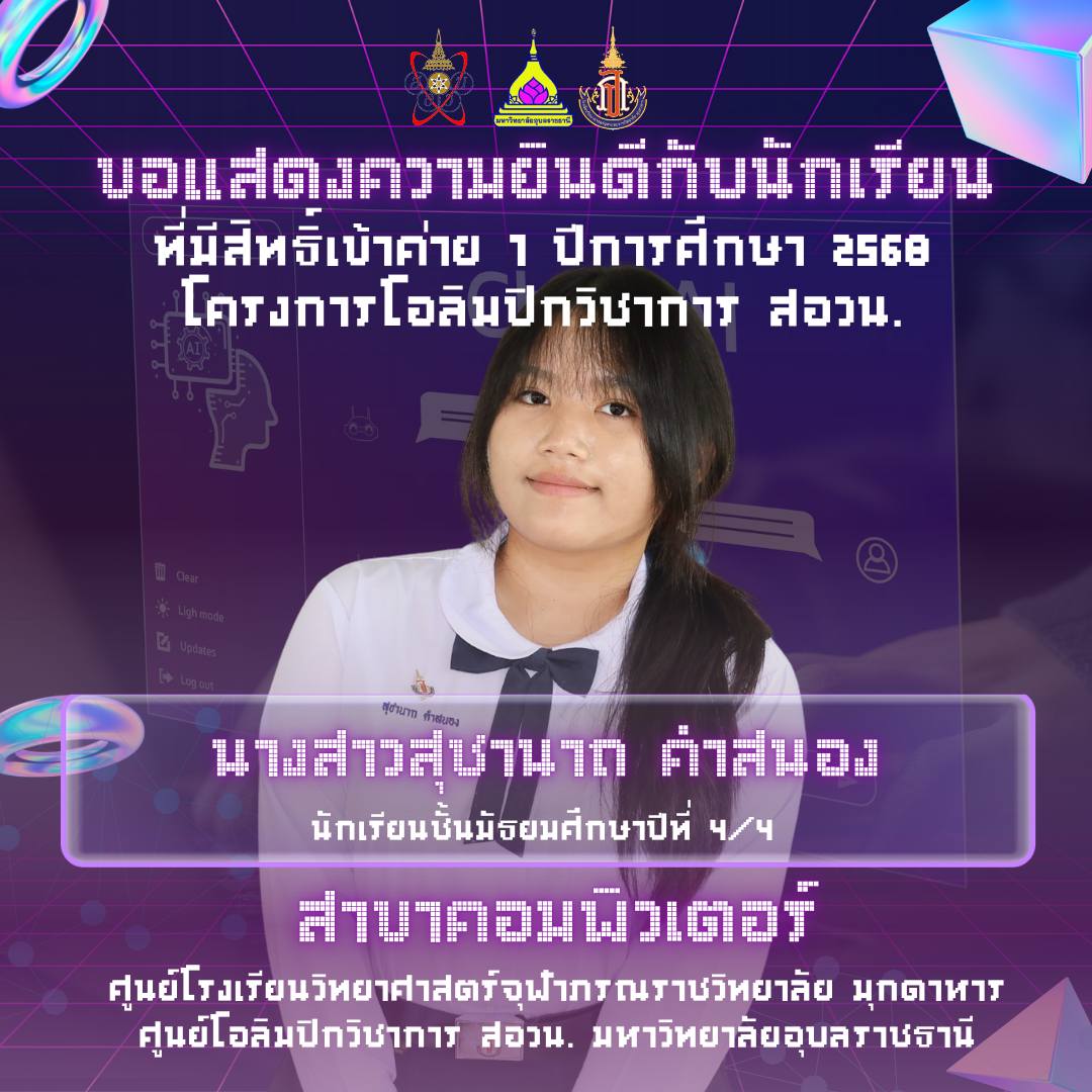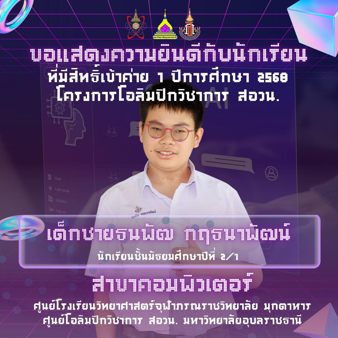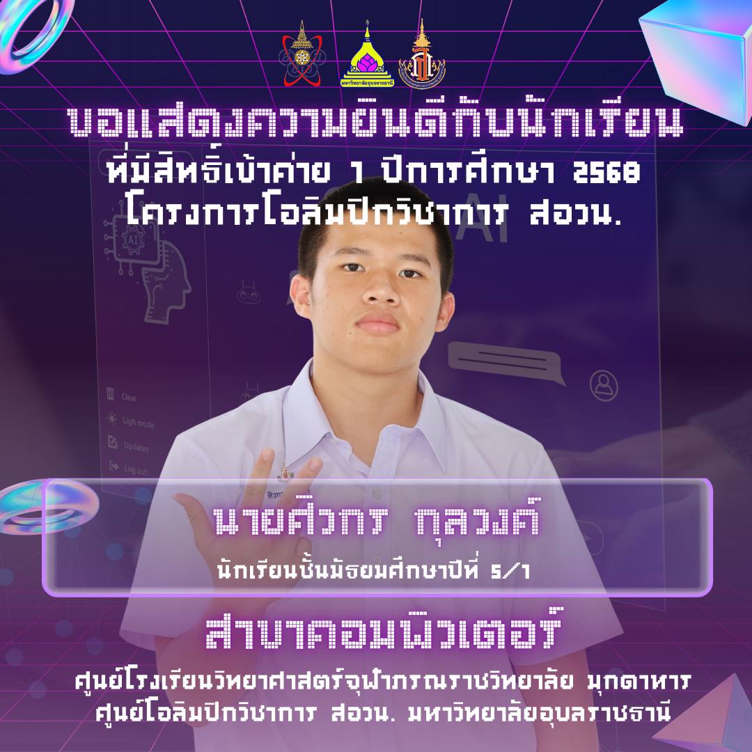 ยินดีกับนักเรียนที่สอบผ่านได้เข้าค่าย 1 โอลิมปิกวิชาการ สอวน.