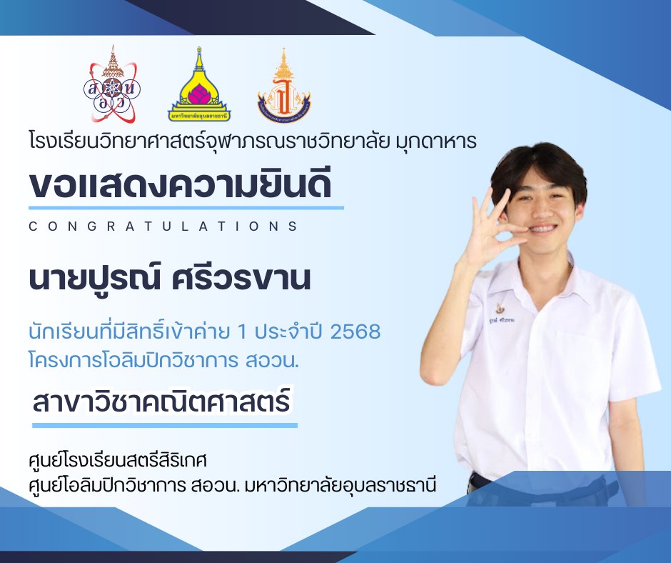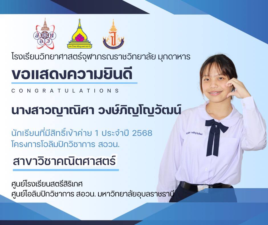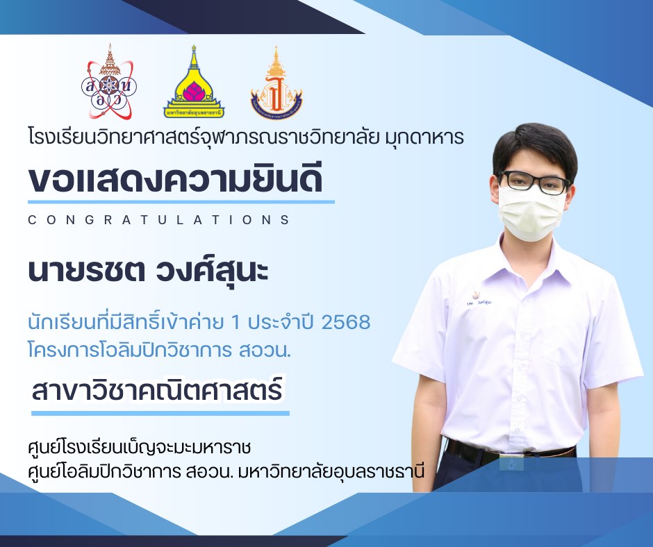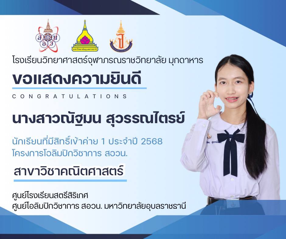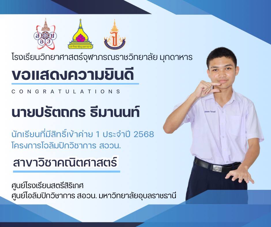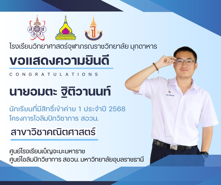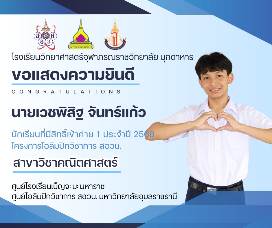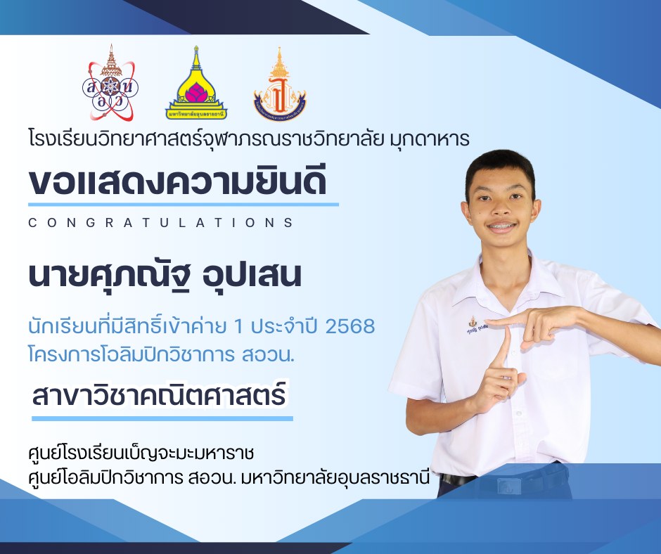แสดงความยินดีกับนักเรียนที่สอบผ่านได้เข้าค่าย 1 โอลิมปิกวิชาการ สอวน.