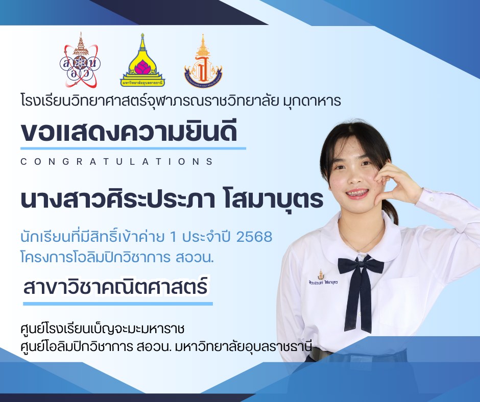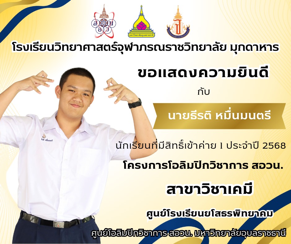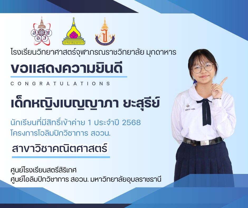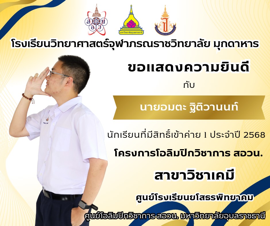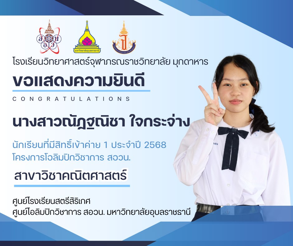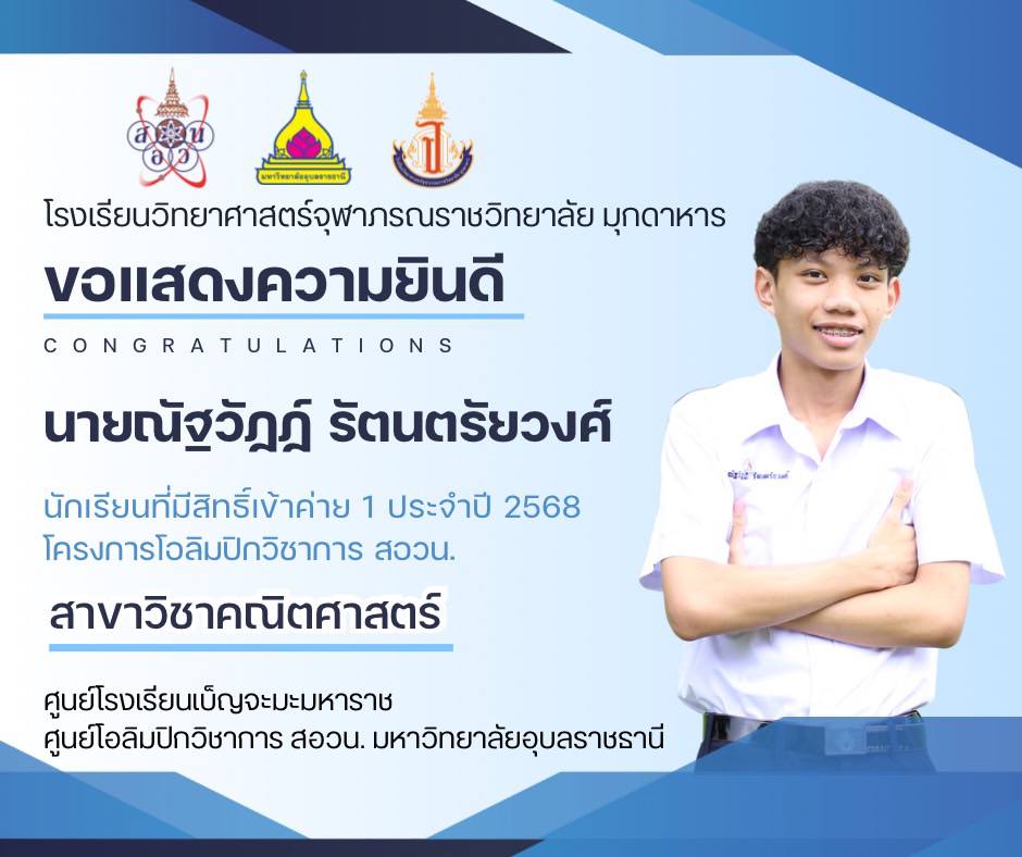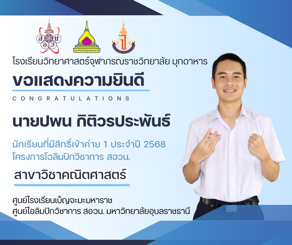 แสดงความยินดีกับนักเรียนที่สอบผ่านได้เข้าค่าย 1 โอลิมปิกวิชาการ สอวน.