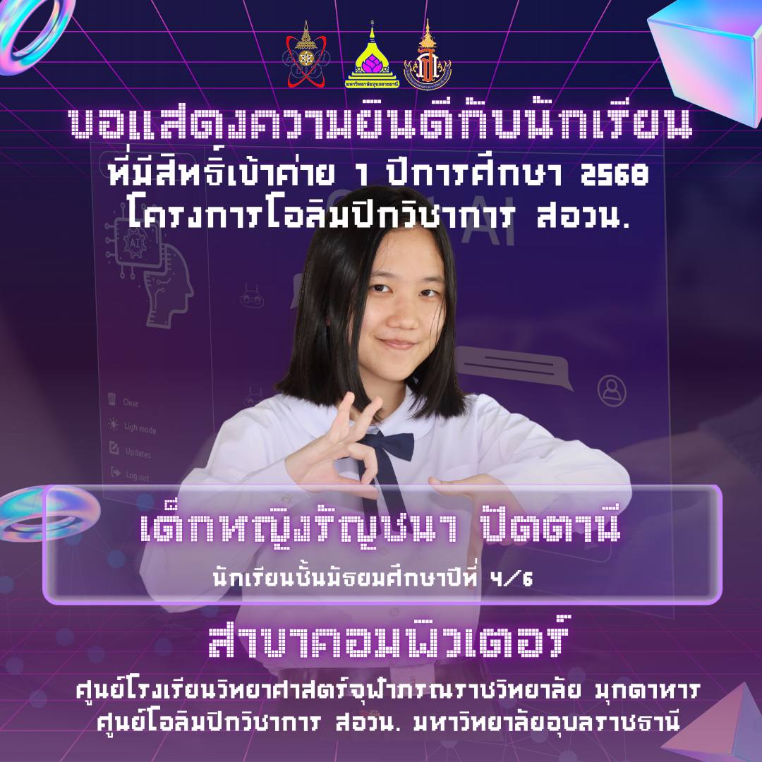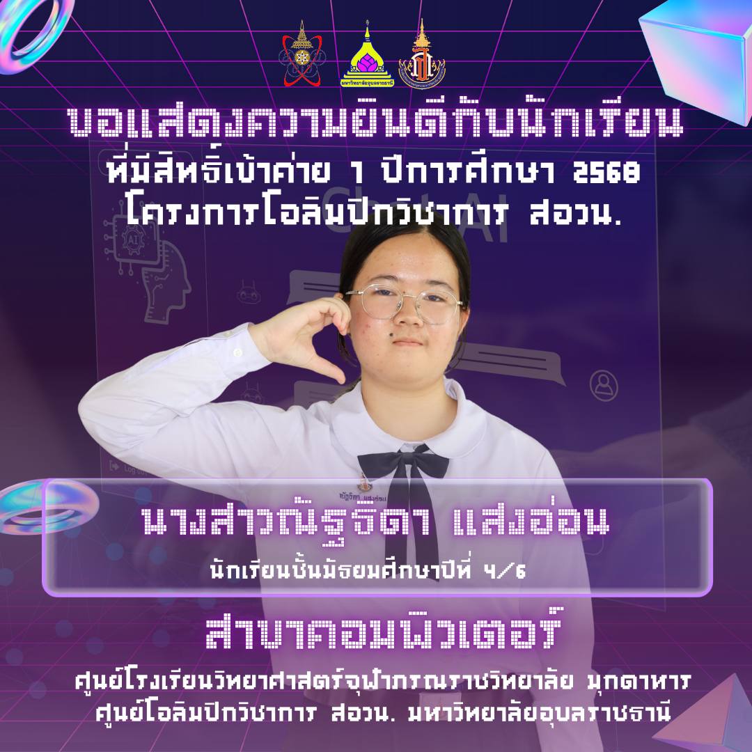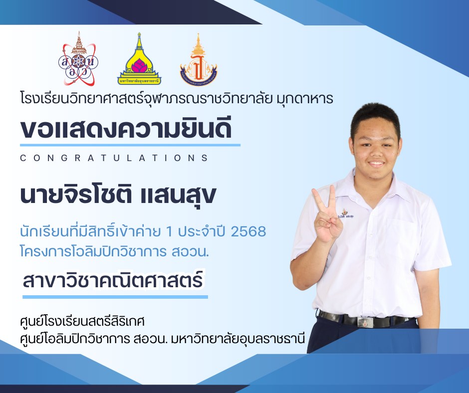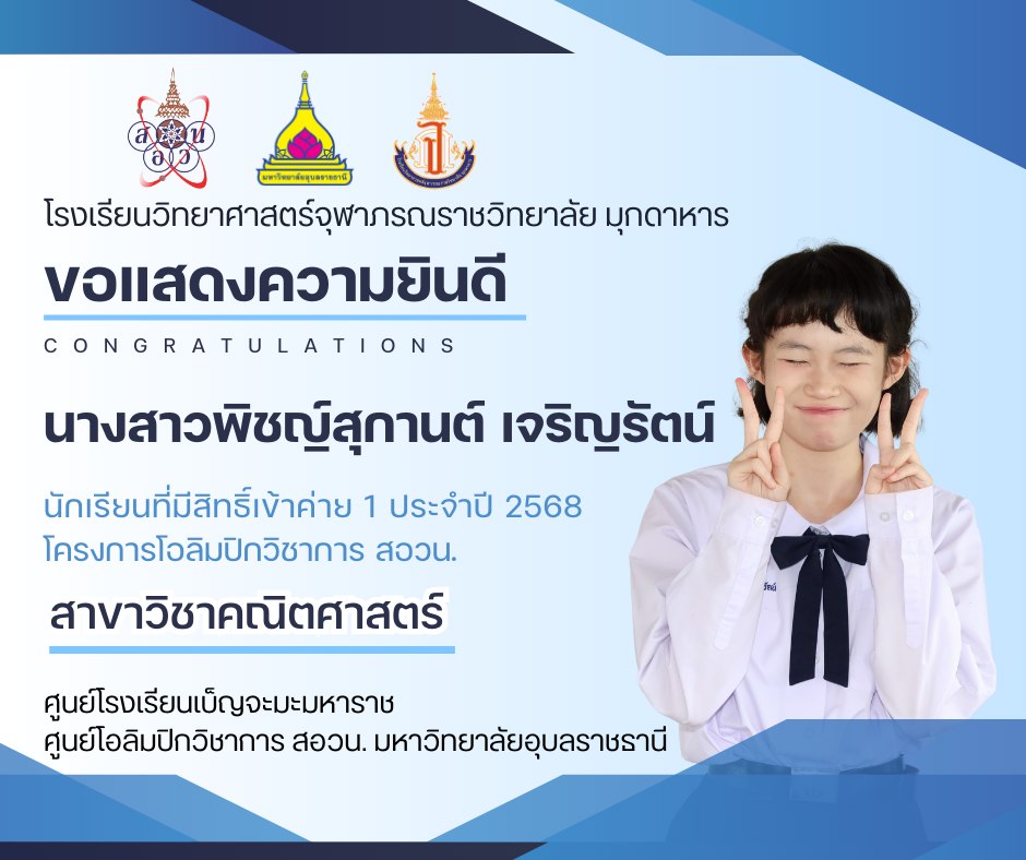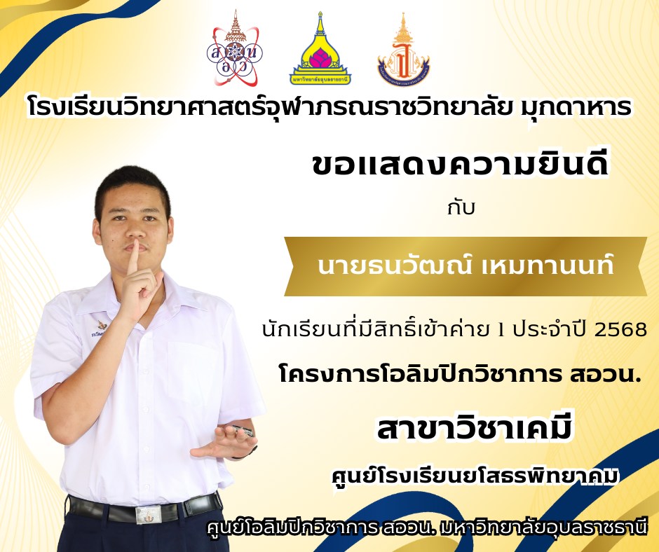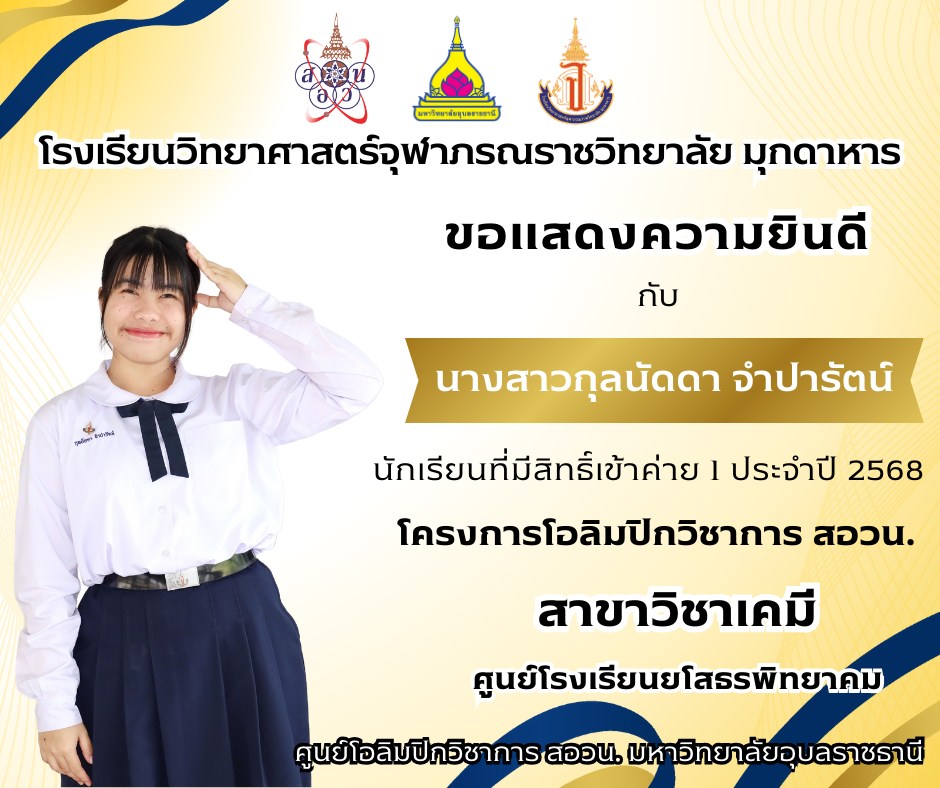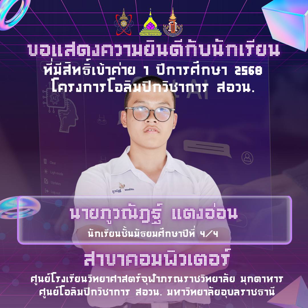 แสดงความยินดีกับนักเรียนที่สอบผ่านได้เข้าค่าย 1 โอลิมปิกวิชาการ สอวน.