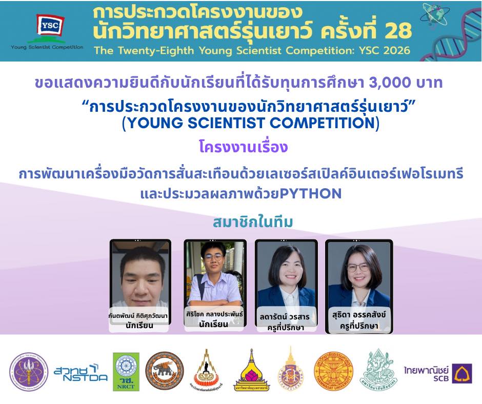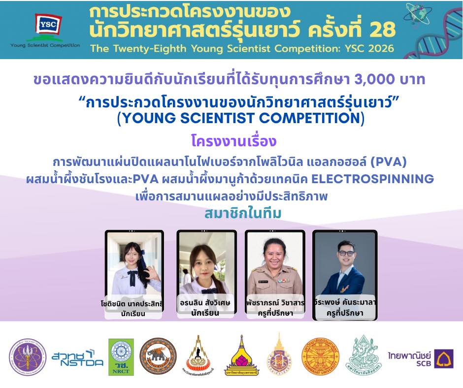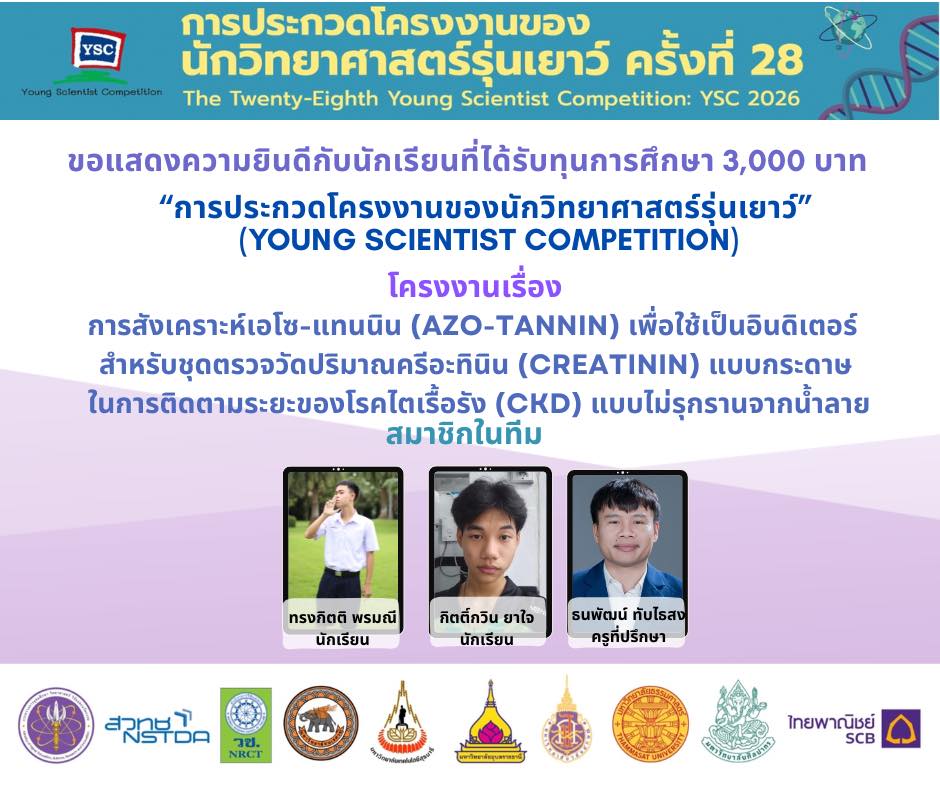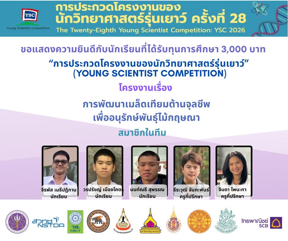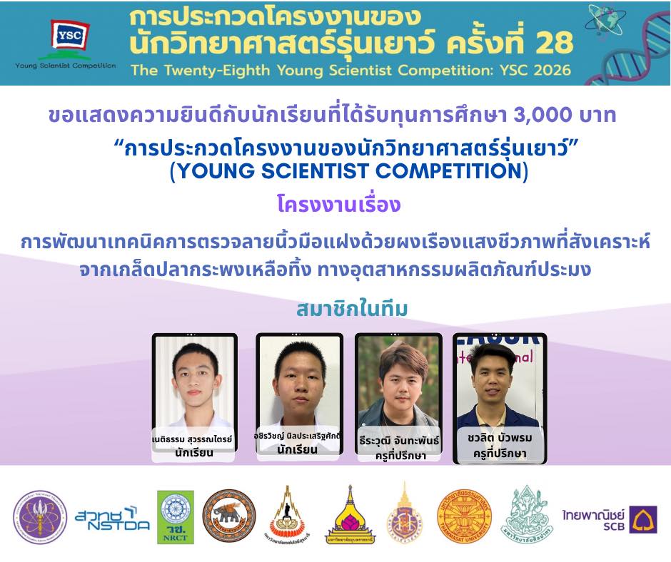แสดงความยินดีกับนักเรียนที่ผ่านการคัดเลือกเข้าร่วม โครงการประกวดโครงงานของนักวิทยาศาสตร์รุ่นเยาว์ ครั้งที่ 28 (YSC 2026)