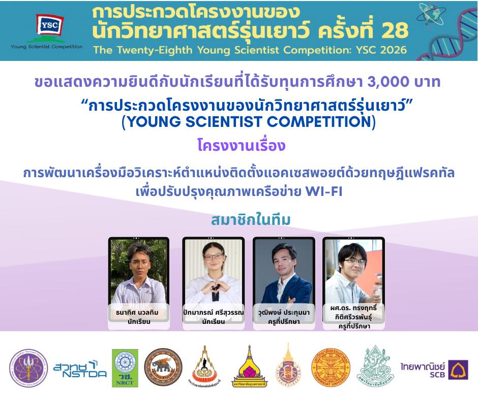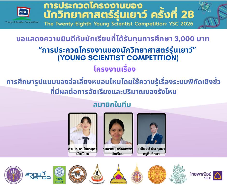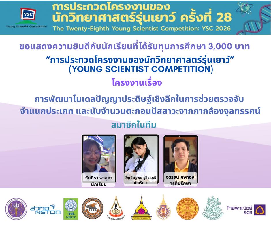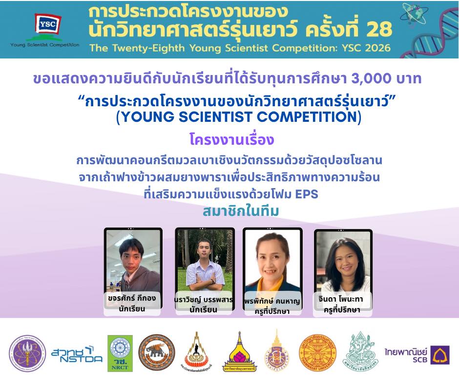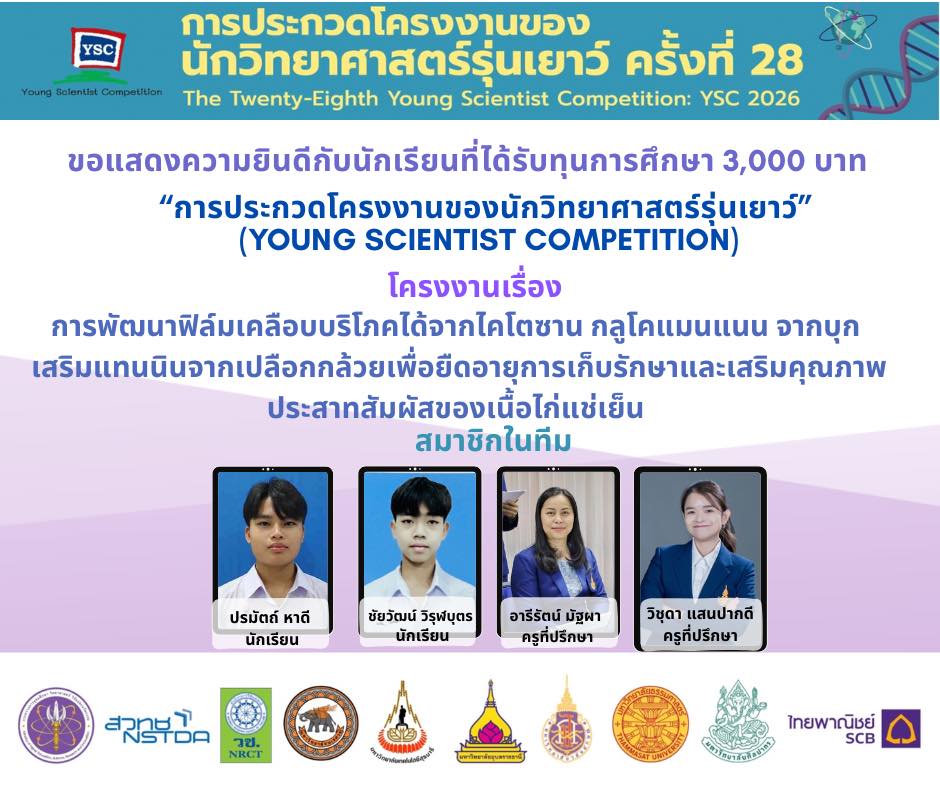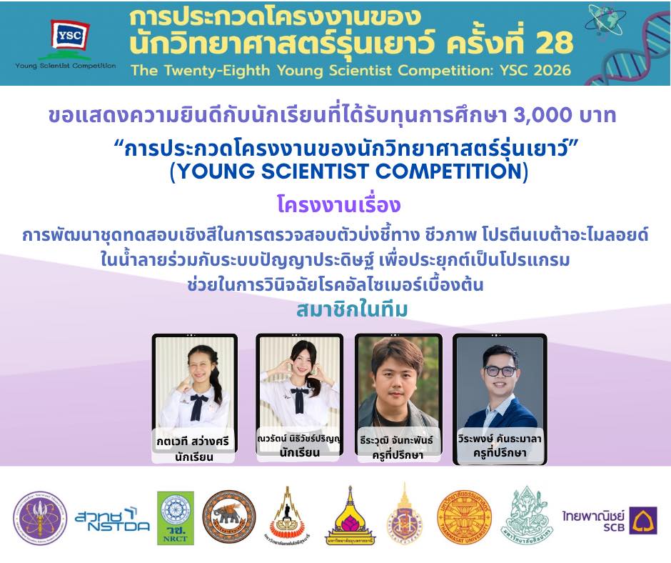 แสดงความยินดีกับนักเรียนที่ผ่านการคัดเลือกเข้าร่วม โครงการประกวดโครงงานของนักวิทยาศาสตร์รุ่นเยาว์ ครั้งที่ 28 (YSC 2026)