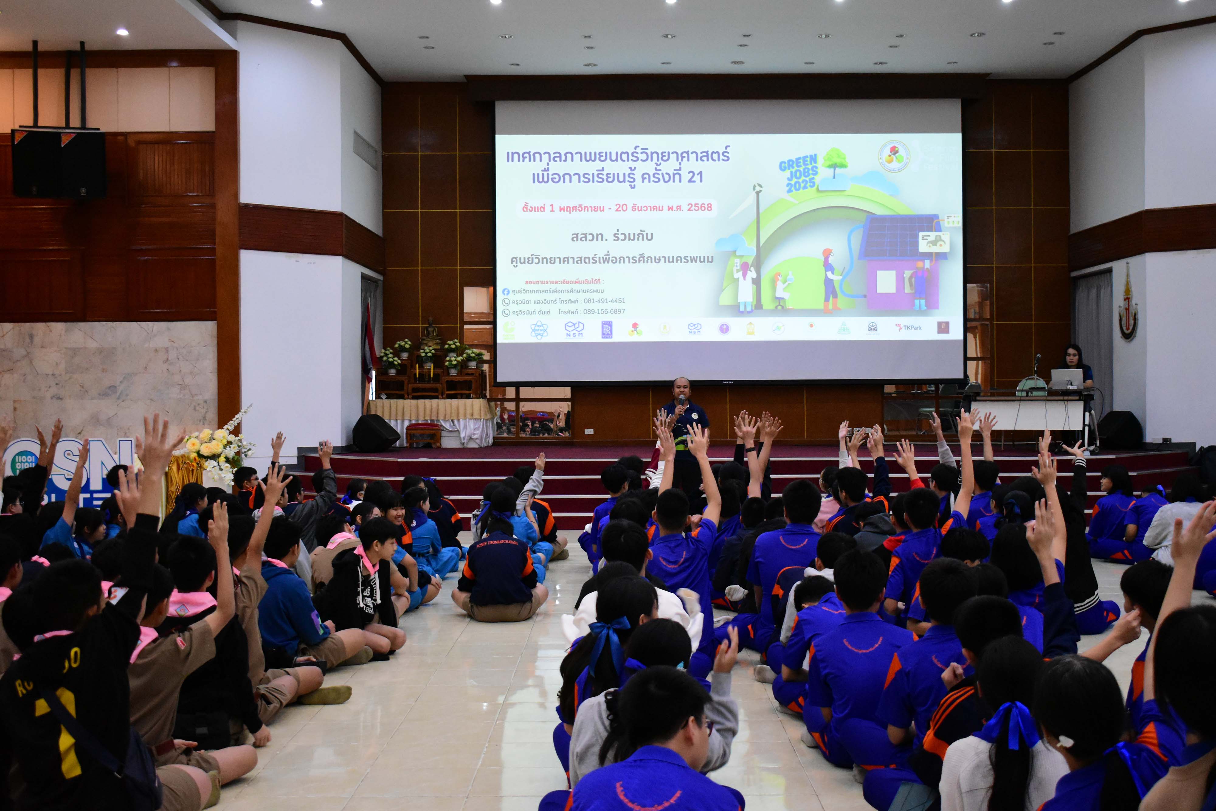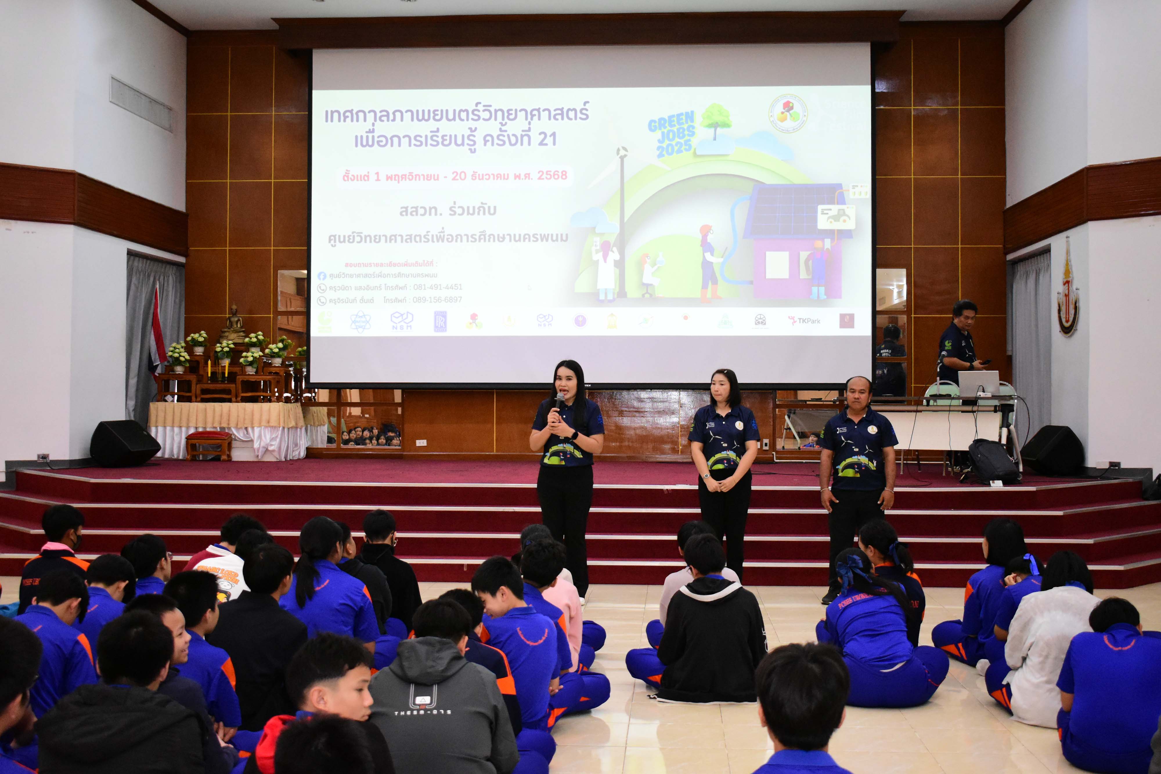 ศูนย์วิทยาศาสตร์เพื่อการศึกษานครพนม ร่วมกับสถาบันส่งเสริมการสอนวิทยาศาสตร์และเทคโนโลยี (สสวท.) จัดกิจกรรม เทศกาลภาพยนตร์วิทยาศาสตร์เพื่อการเรียนรู้ ครั้งที่ 23 ในหัวข้อ Green Jobs 2025 งานสีเขียว" นักเรียนชั้นมัธยมศึกษาปีที่ 1-3 โรงเรียนวิทยาศาสตร์จุฬาภรณราชวิทยาลัย มุกดาหาร ได้เข้าร่วมกิจกรรมดังกล่าว รับชมภาพยนตร์วิทยาศาสตร์และร่วมกิจกรรมเสริมทักษะกระบวนการ เรียนรู้อย่างสร้างสรรค์ ในวันพุธที่ 3 ธันวาคม 2568 เวลา 12.30-17.00 น. ณ หอประชุมโรงเรียนวิทยาศาสตร์จุฬาภรณราชวิทยาลัย มุกดาหาร