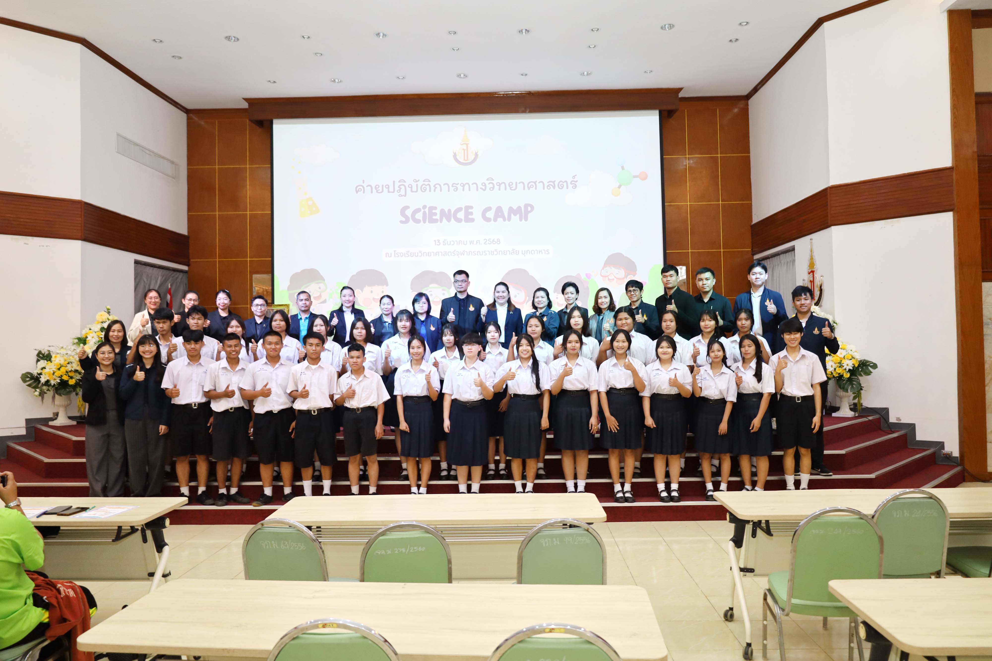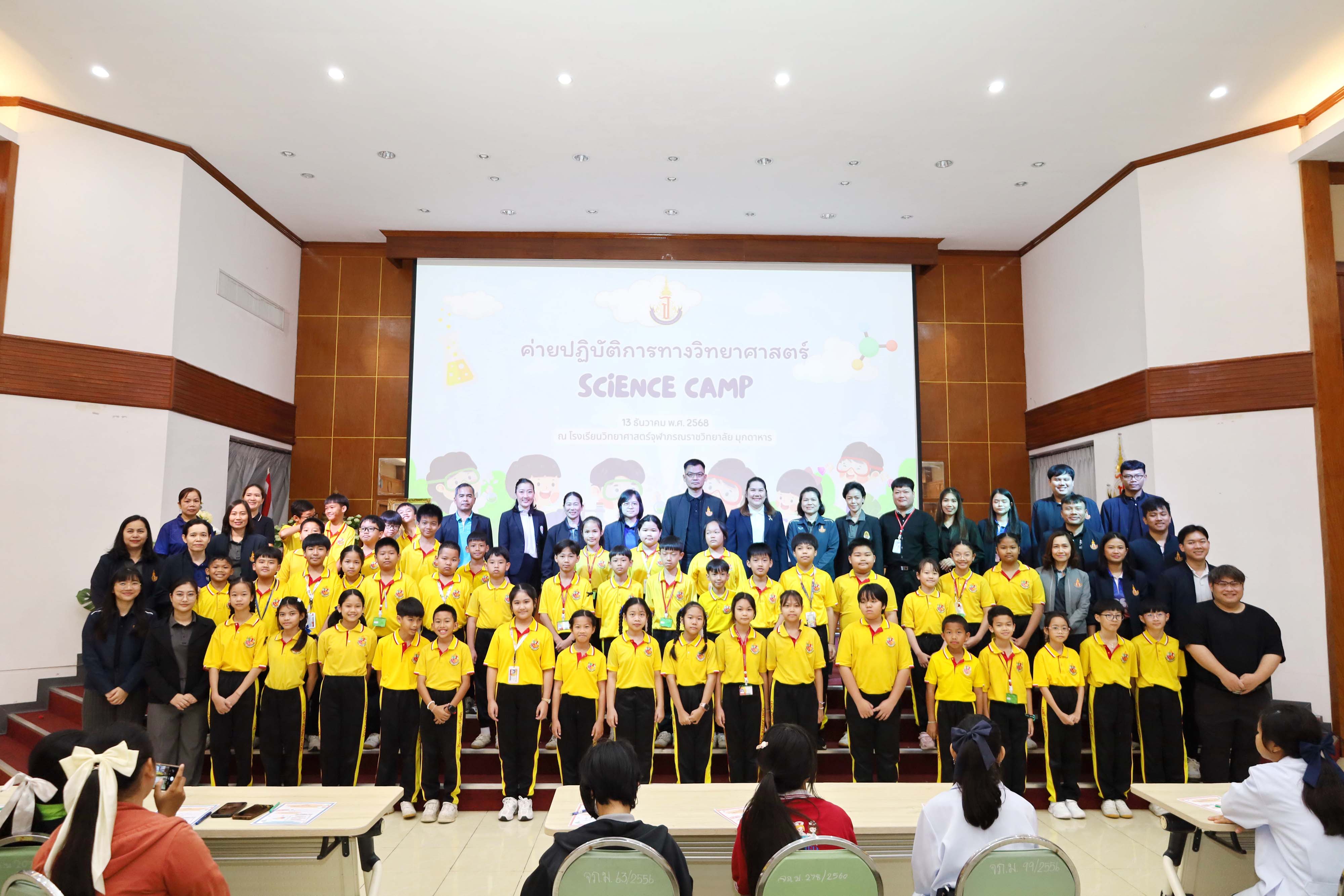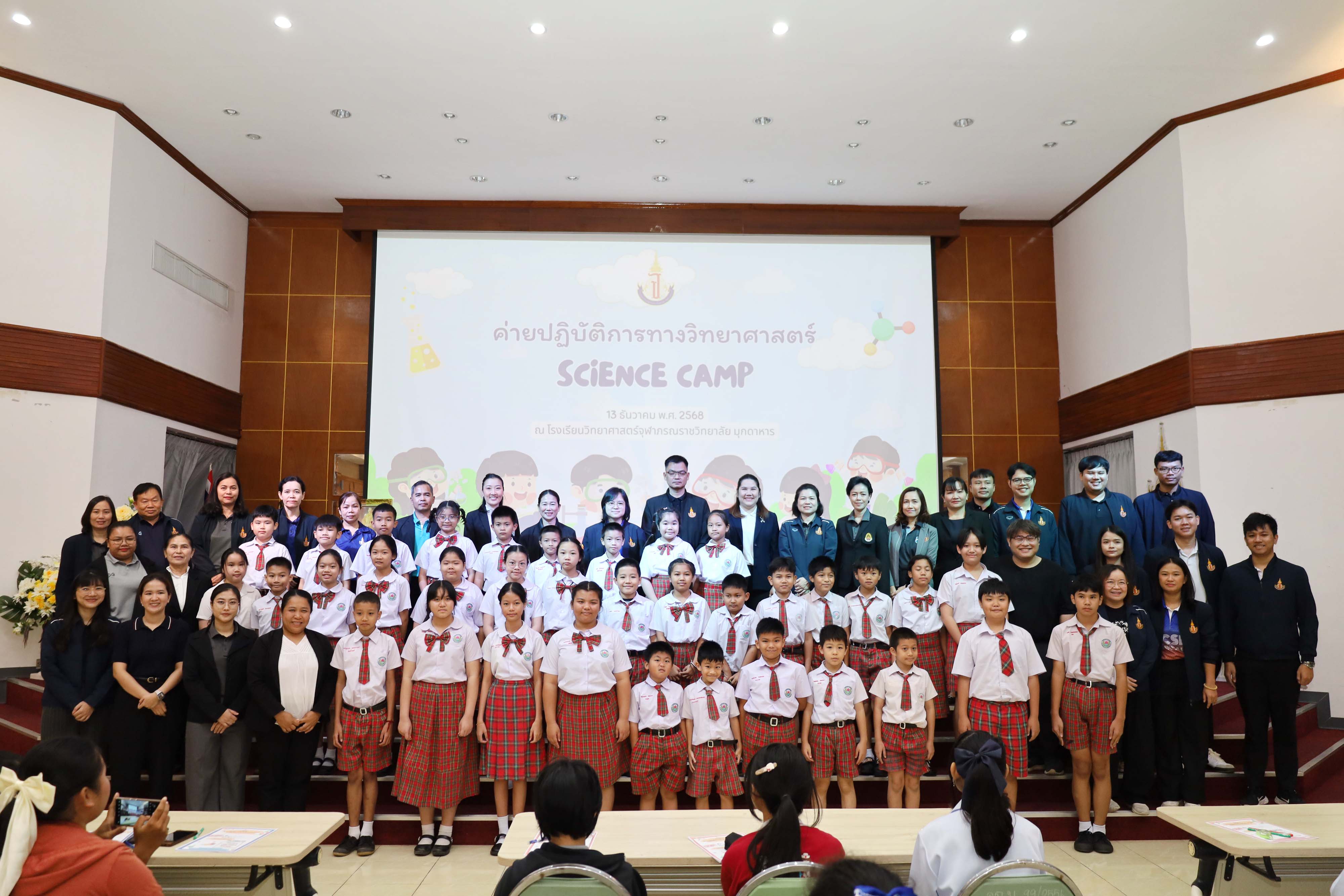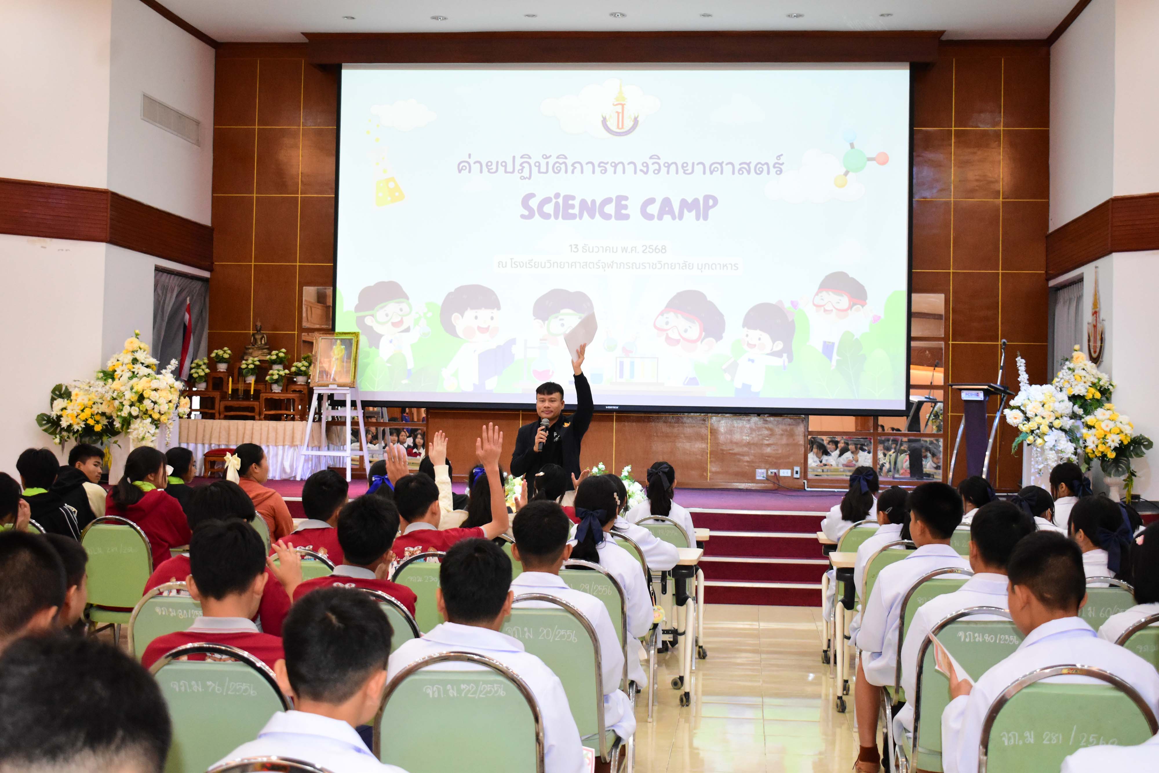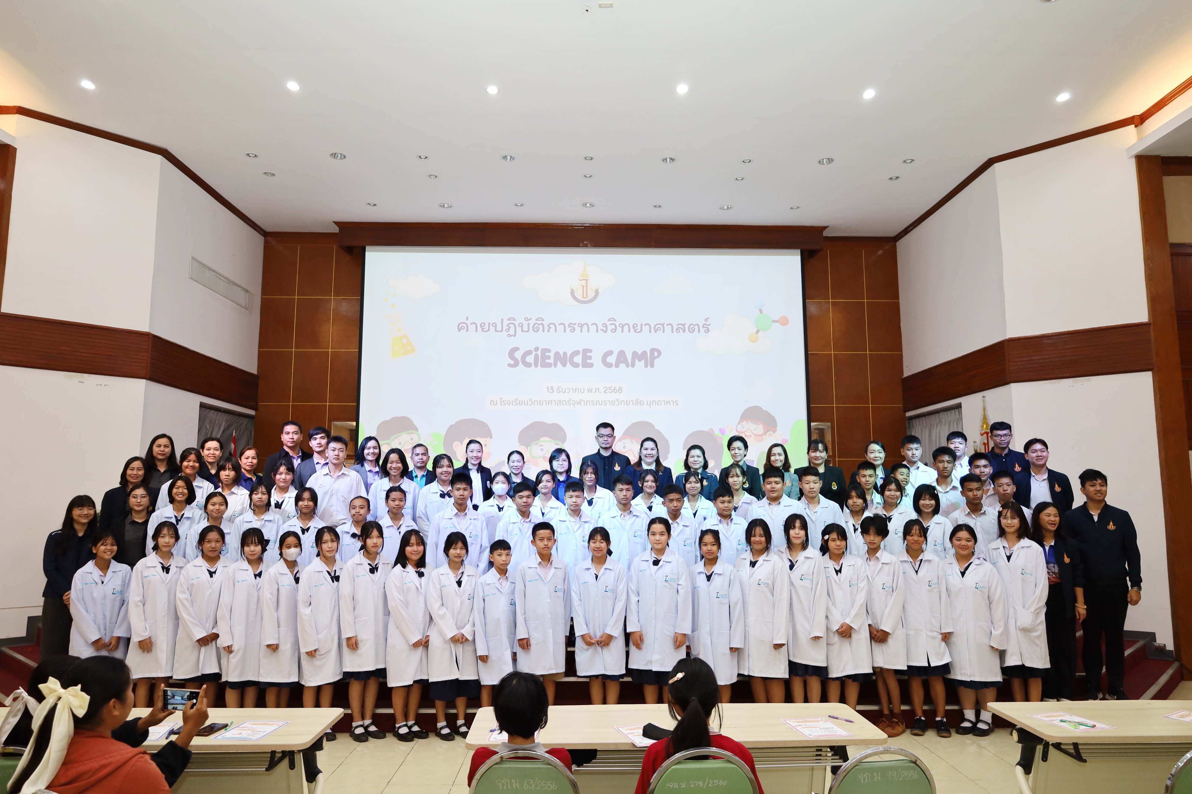 งานบริการวิชาการและภาคีเครือข่าย โรงเรียนวิทยาศาสตร์จุฬาภรณราชวิทยาลัย มุกดาหาร จัดกิจกรรมค่าย ปฏิบัติการทางวิทยาศาสตร์สําหรับนักเรียนโรงเรียนเซนต์ยอแซฟมุกดาหาร โรงเรียนอนุบาลสุวพิชญ์ โรงเรียนปทุมราชวงศา โรงเรียนบ้านแพงพิทยาคม โรงเรียนนาคําราษฎร์รังสรรค์ โรงเรียนโพนสวรรค์ราษฎร์พัฒนา และโรงเรียนดงมอนวิทยาคม ในวันเสาร์ ที่ 13 ธันวาคม พ.ศ.2568 เวลา 08.00 – 16.30 น. ณ โรงเรียน วิทยาศาสตร์จุฬาภรณราชวิทยาลัย มุกดาหาร เพื่อพัฒนาเครือข่ายความร่วมมือทางวิชาการและเพื่อส่งเสริมประสิทธิภาพการบริการ การฝึกทักษะปฏิบัติการ ทางวิทยาศาสตร์ และค่ายวิชาการให้กับสถานศึกษาในเขตพื้นที่บริการ