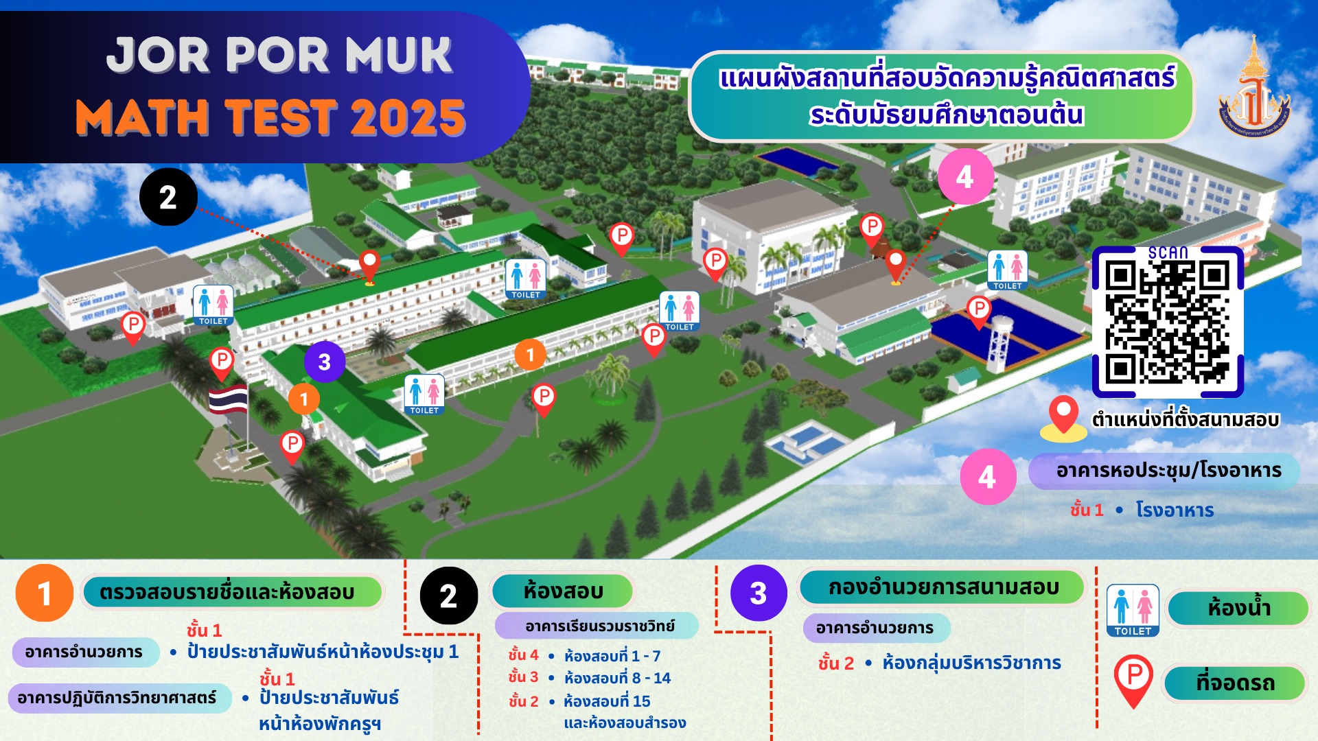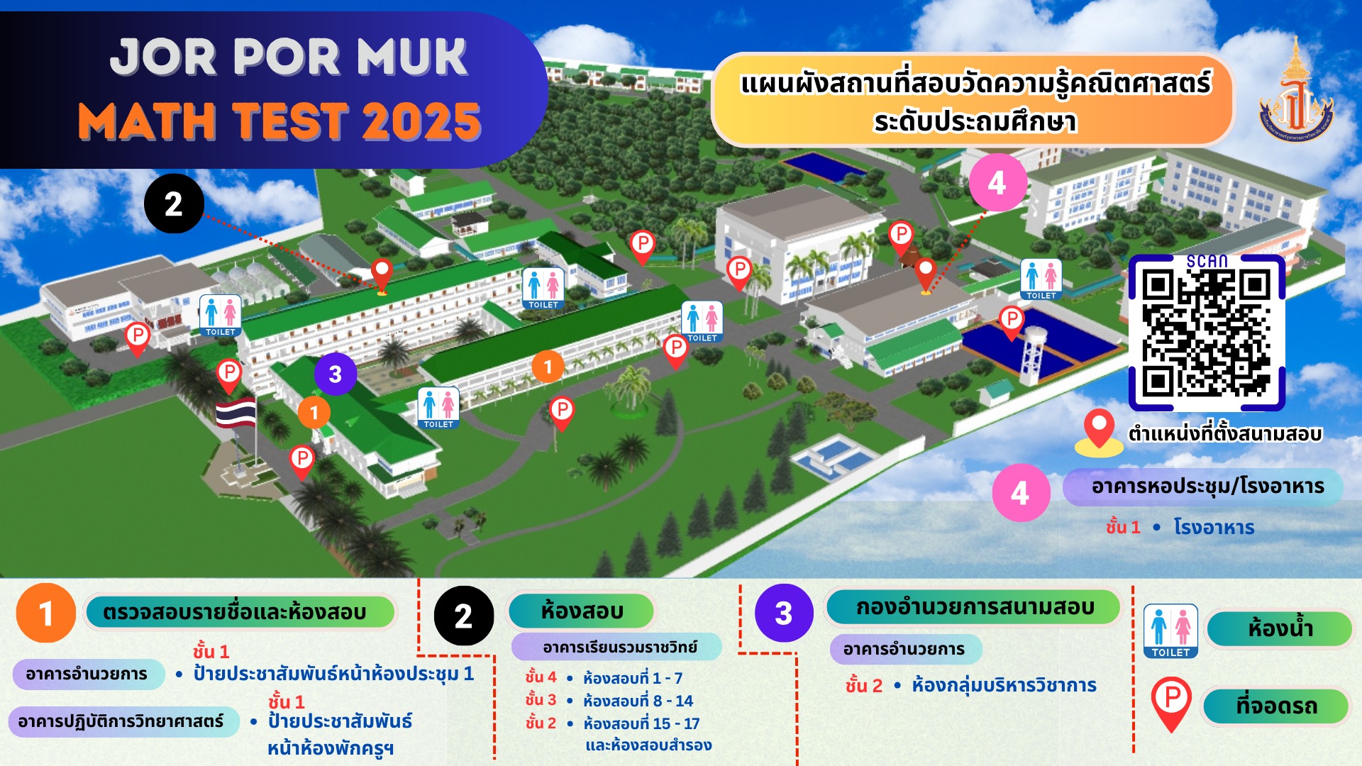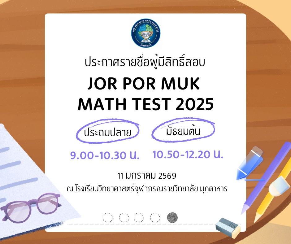 ประกาศรายชื่อผู้มีสิทธิ์สอบวัดความรู้คณิตศาสตร์ ระดับประถมศึกษาและมัธยมศึกษาตอนต้น ประจำปีการศึกษา 2568 (JOR POR MUK MATH TEST 2025)