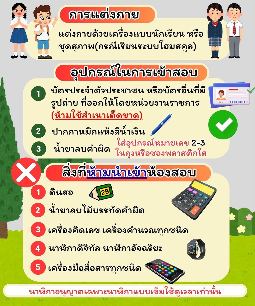 -บัตรประชาชนหรือบัตรที่รัฐออกให้ ปากกาหมึกแห้งสีน้ำเงินหรือสีดำ น้ำยาลบคำผิดเท่านั้น