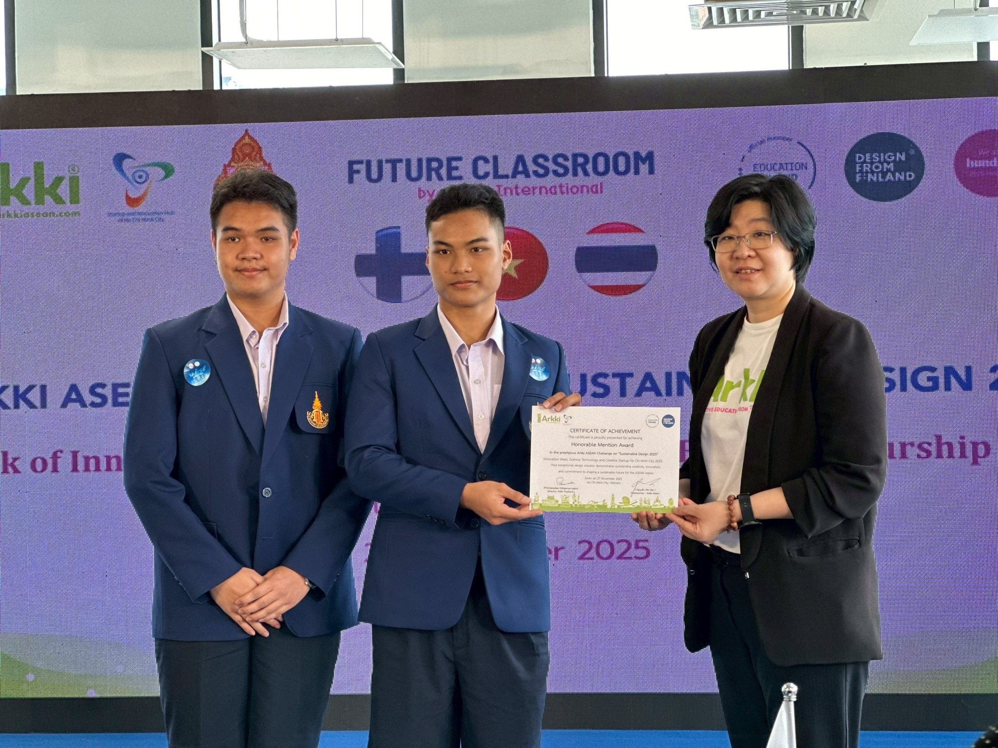 แสดงความยินดีกับนักเรียนโรงเรียนวิทยาศาสตร์จุฬาภรณราชวิทยาลัย มุกดาหาร ในฐานะตัวแทนประเทศไทยจากเวที การประกวดนำเสนอนวัตกรรม เวทีบ่มเพาะนักคิดนักประดิษฐ์ โรงเรียนวิทยาศาสตร์จุฬาภรณราชวิทยาลัย หลักสูตร : การพัฒนาทักษะอนาคตและกระบวนการคิดเชิงออกแบบจากไอเดียสู่นวัตกรรม มาตรฐานนานาชาติ ซึ่งจัดโดยสำนักบริหารความเป็นเลิศด้านวิทยาศาสตร์ศึกษา สพฐ. ร่วมกับ สถาบัน Arkki International เพื่อเข้านำเสนอโครงงานและนวัตกรรม ระดับนานาชาติ ในโครงการ ARKKI ASEAN CHALLENGE ON "SUSTAINABLE DESIGN 2025"ในงาน Week of Innovation, Science, Technology and Enterpreneurship 2025