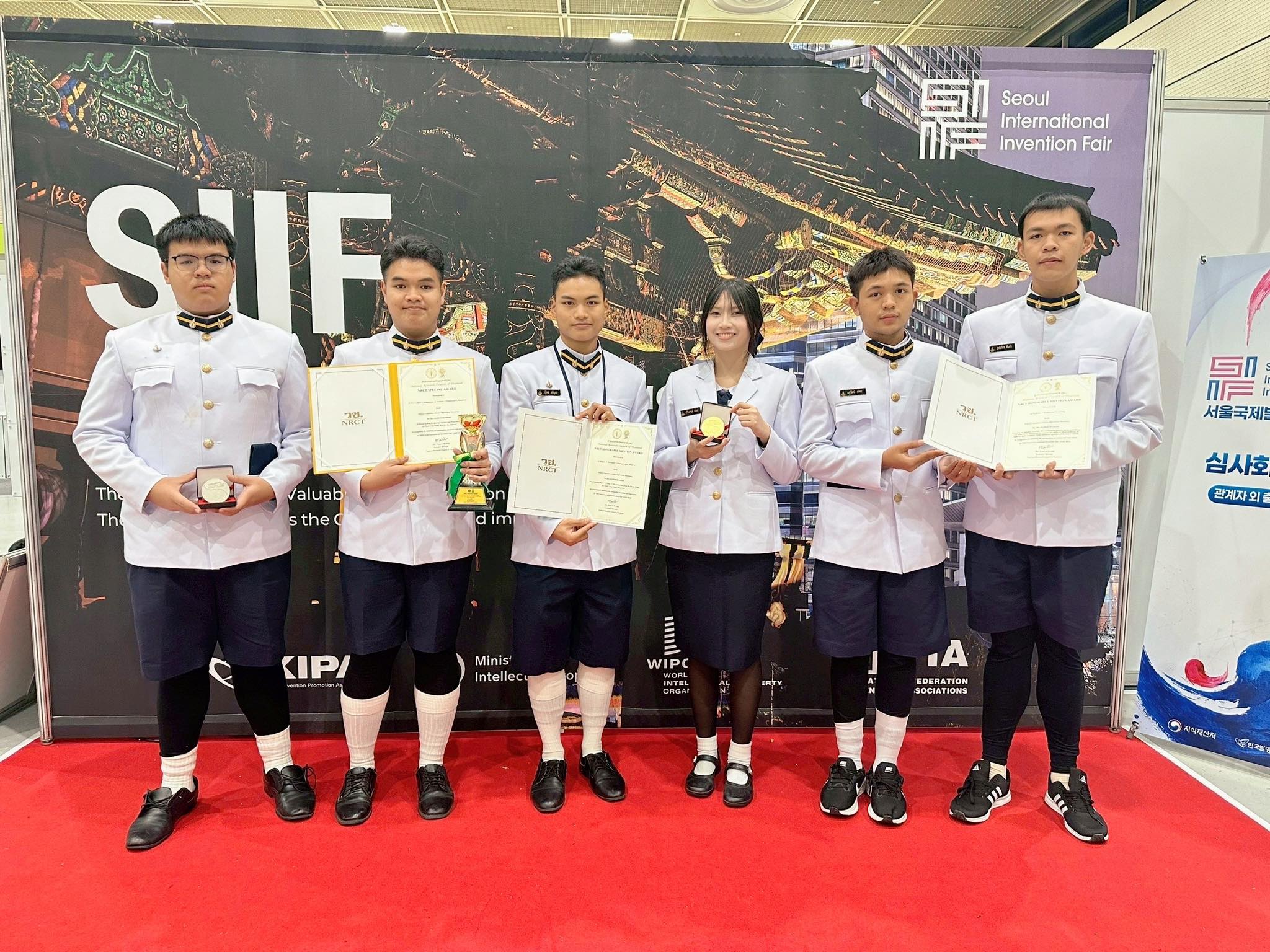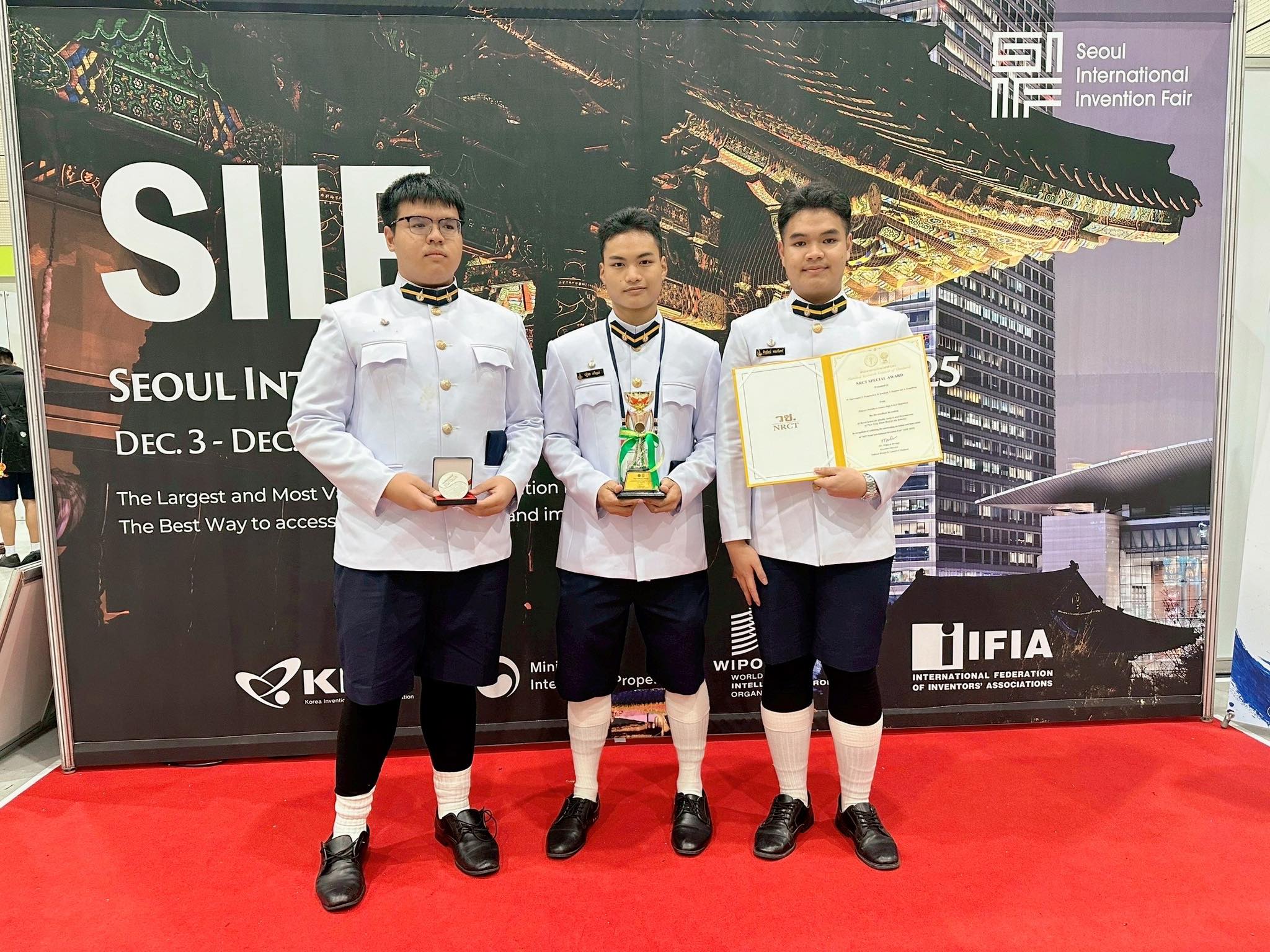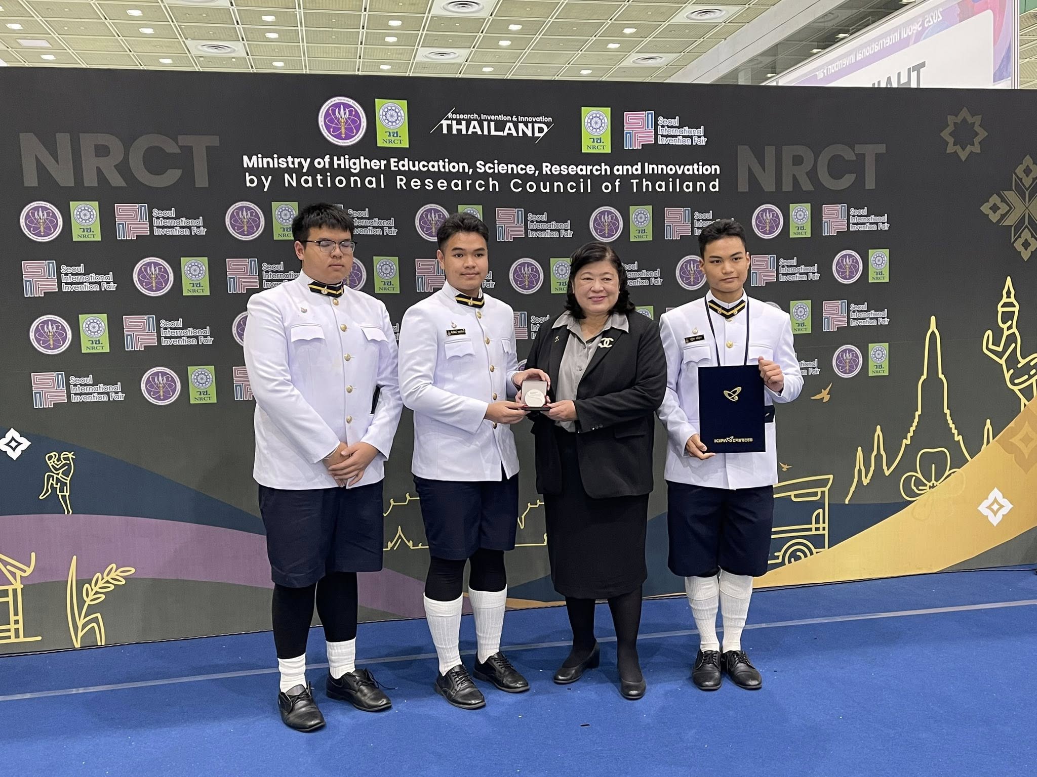 แสดงความยินดีกับการนำเสนอโครงงานและนวัตกรรมนักเรียน ระดับนานาชาติ ในเวที Seoul International Invention Fair 2025" ซึ่งจัดขึ้นระหว่างวันที่ 3-7 ธันวาคม 2568 ณ กรุงโซล ประเทศเกาหลีใต้ โดยมีรายละเอียดรางวัล ดังนี้