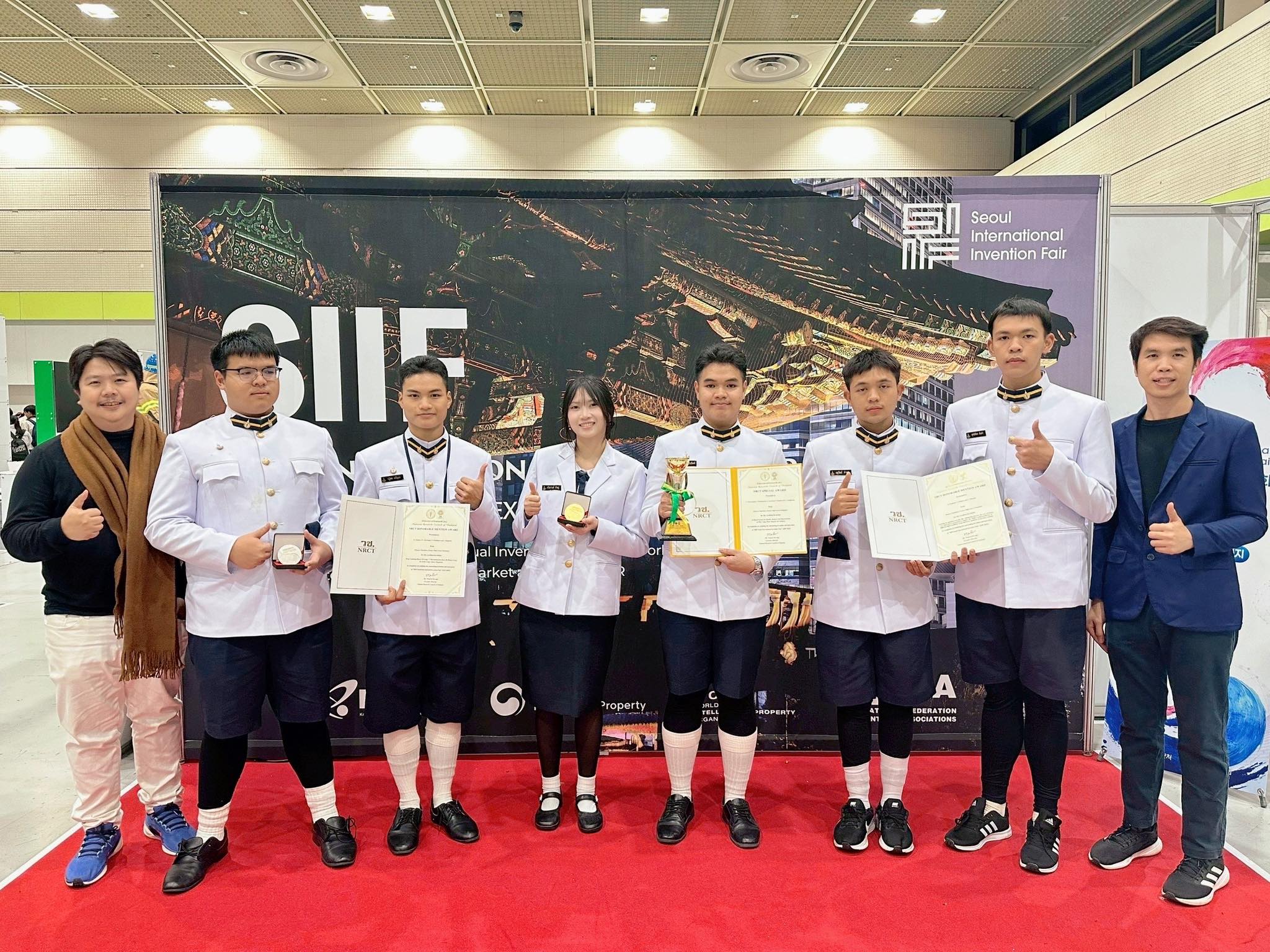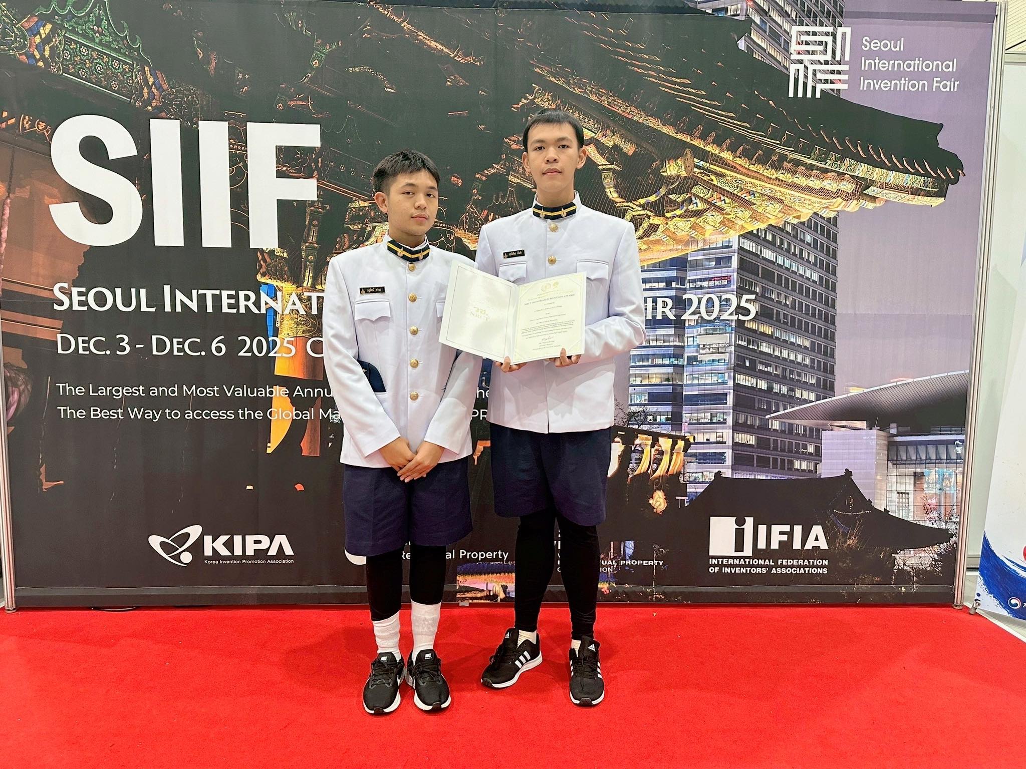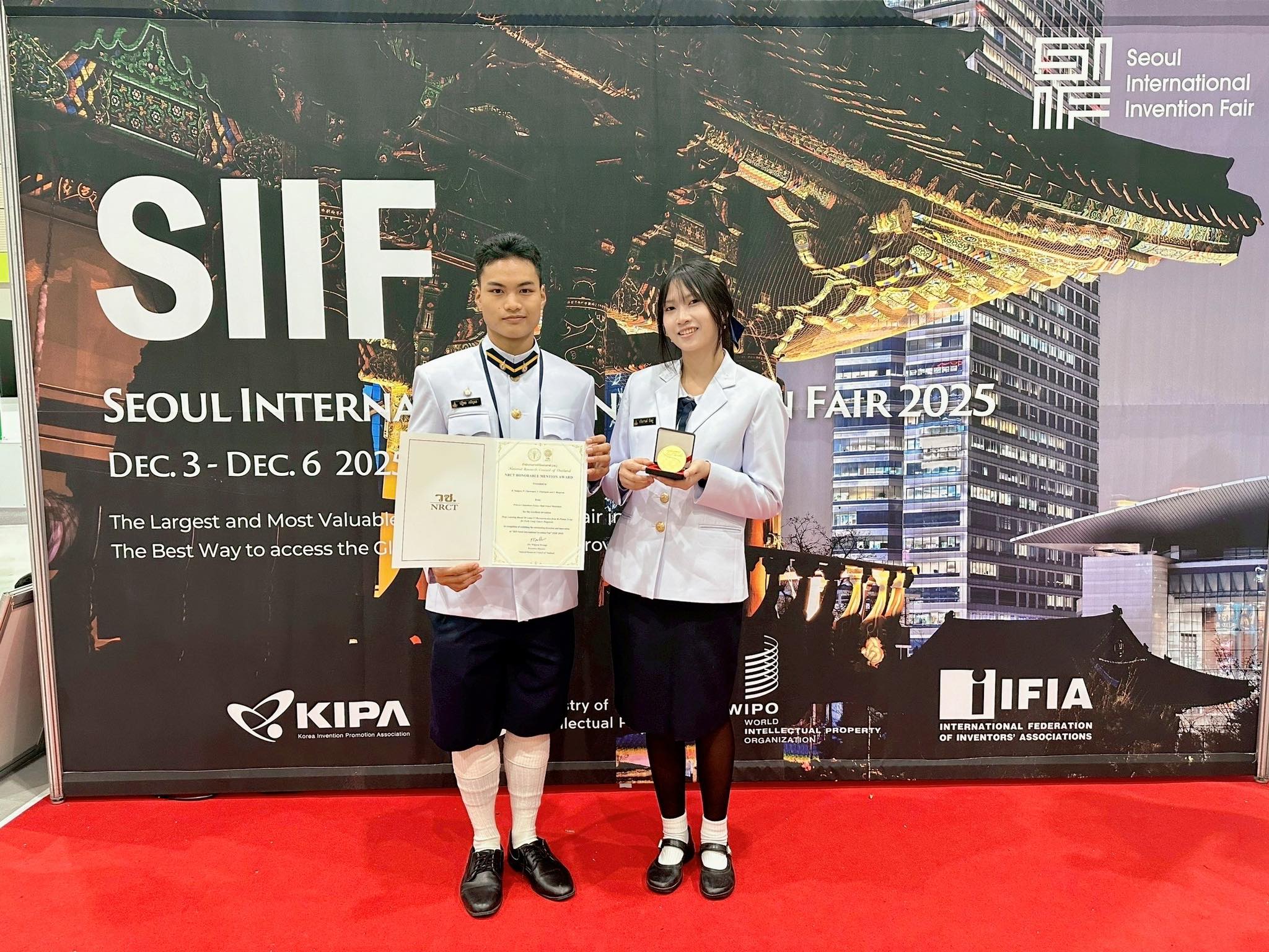 แสดงความยินดีกับการนำเสนอโครงงานและนวัตกรรมนักเรียน ระดับนานาชาติ ในเวที Seoul International Invention Fair 2025" ซึ่งจัดขึ้นระหว่างวันที่ 3-7 ธันวาคม 2568 ณ กรุงโซล ประเทศเกาหลีใต้ โดยมีรายละเอียดรางวัล ดังนี้