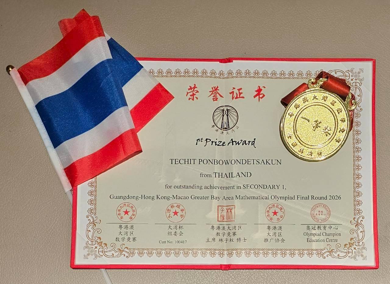 ยินดีกับนักเรียนชั้นมัธยศึกษาปีที่ 1 ได้รับรางวัลที่ 1 การแข่งขันคณิตศาสตร์โอลิมปิก ณ ประเทศฮ่องกง